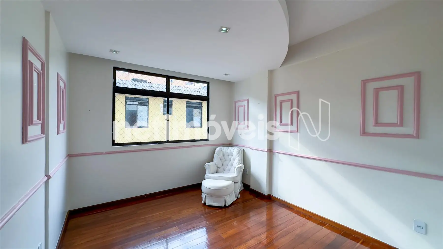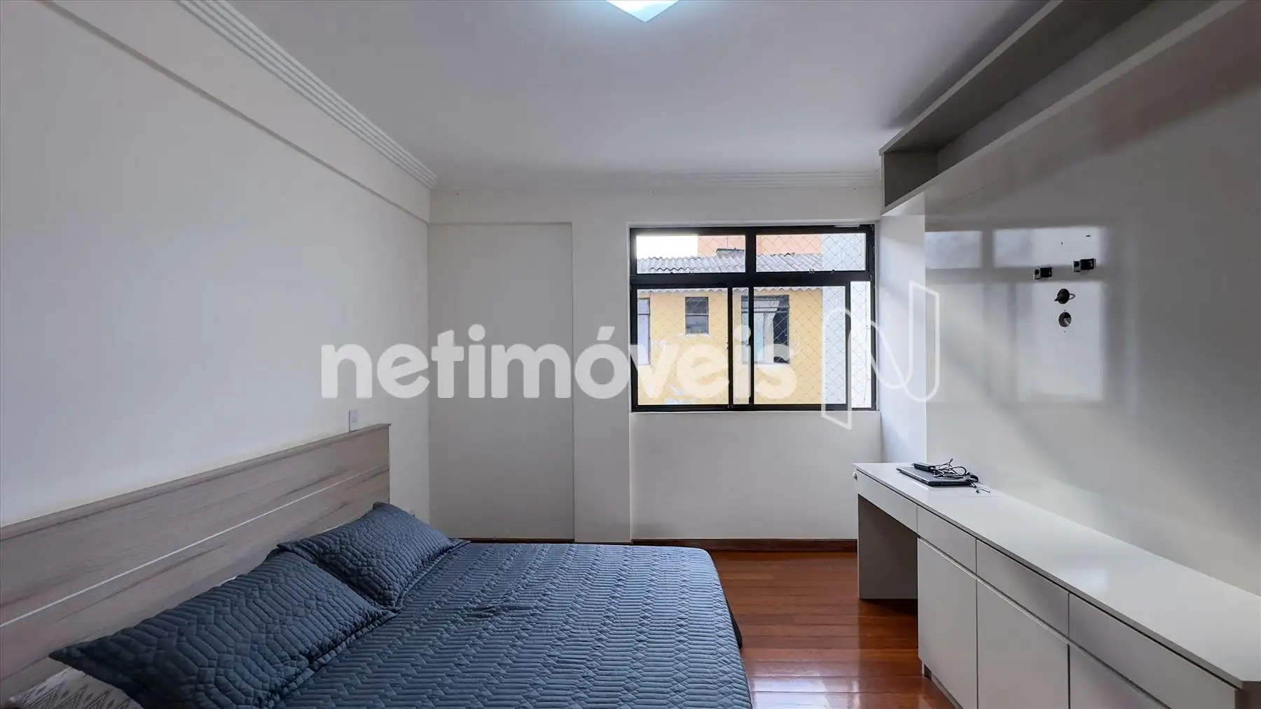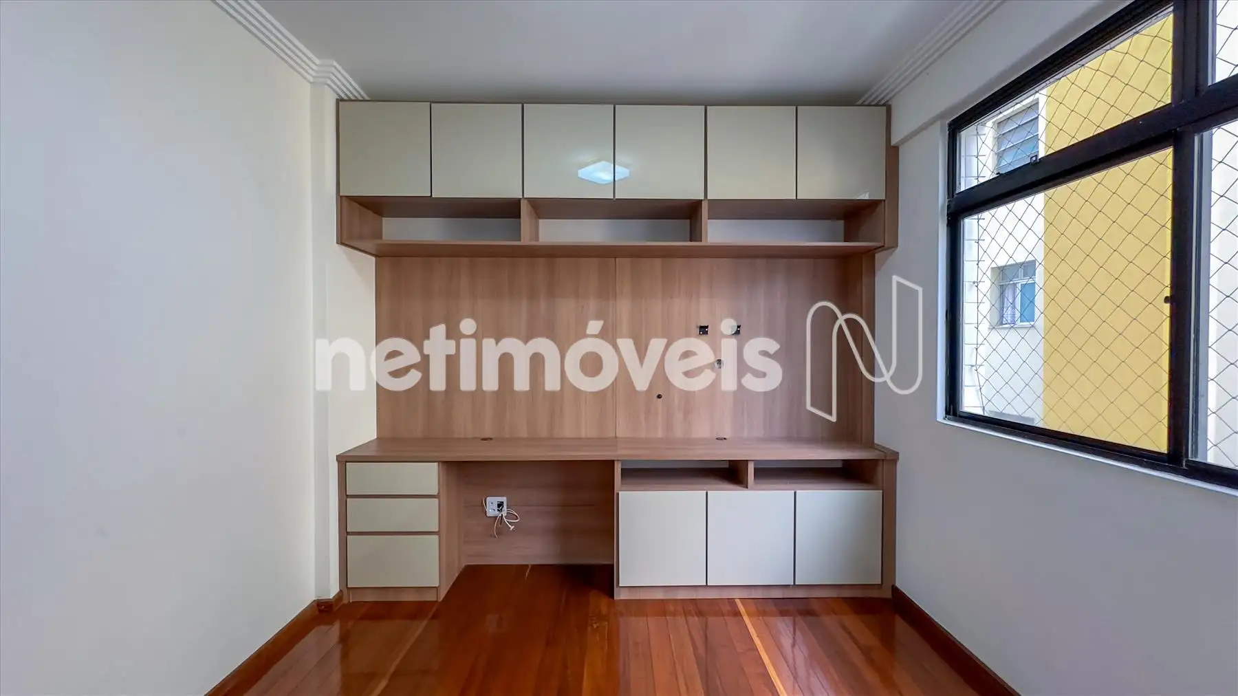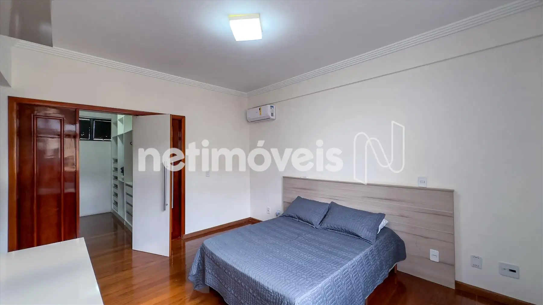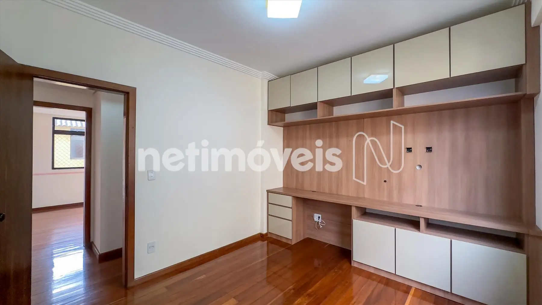 O apartamento possui ampla sala iluminada, com teto rebaixado em gesso, lavabo, banheiro social, cozinha integrada à copa, área de serviço e dependência completa de empregada. Os armários embutidos estão presentes em 4 quartos, 1 closet, na cozinha planejada e na área de serviço. O piso é de madeira corrida nas áreas sociais e íntimas e granito nos banheiros e na cozinha.