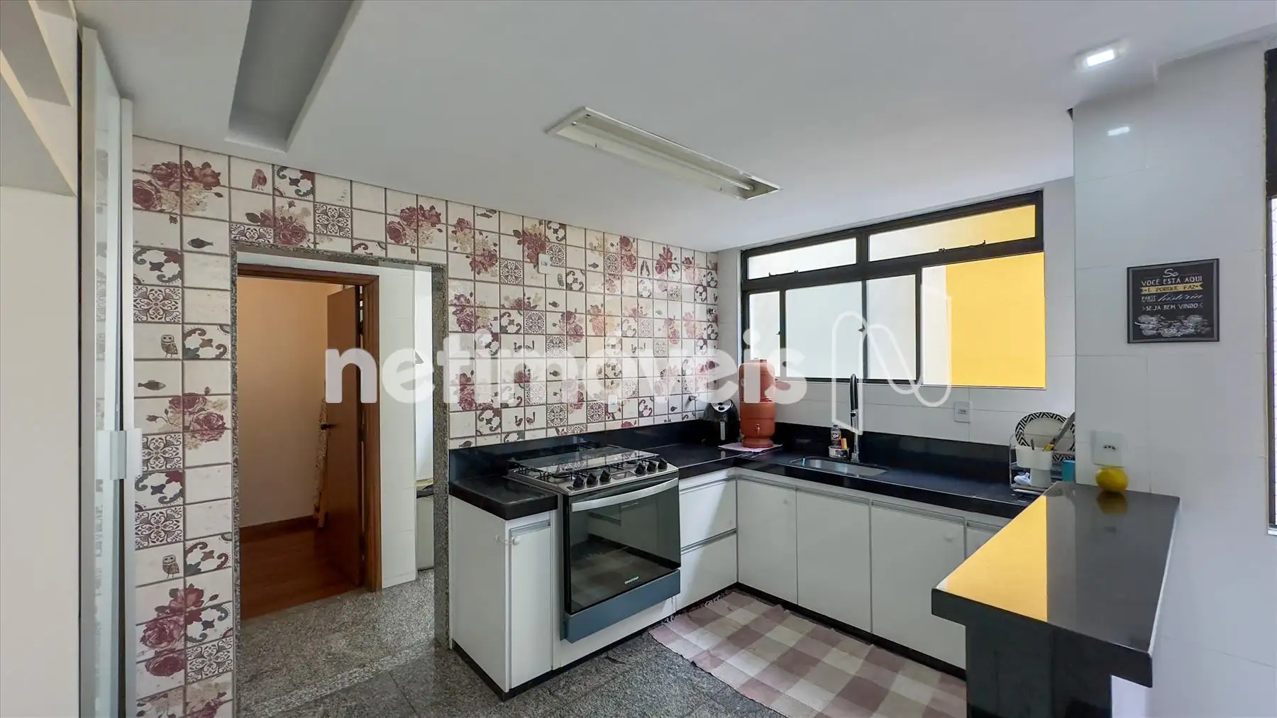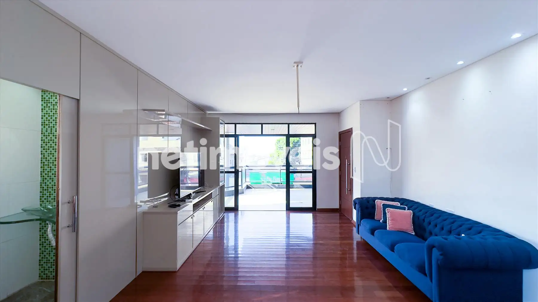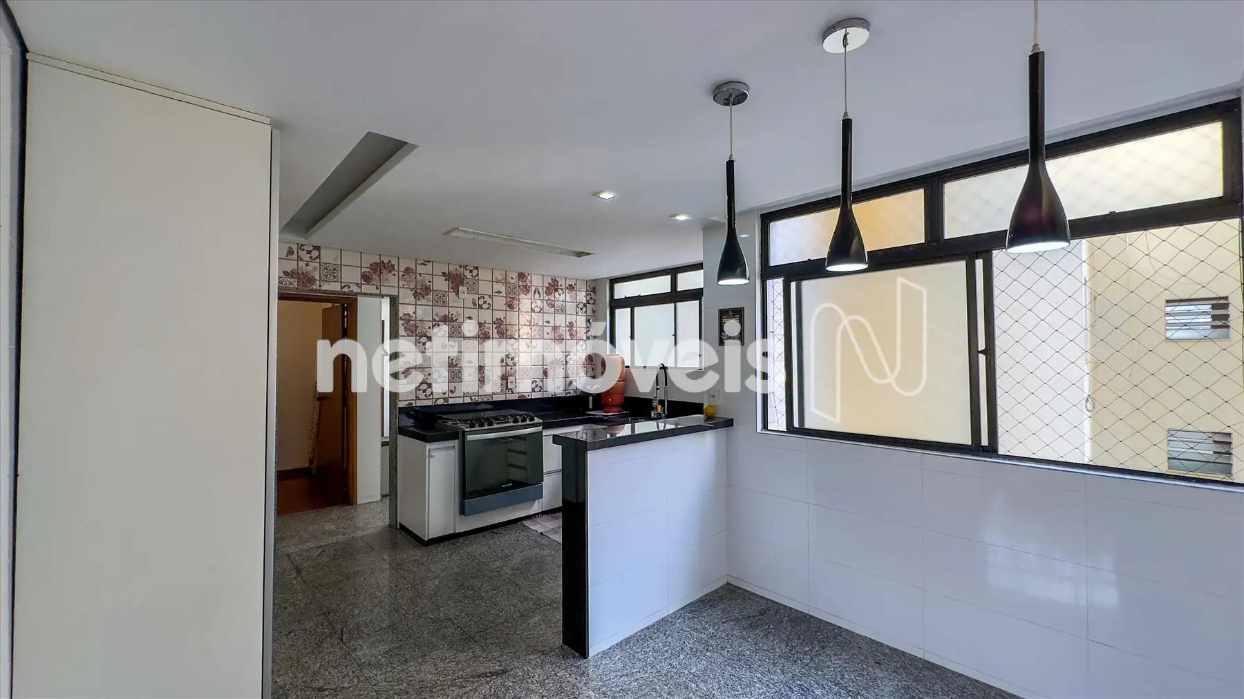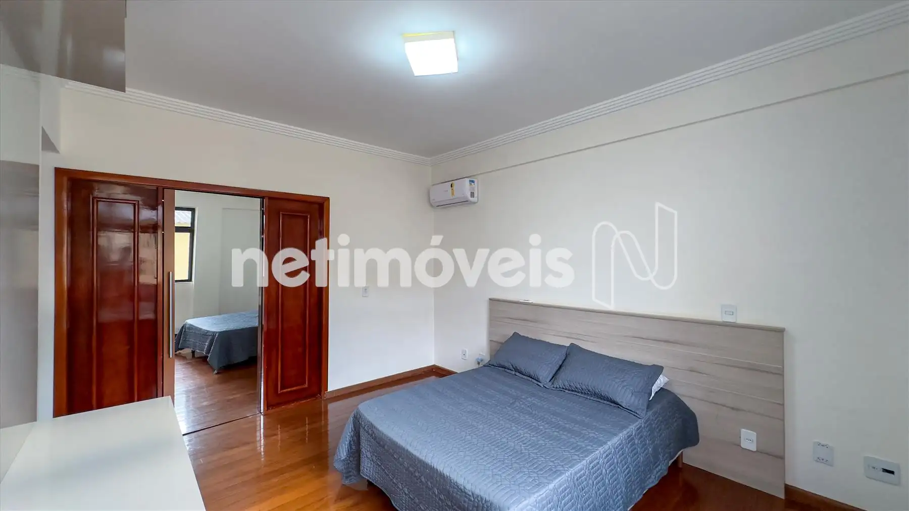 O apartamento possui ampla sala iluminada, com teto rebaixado em gesso, lavabo, banheiro social, cozinha integrada à copa, área de serviço e dependência completa de empregada. Os armários embutidos estão presentes em 4 quartos, 1 closet, na cozinha planejada e na área de serviço. O piso é de madeira corrida nas áreas sociais e íntimas e granito nos banheiros e na cozinha.