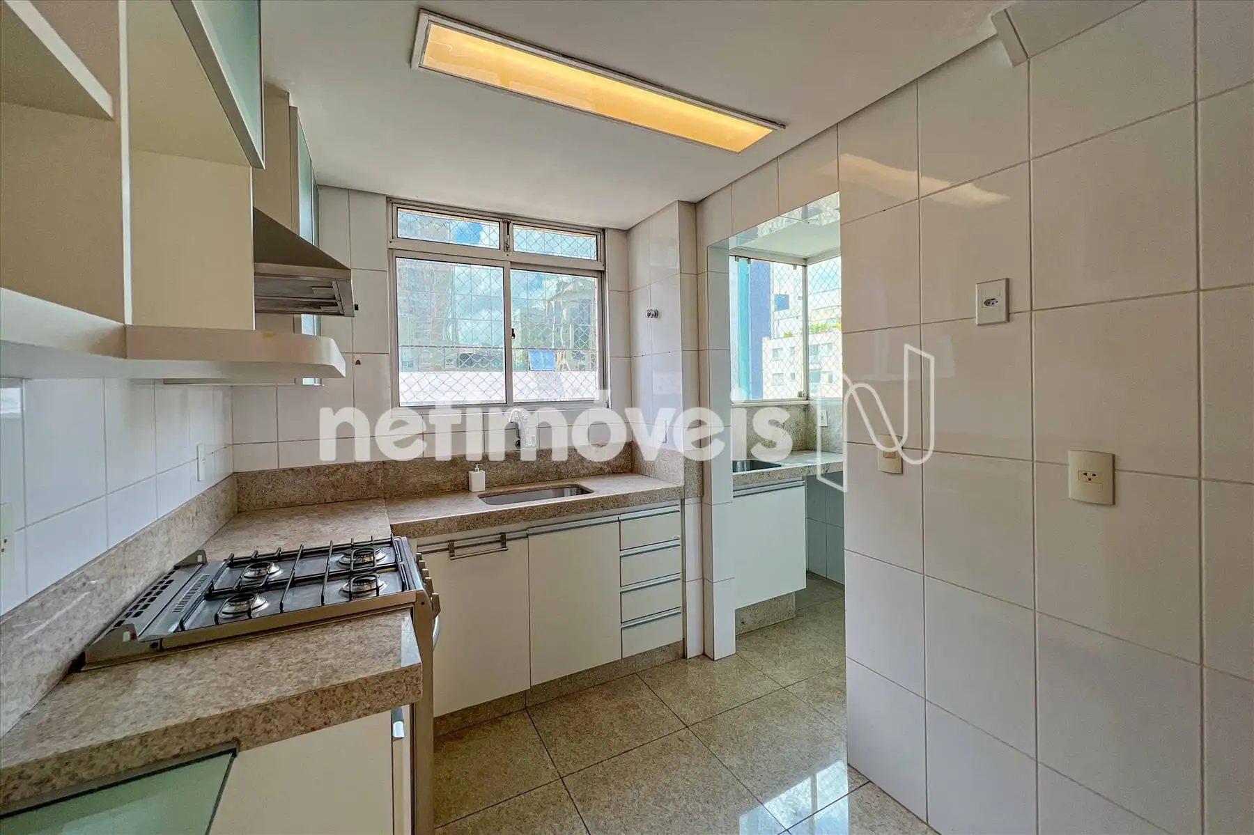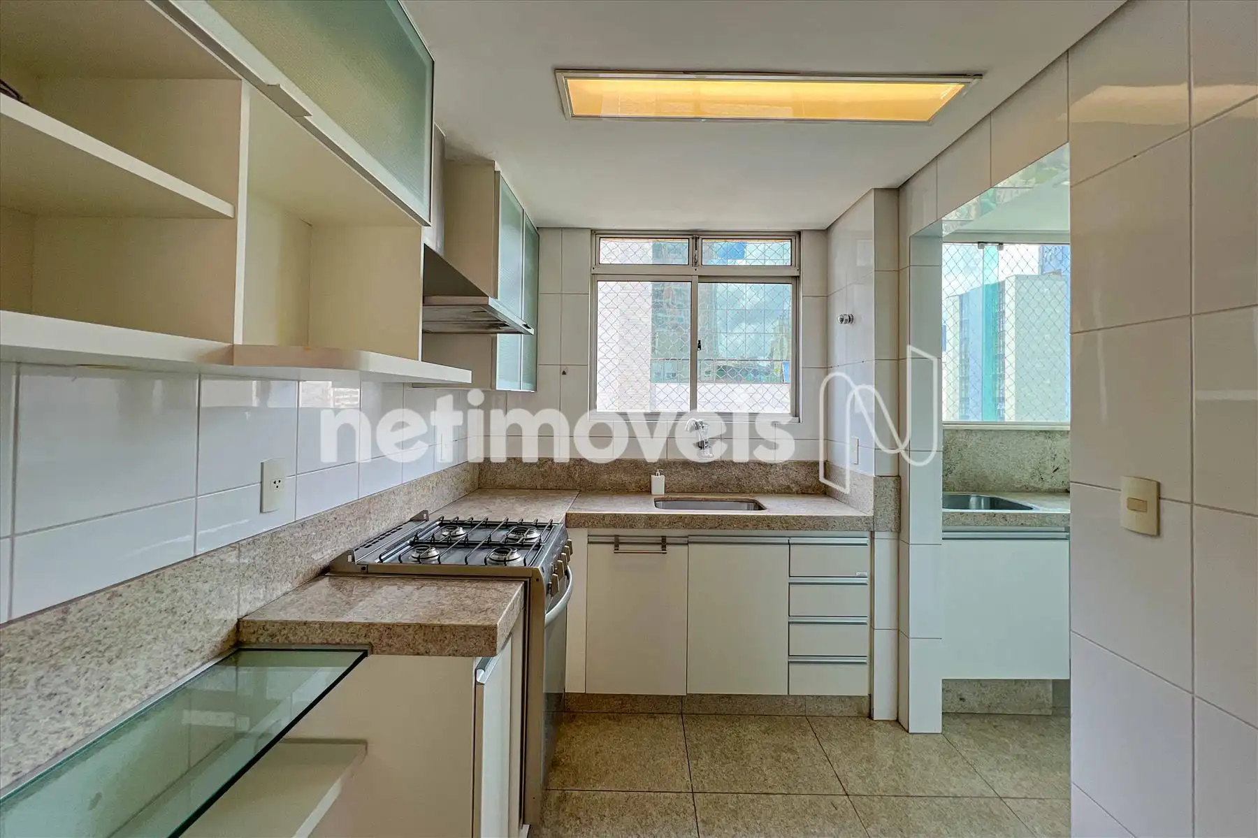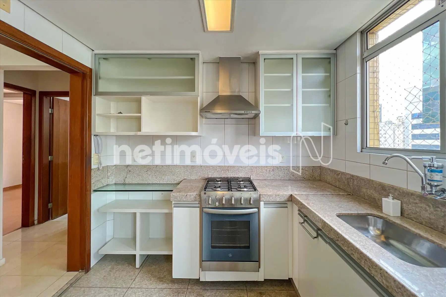 01 cozinha com bancada em granito e armários;