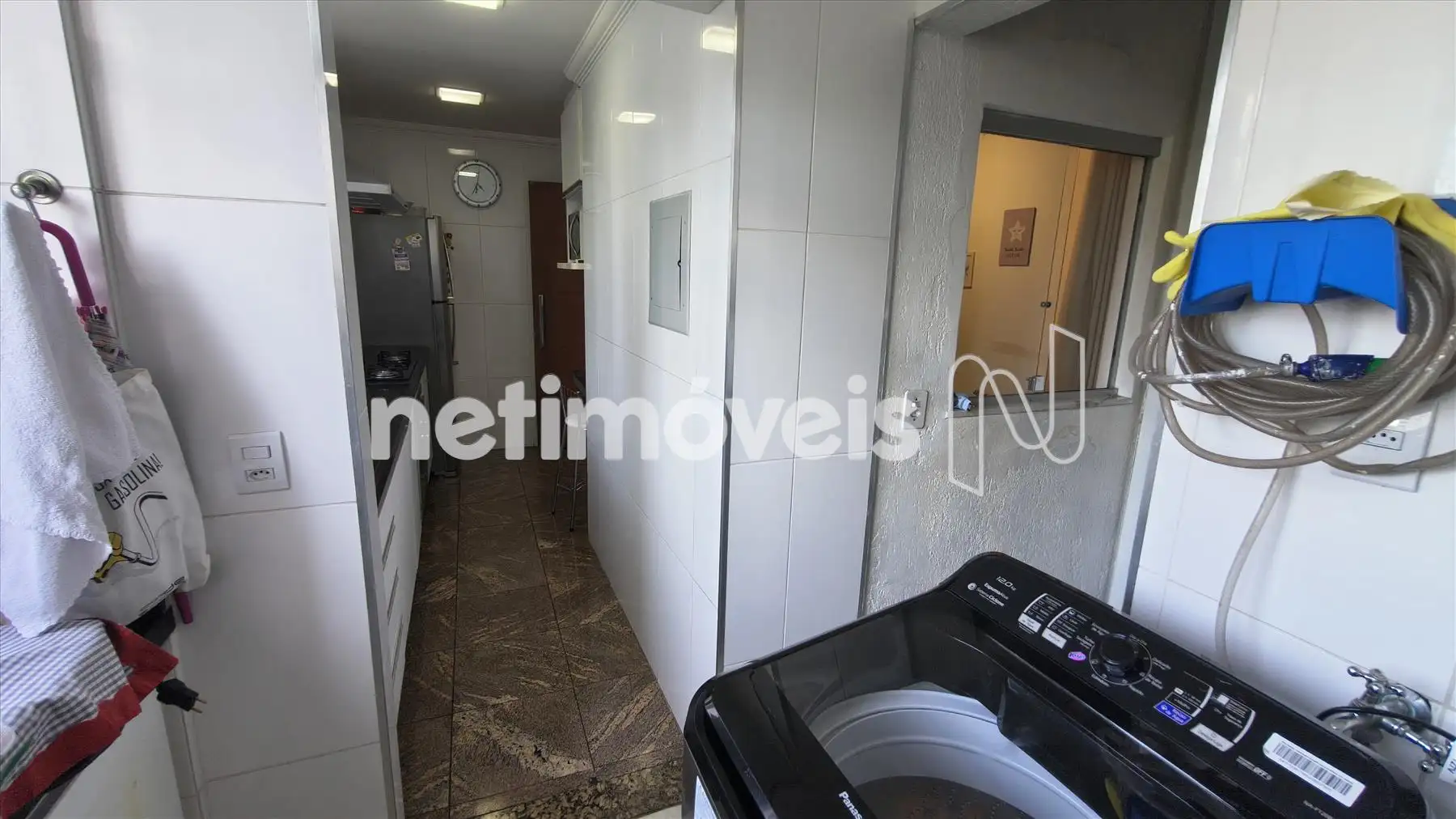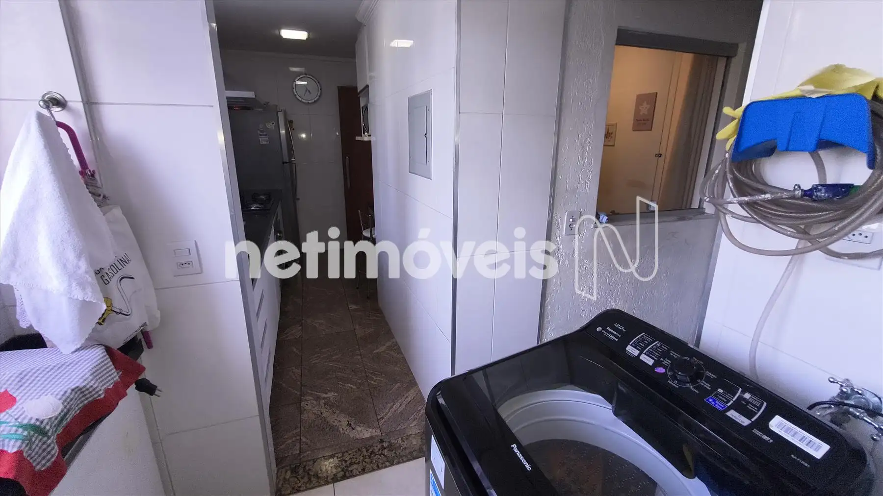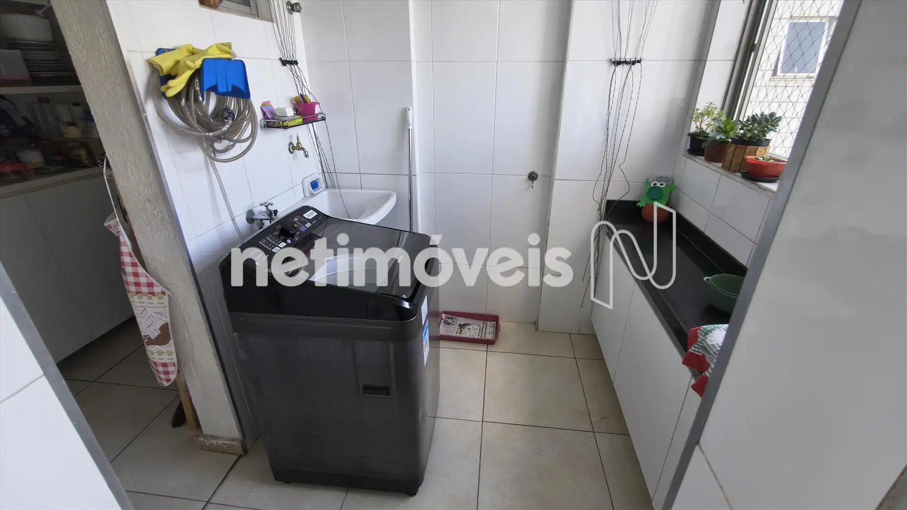 Área de serviço com armário e bancada em granito.