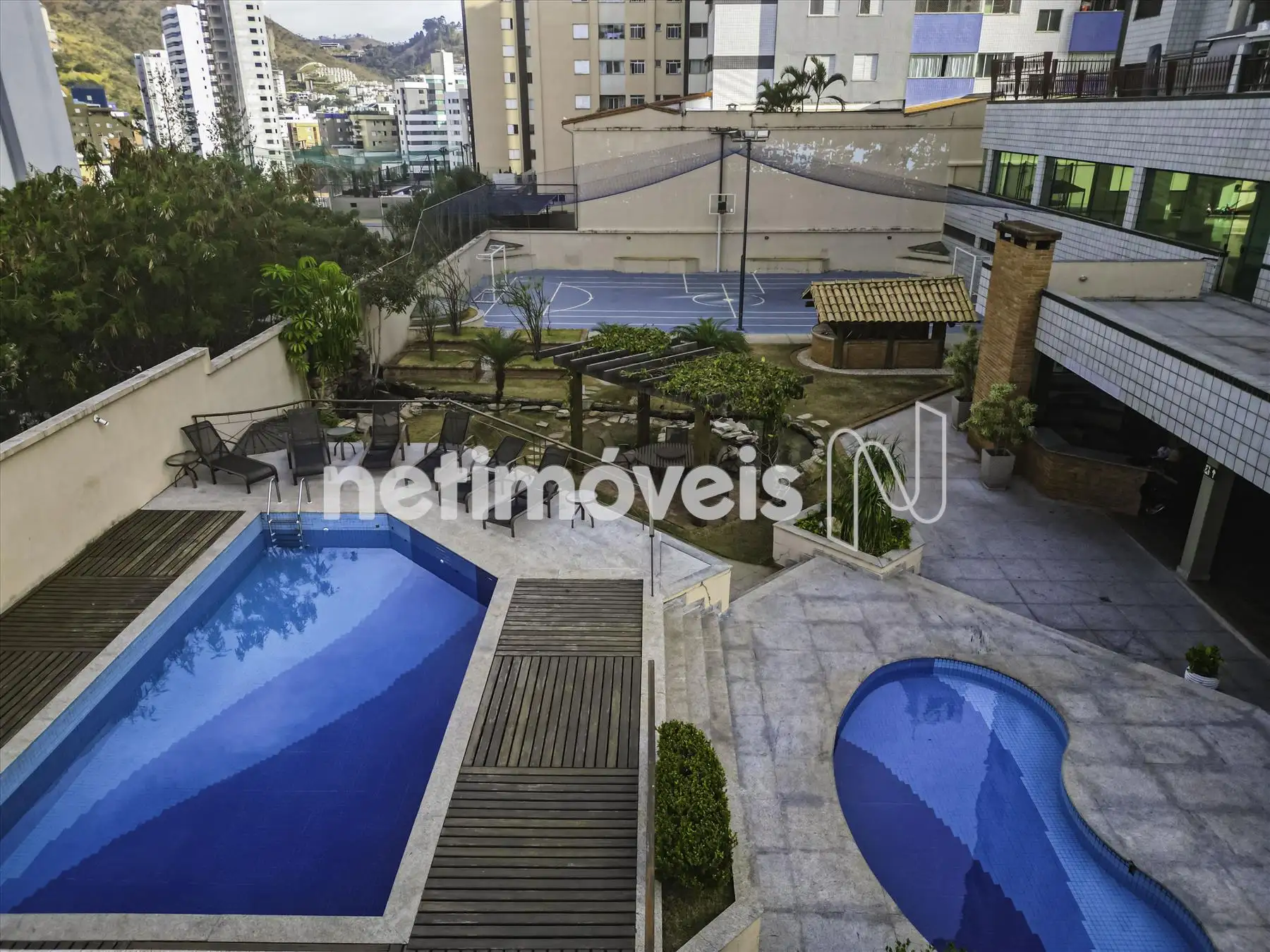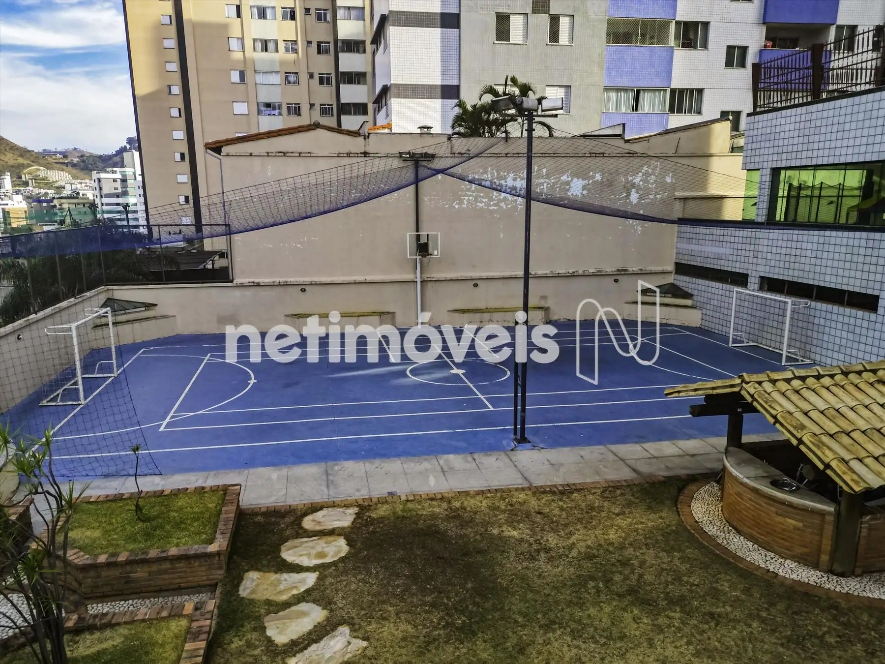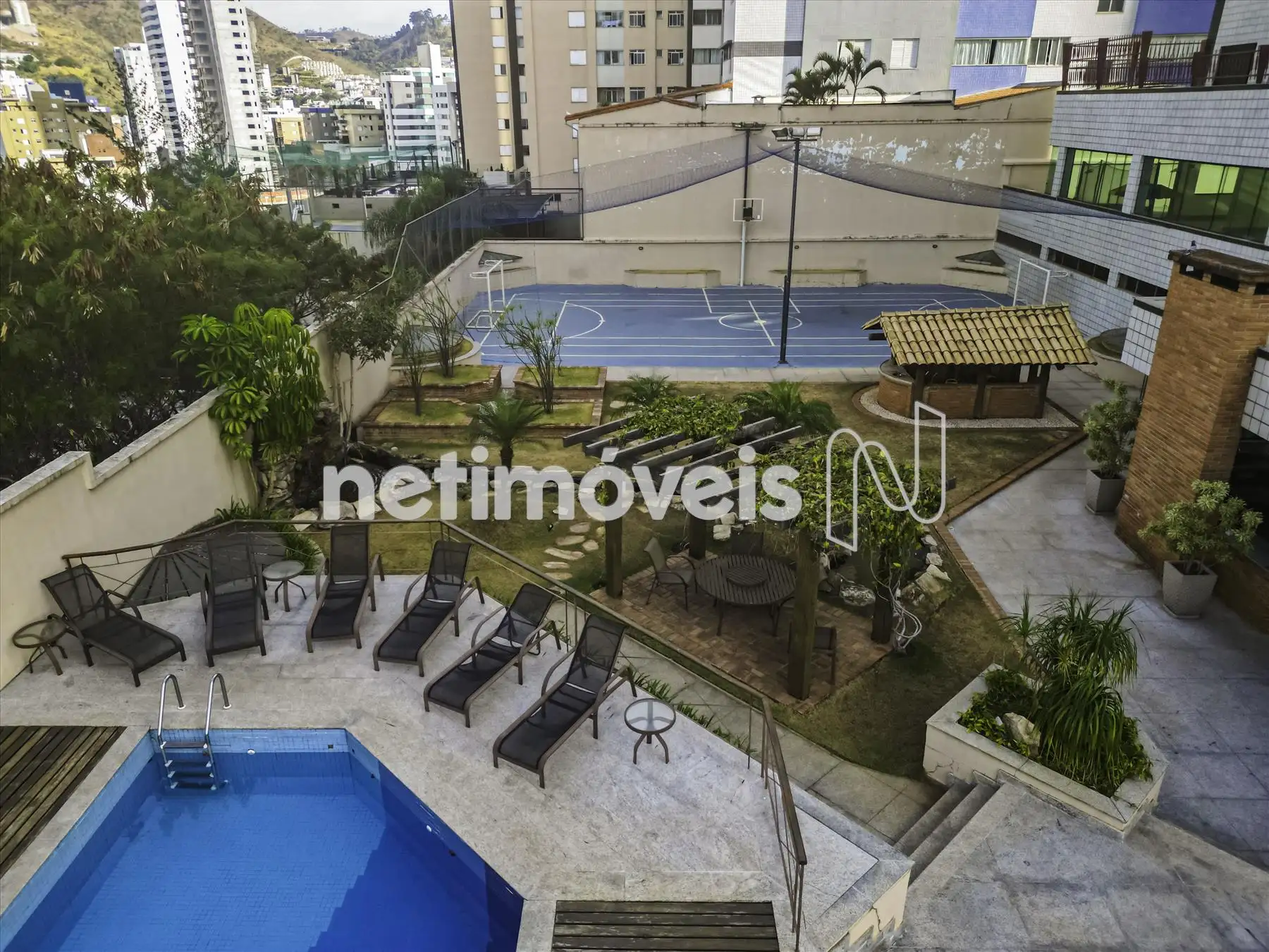 O prédio é imponente, 100% revestido, com área de lazer completa: piscina, espaço gourmet com fogão a lenha, cascata, salão de festas amplo, quadra poliesportiva e portaria.