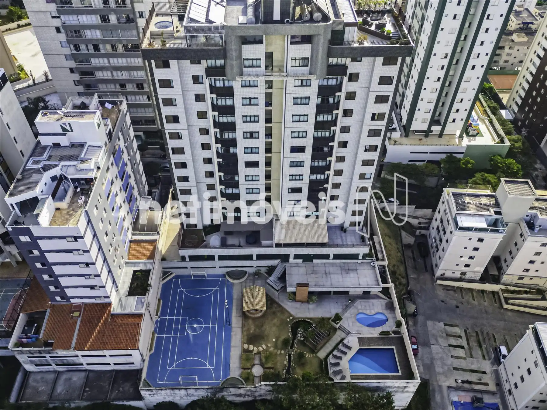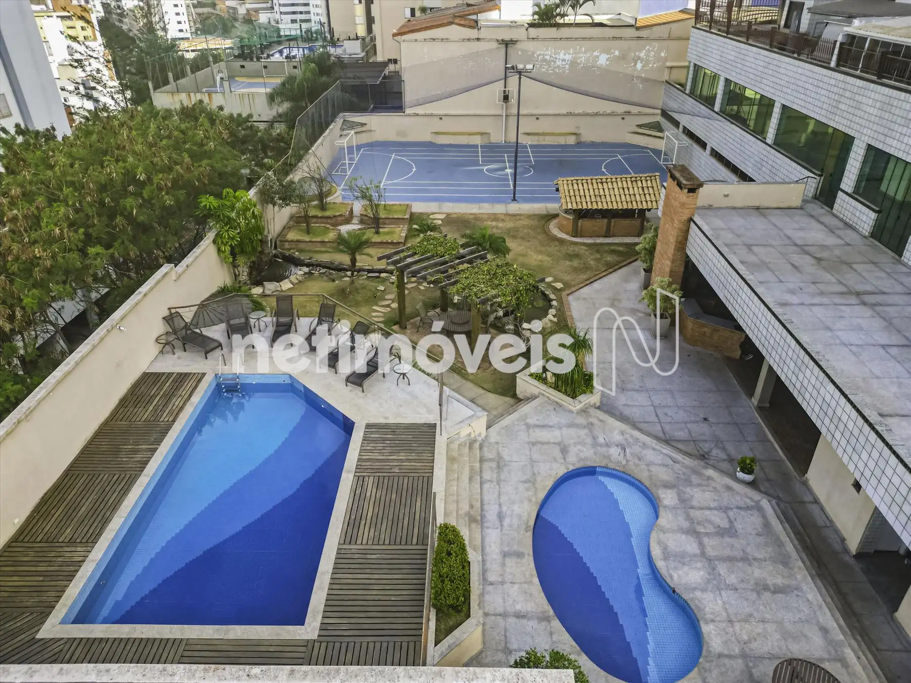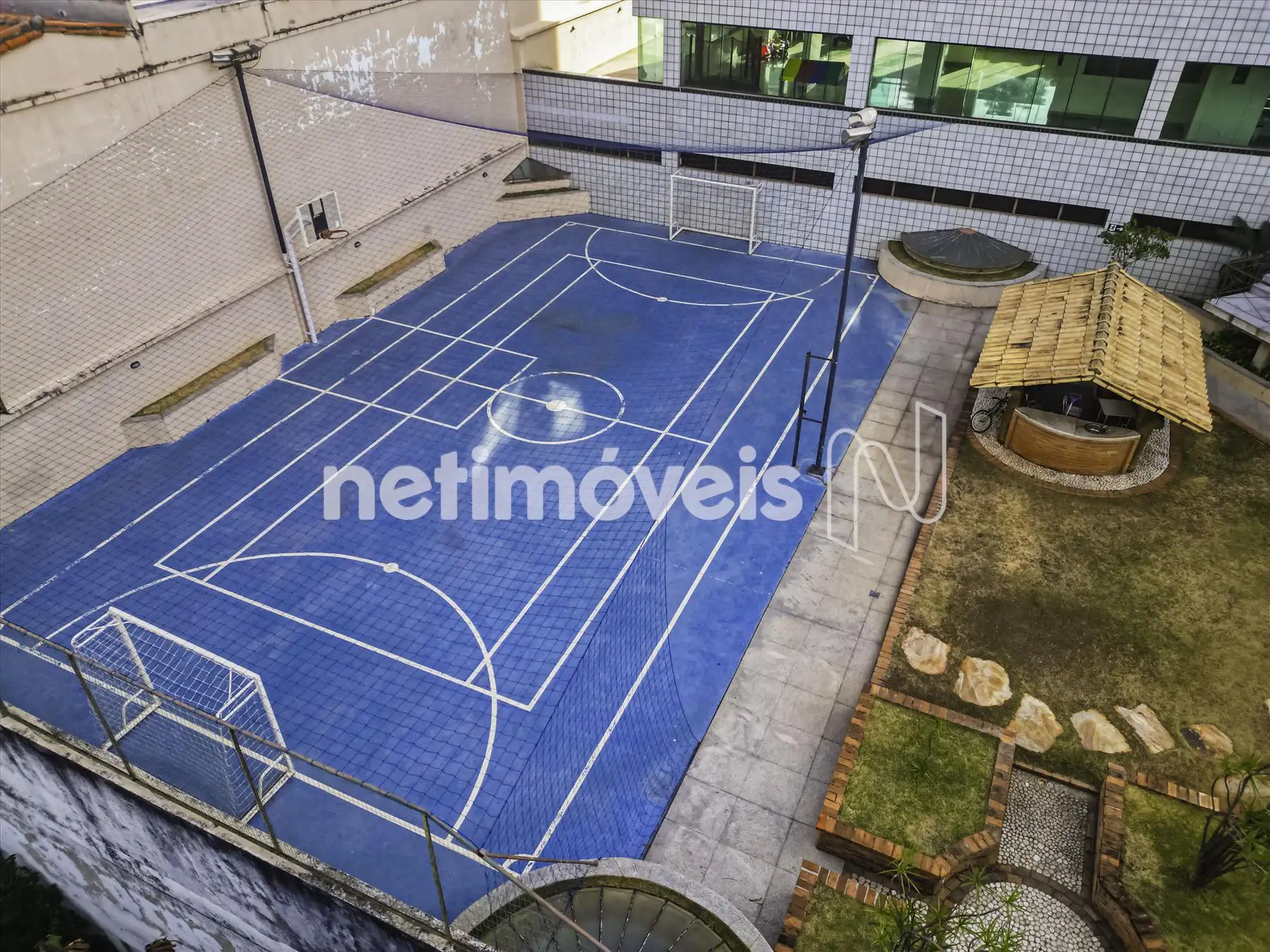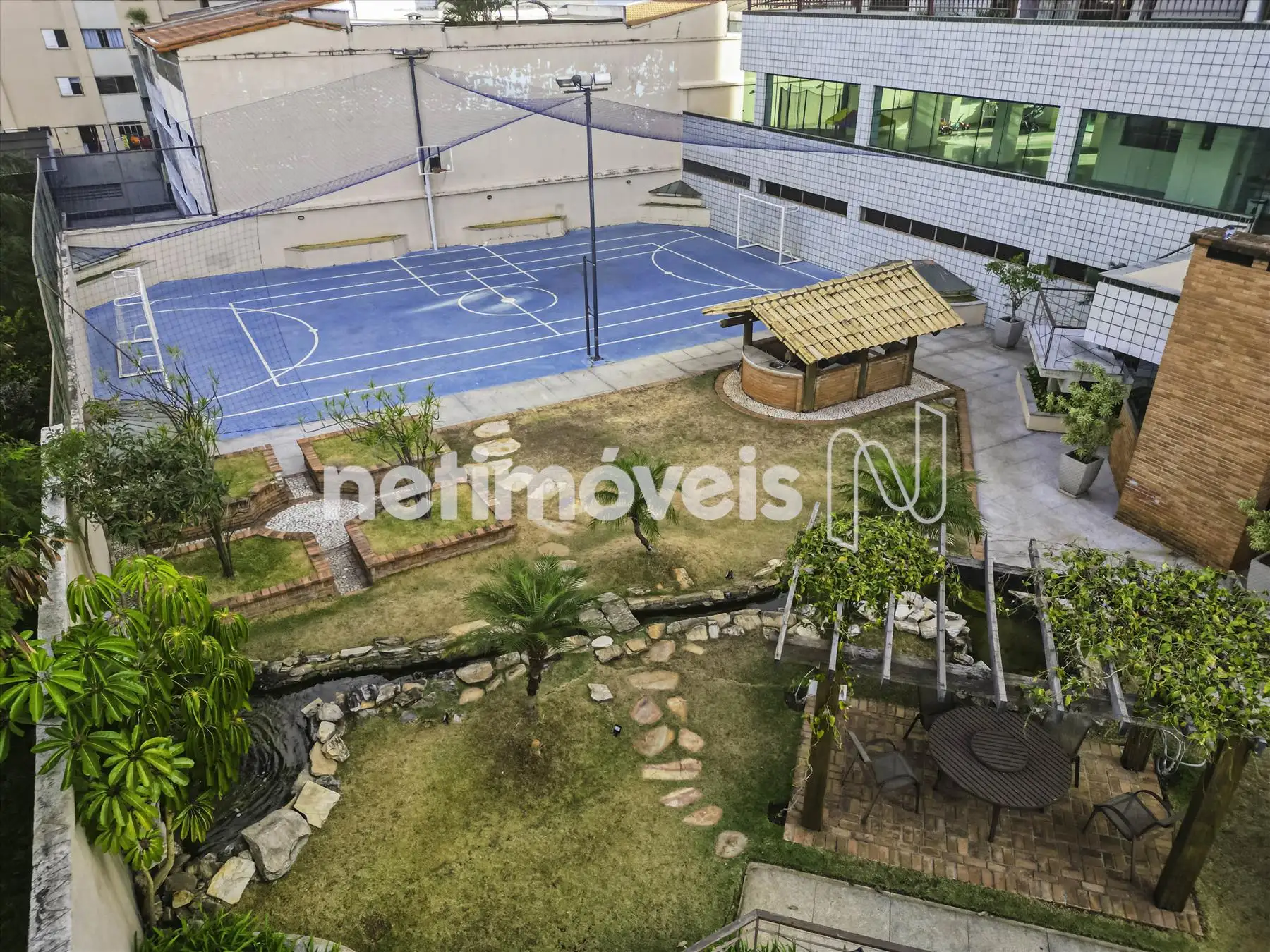 O prédio é imponente, 100% revestido, com área de lazer completa: piscina, espaço gourmet com fogão a lenha, cascata, salão de festas amplo, quadra poliesportiva e portaria.