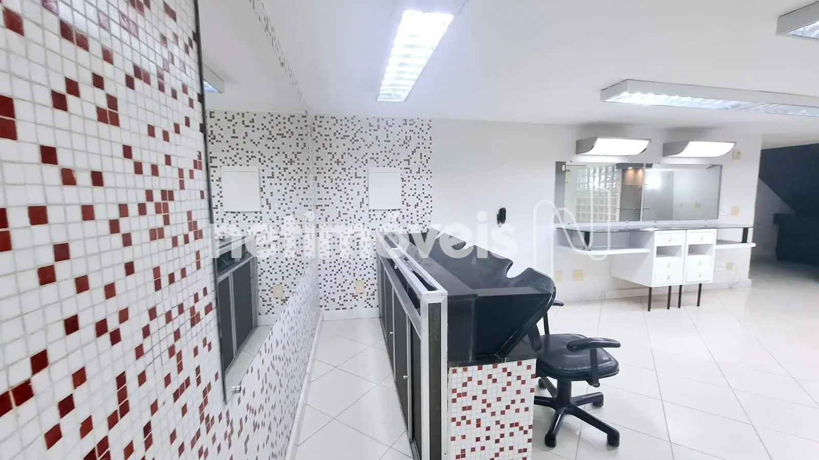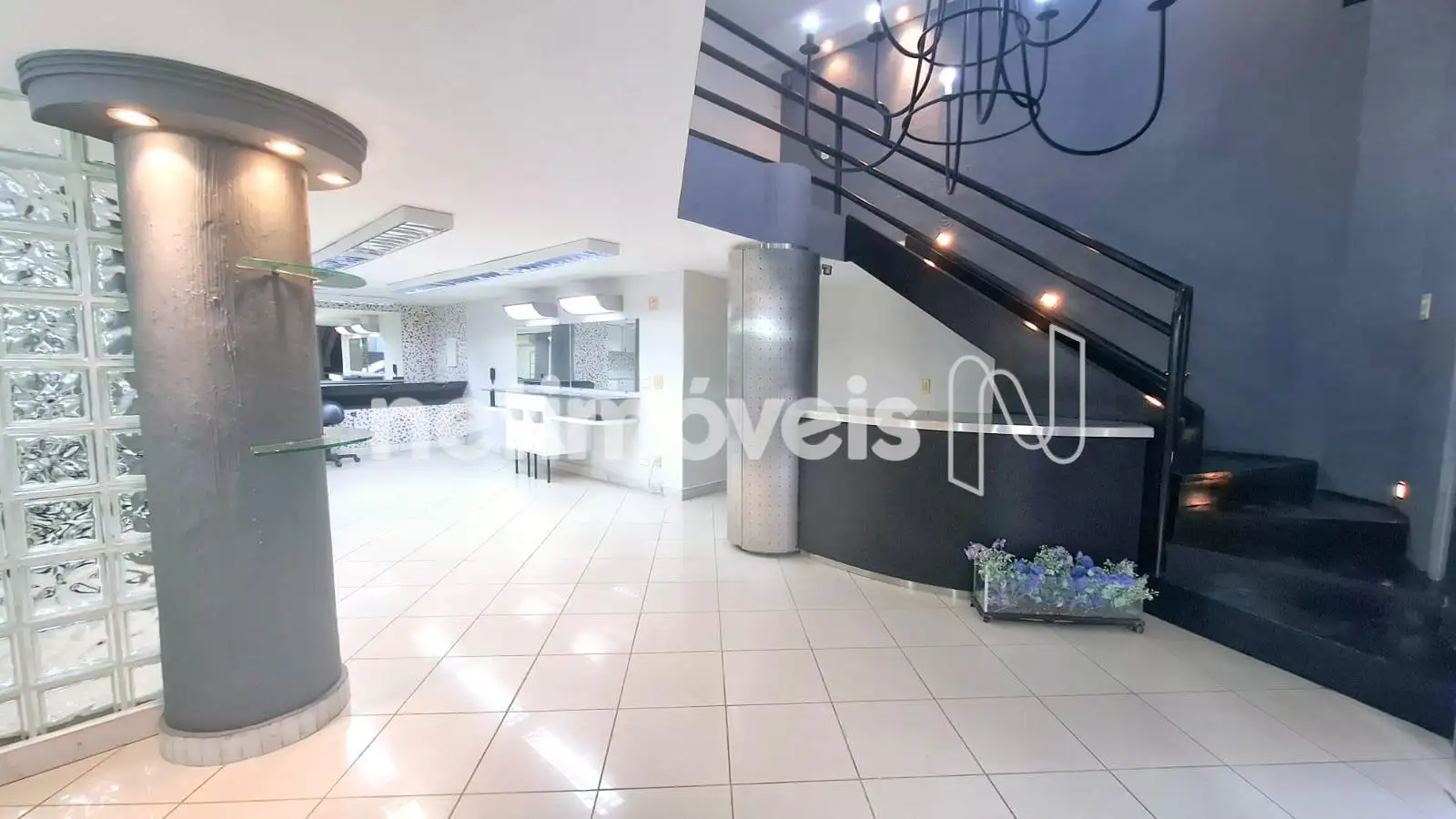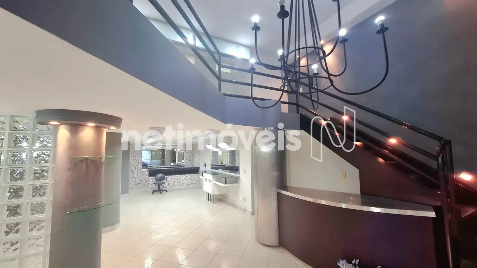 1º Pavimento: Linda recepção decorada conjugada com sala de espera com pé direito duplo, iluminada por um belíssimo lustre rústico. Outra sala muito ampla com vários ambientes todos espelhados e decorados, no mesmo ambiente – pia lavatório em granito; armários planejados e banheiro decorado com pia sobreposta em armário de madeira e vidro. Escada em madeira.