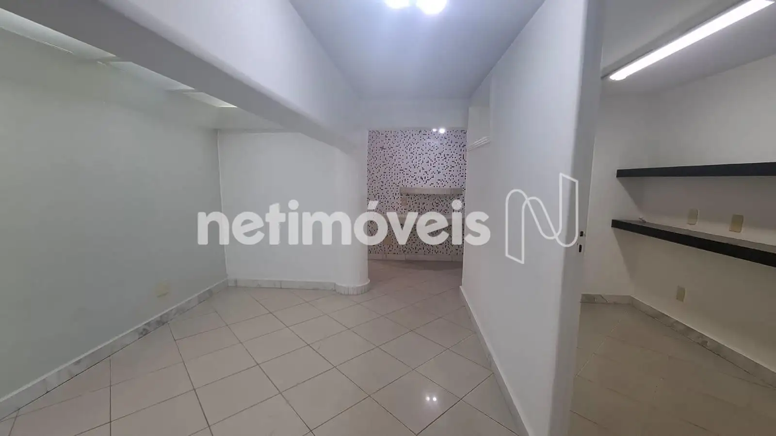 Tetos rebaixados em gesso, iluminação projetada e piso em porcelanato em toda a loja.