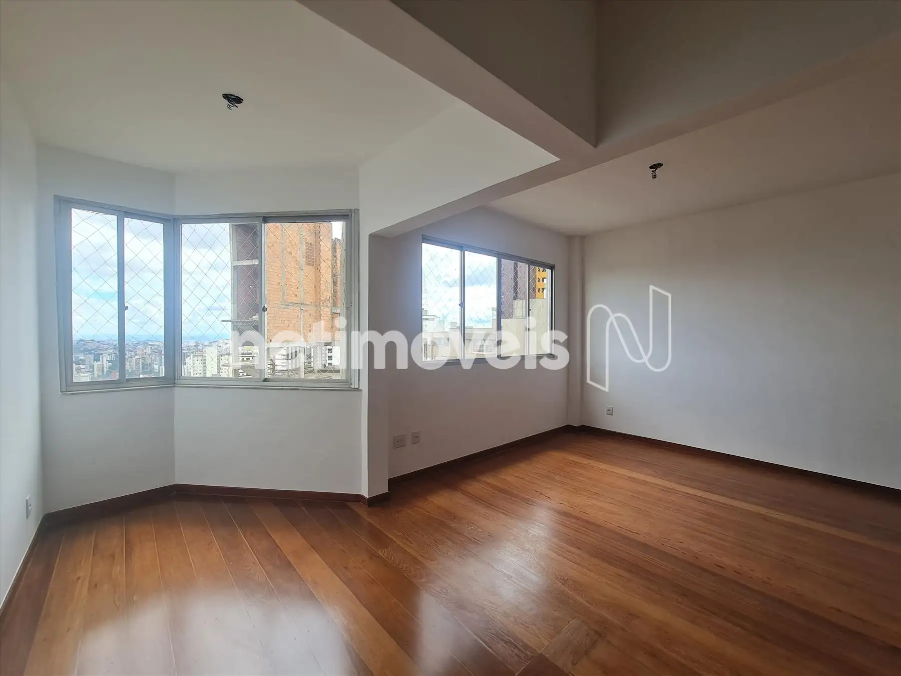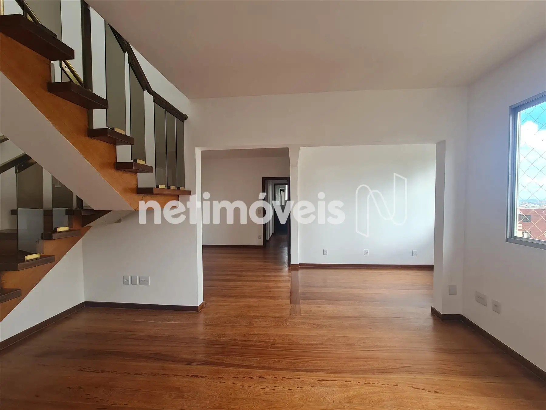 - Sala para 03 ambientes com piso em tábua corrida, varanda integrada. Rouparia no corredor.