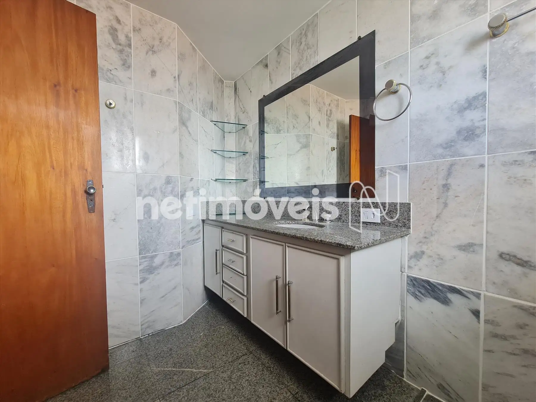 - Banhos suíte e social com piso e bancada em granito, armário, espelho e box em vidro temperado.