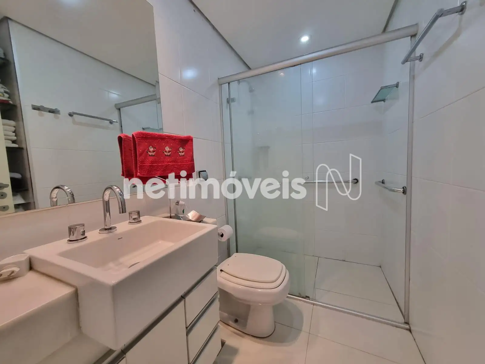 Banho suíte com armários, box blindex, piso em porcelanato e bancada em granito.