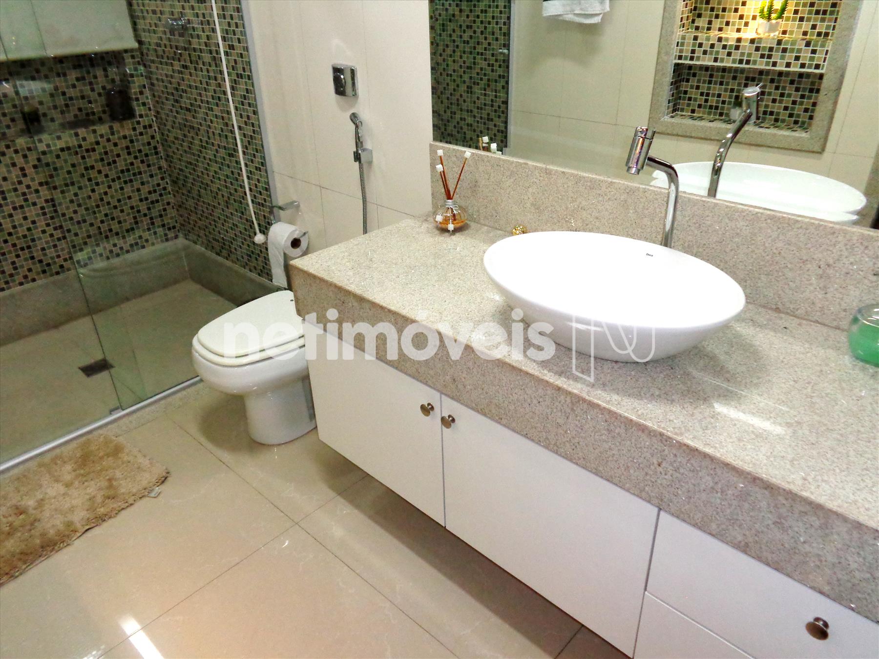 - - Banho suíte com armário sob bancada em granito, box em vidro temperado;