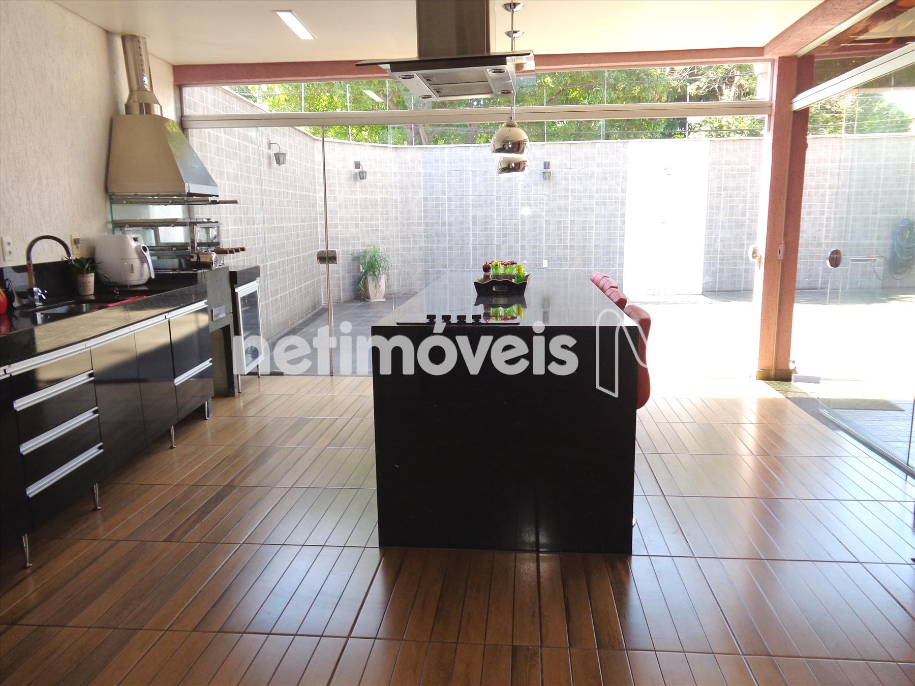 - - Espaço gourmet, com churrasqueira, ilha ao centro, bancada com armário sob bancada em granito;