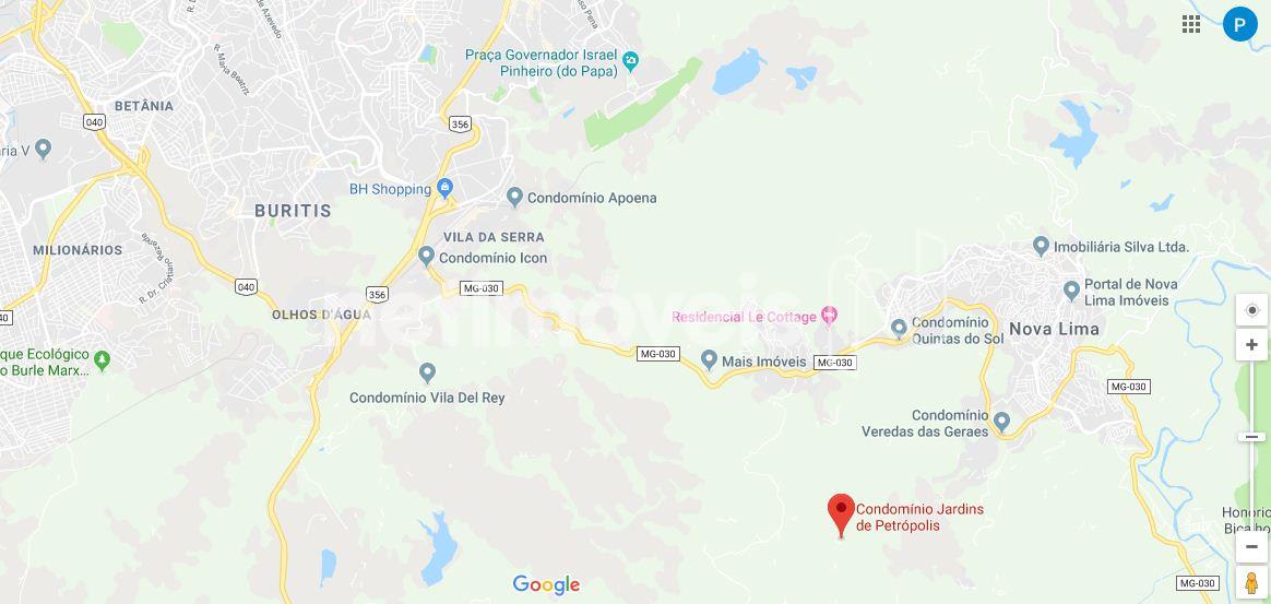 O bairro Jardins de Petrópolis fica distante 6km até o centro de Nova Lima e 12km do BH Shopping, com ruas pra fazer ótimas caminhadas, pedaladas, respirar e sentir toda a pureza do ar de Mata Atlântica, com uma vista exuberante do Morro do Pires. Lá você vai criar suas galinhas, cachorros, gatos, patos, ver as maritacas riscando os céus, até tucanos com uma dose de sorte. Ter sua horta e pomar produzindo a vontade. Uma exuberante fauna, flora e nascentes preservadas. São 633 hectares, divididos em 843 chácaras, com áreas a partir de 5.000m² e diversas casas construídas.