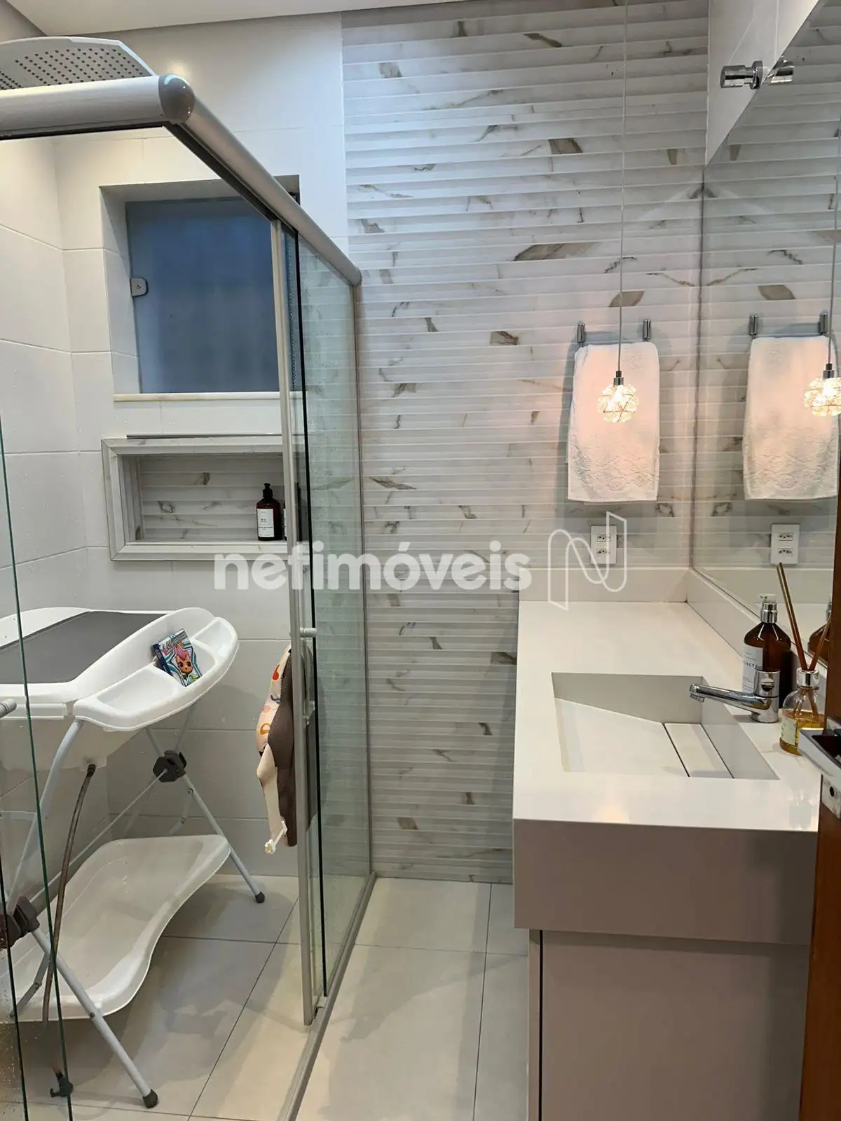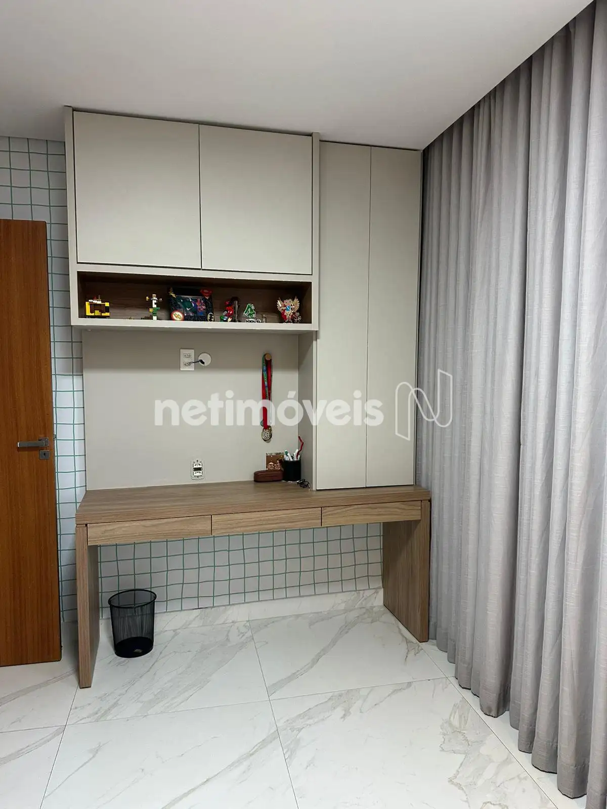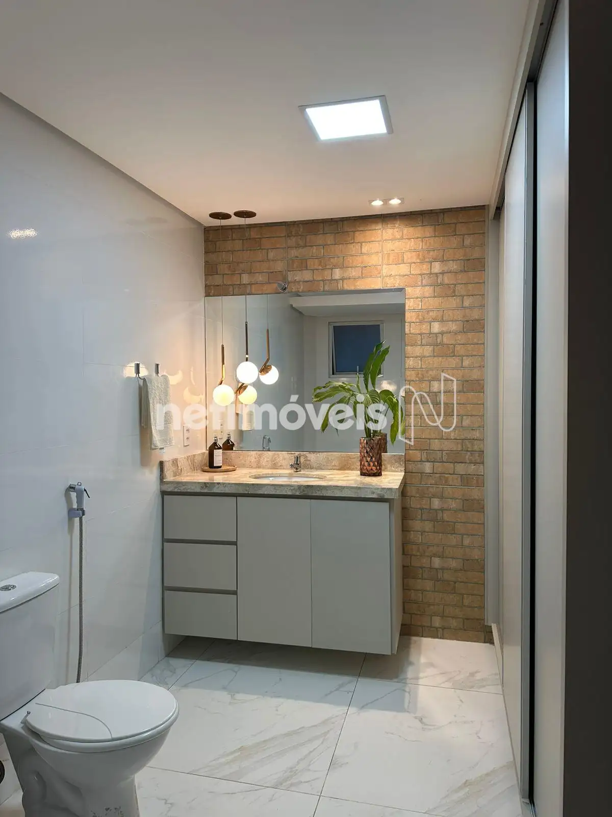 - Banheiros espaçosos contam com armários planejados, e há ainda um quartinho de despejo para organização extra;