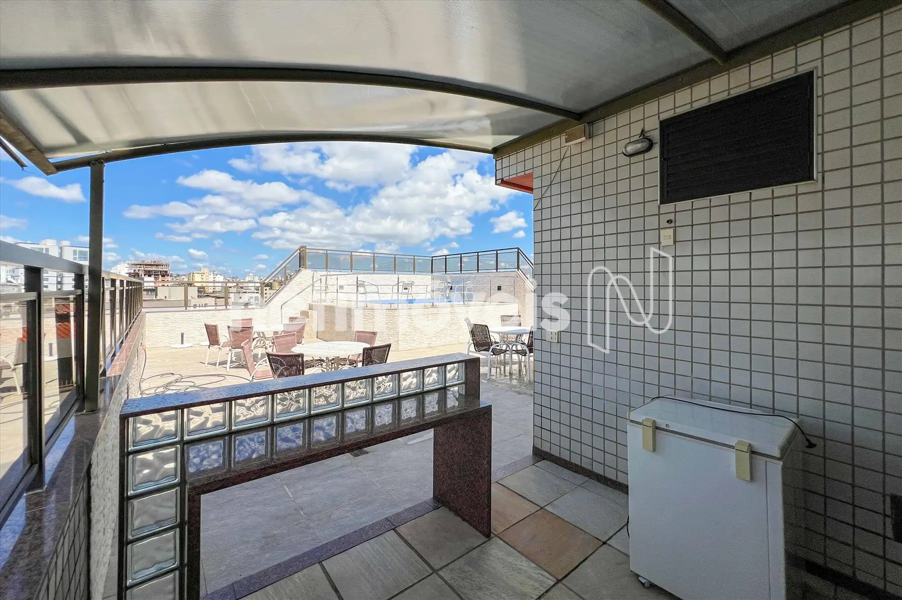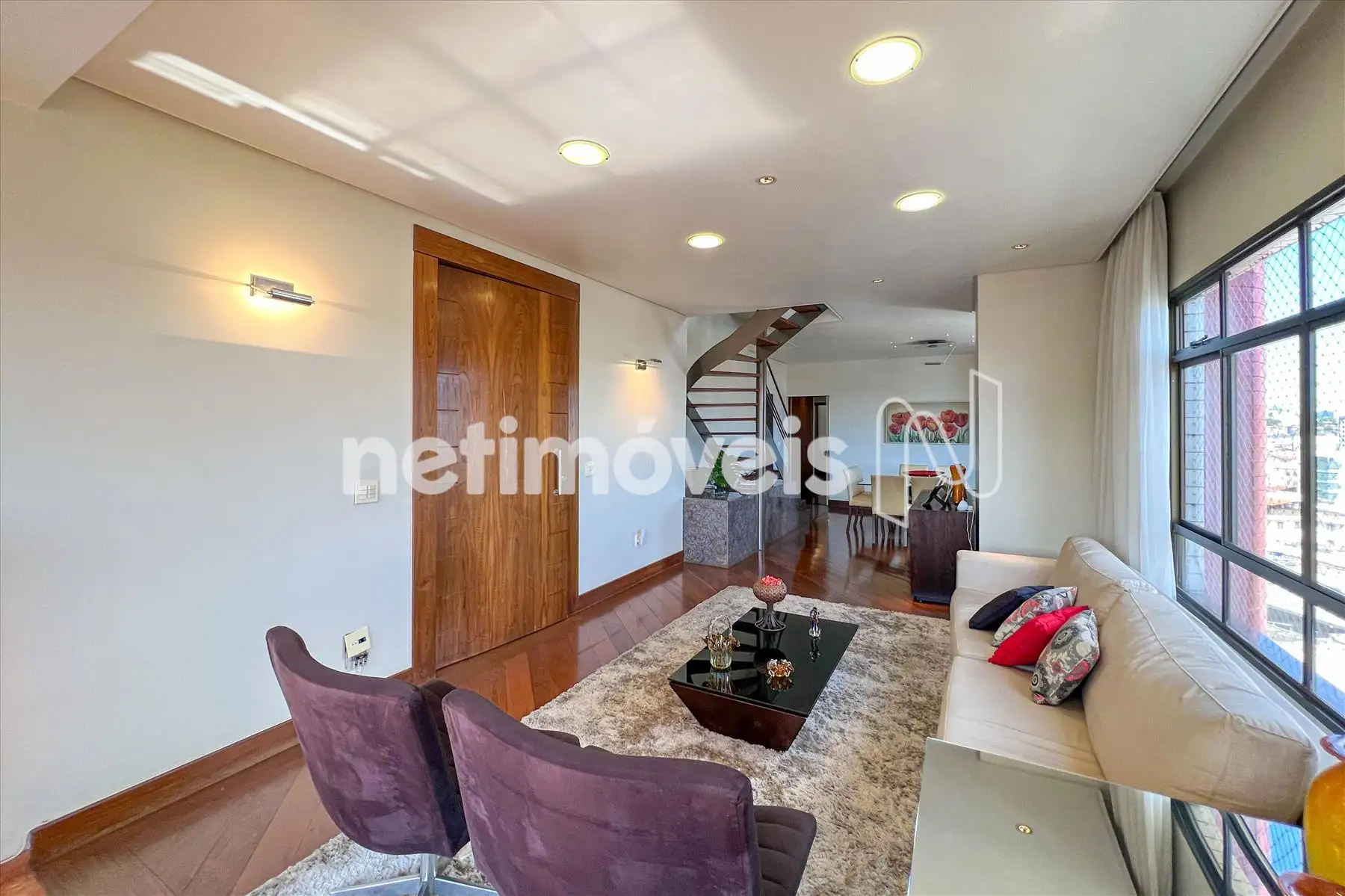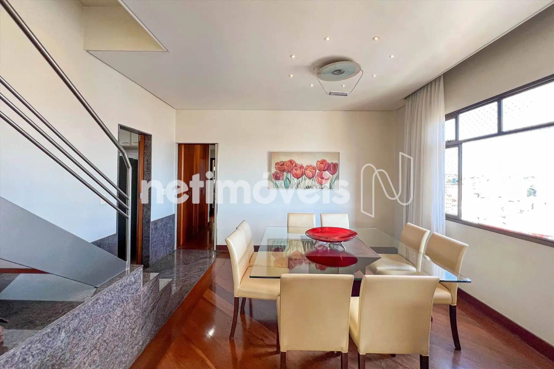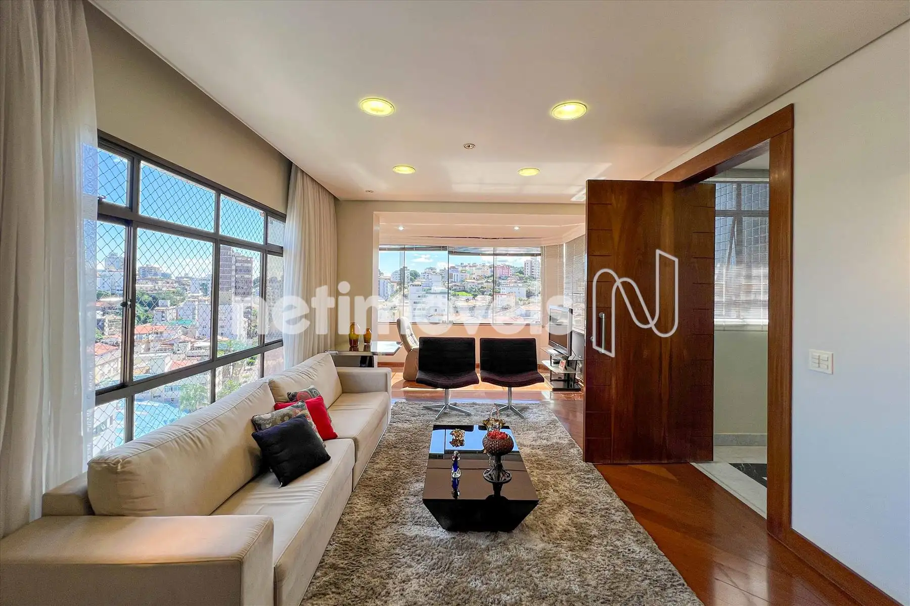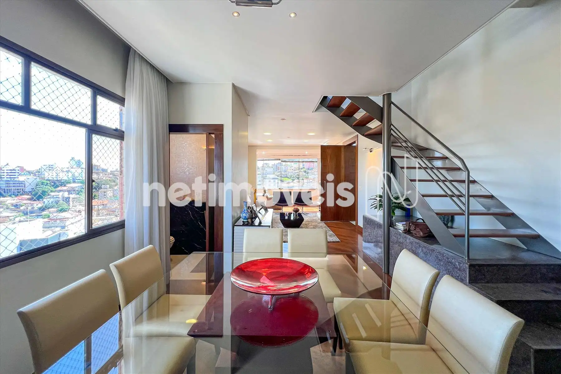 Área Social: Sala ampla com varanda incorporada e fechamento em blindex, garantindo luz natural e sofisticação.