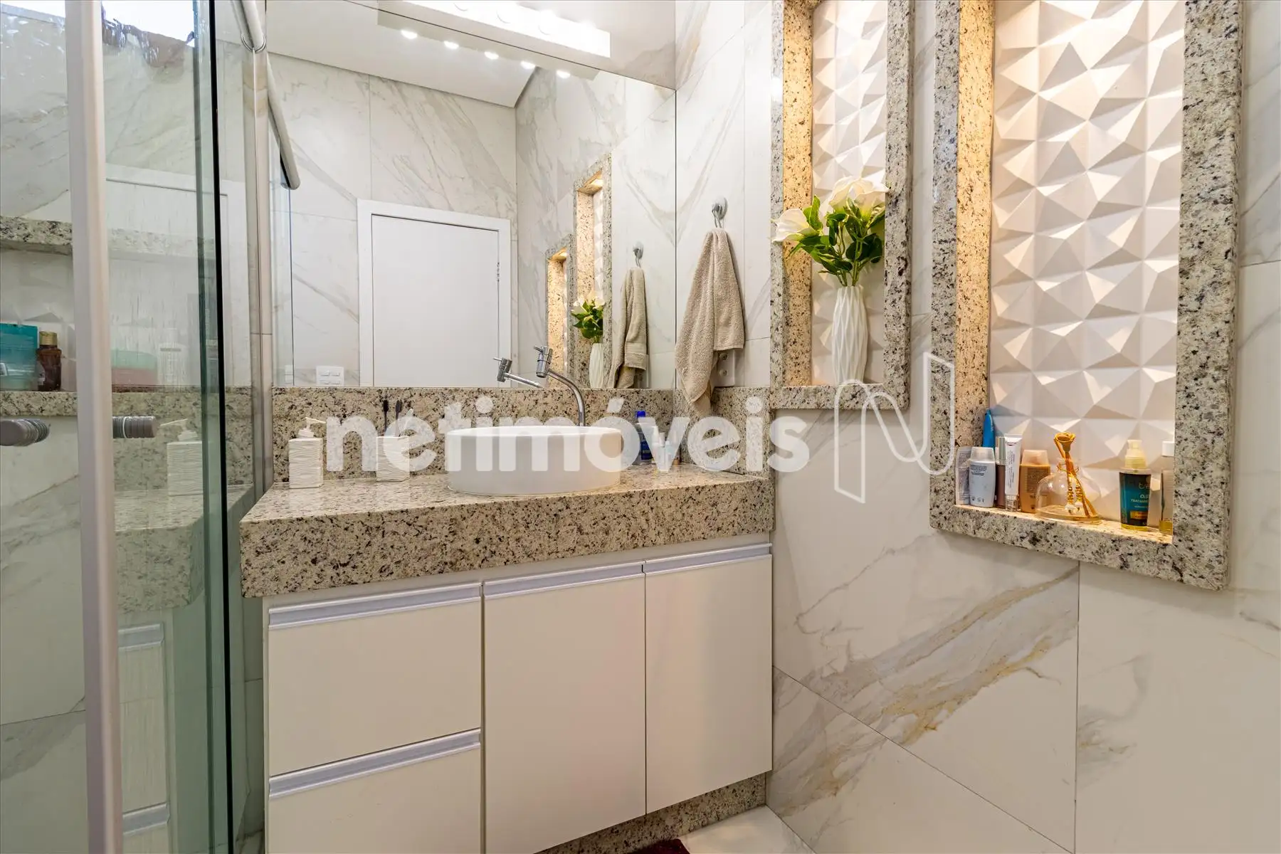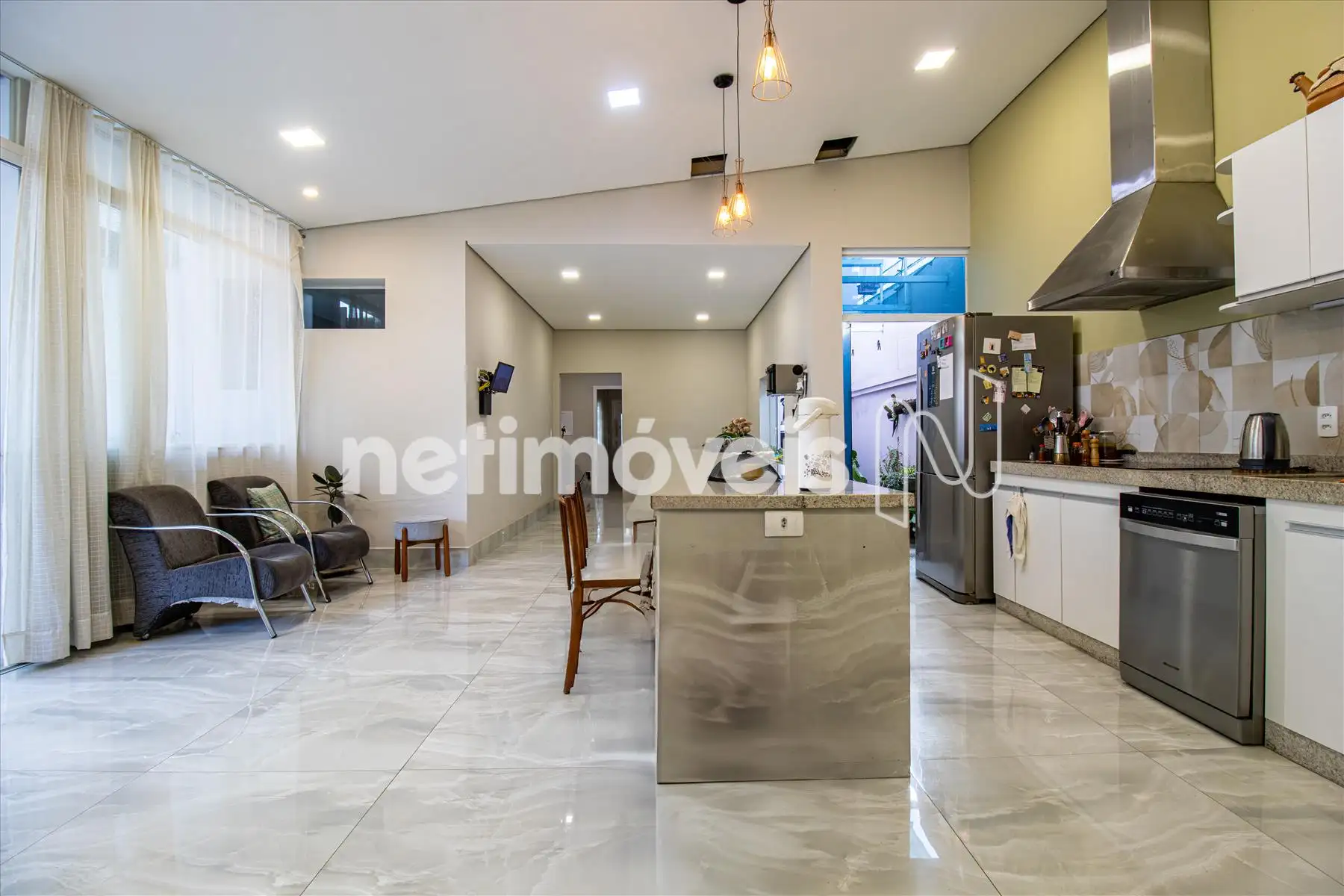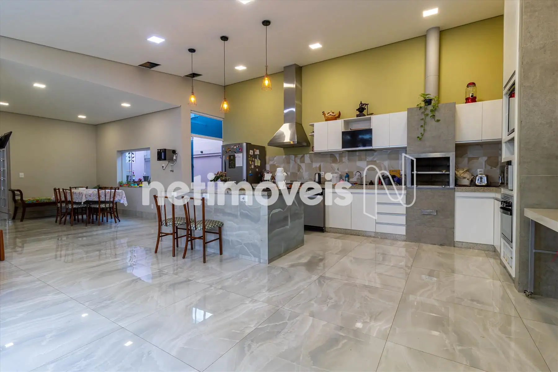- Cozinha com armários bancada em mármore;