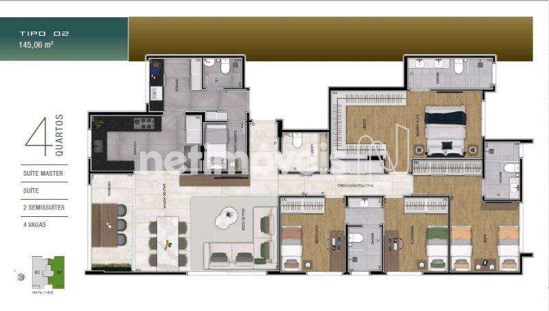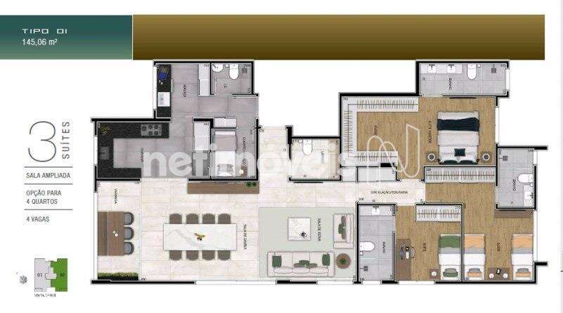 Apartamento de 4 quartos, 1 suíte e 2 semi-suítes, ampla sala, varanda, lavabo, ótima cozinha e DCE, 4 vagas de garagem, acabamento de alto luxo.