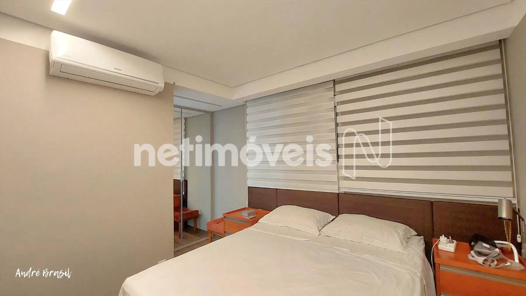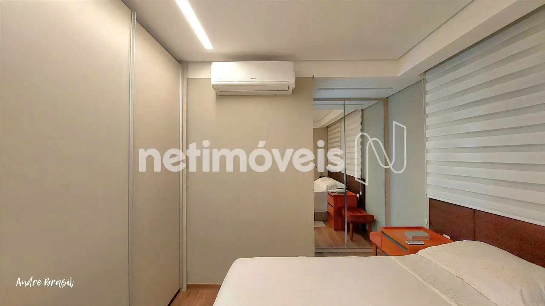 2 quartos, sendo 1 suíte, com piso em vinílico, armários e ar condicionado;