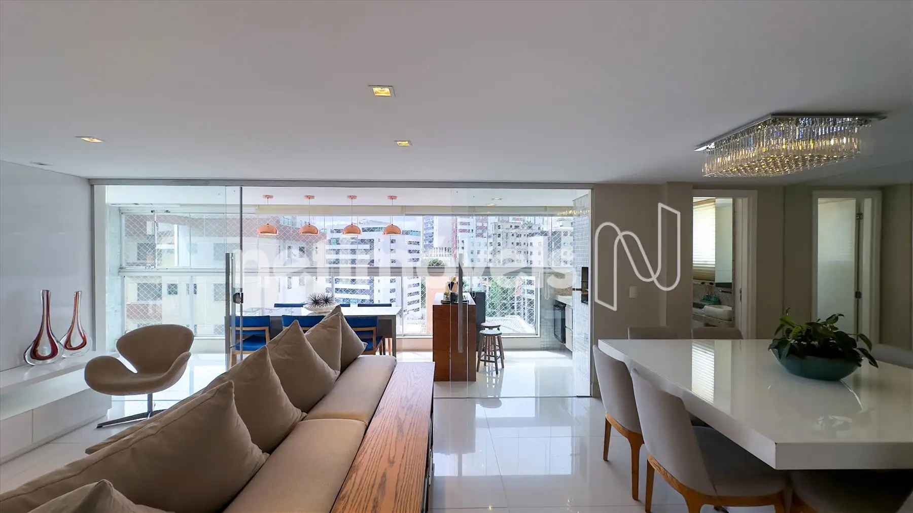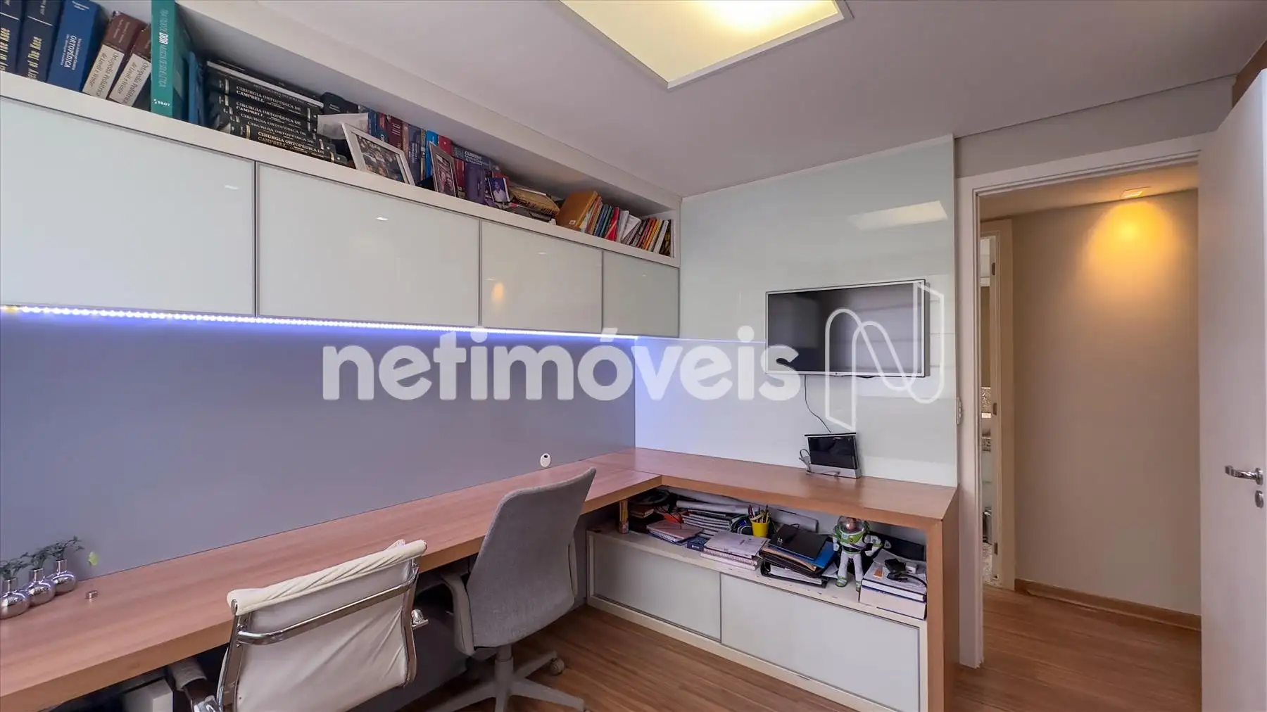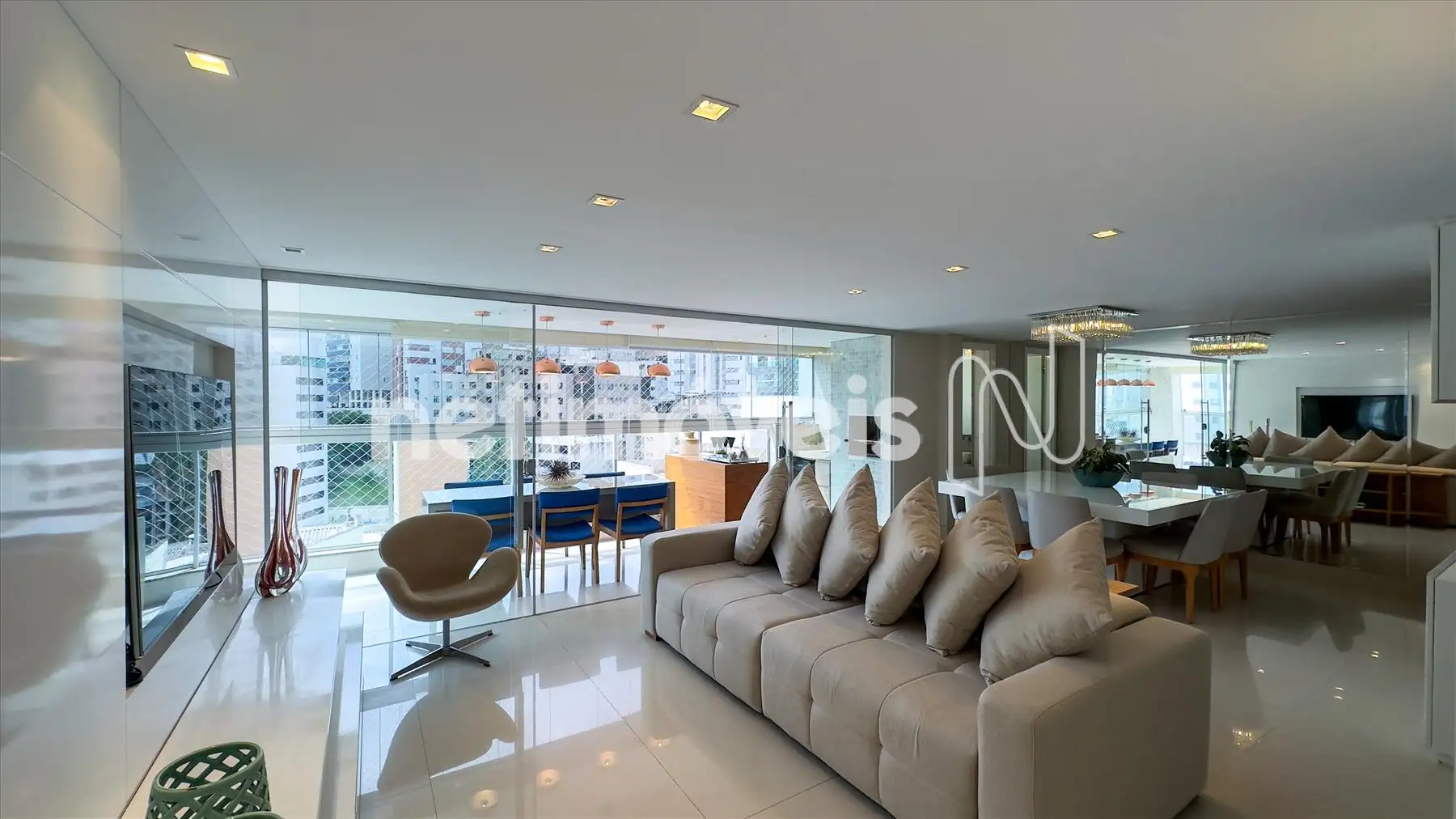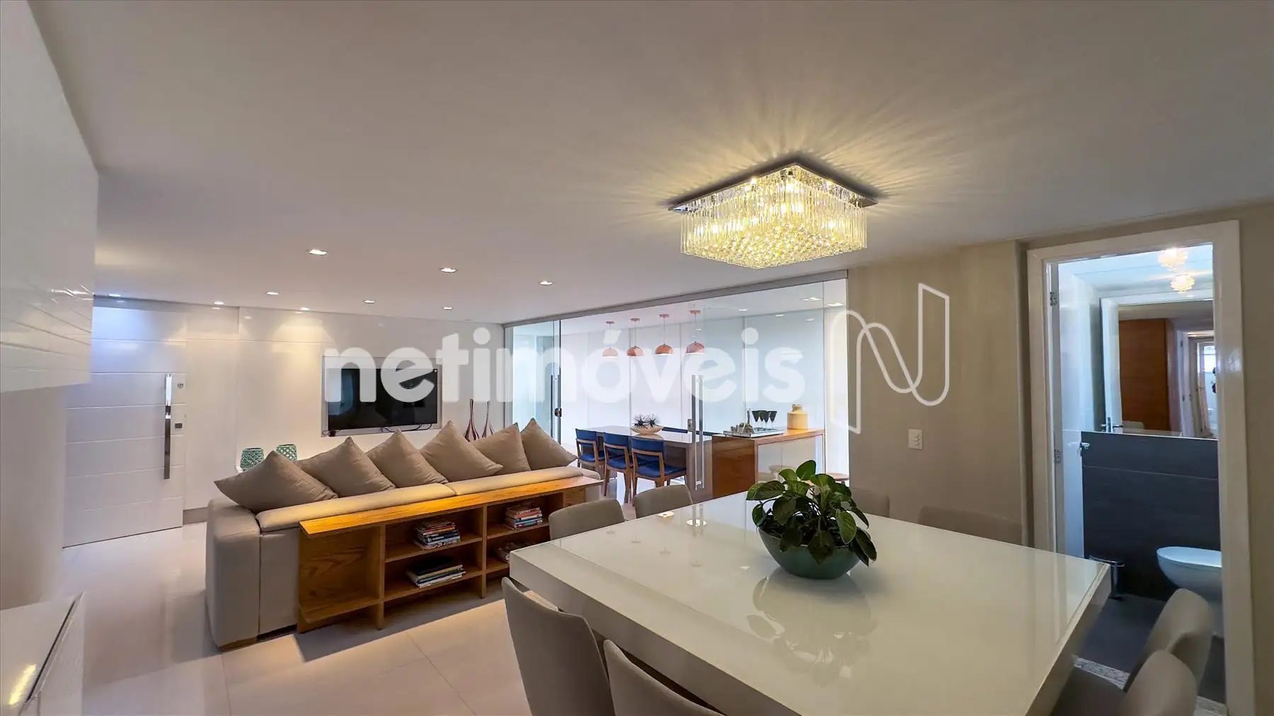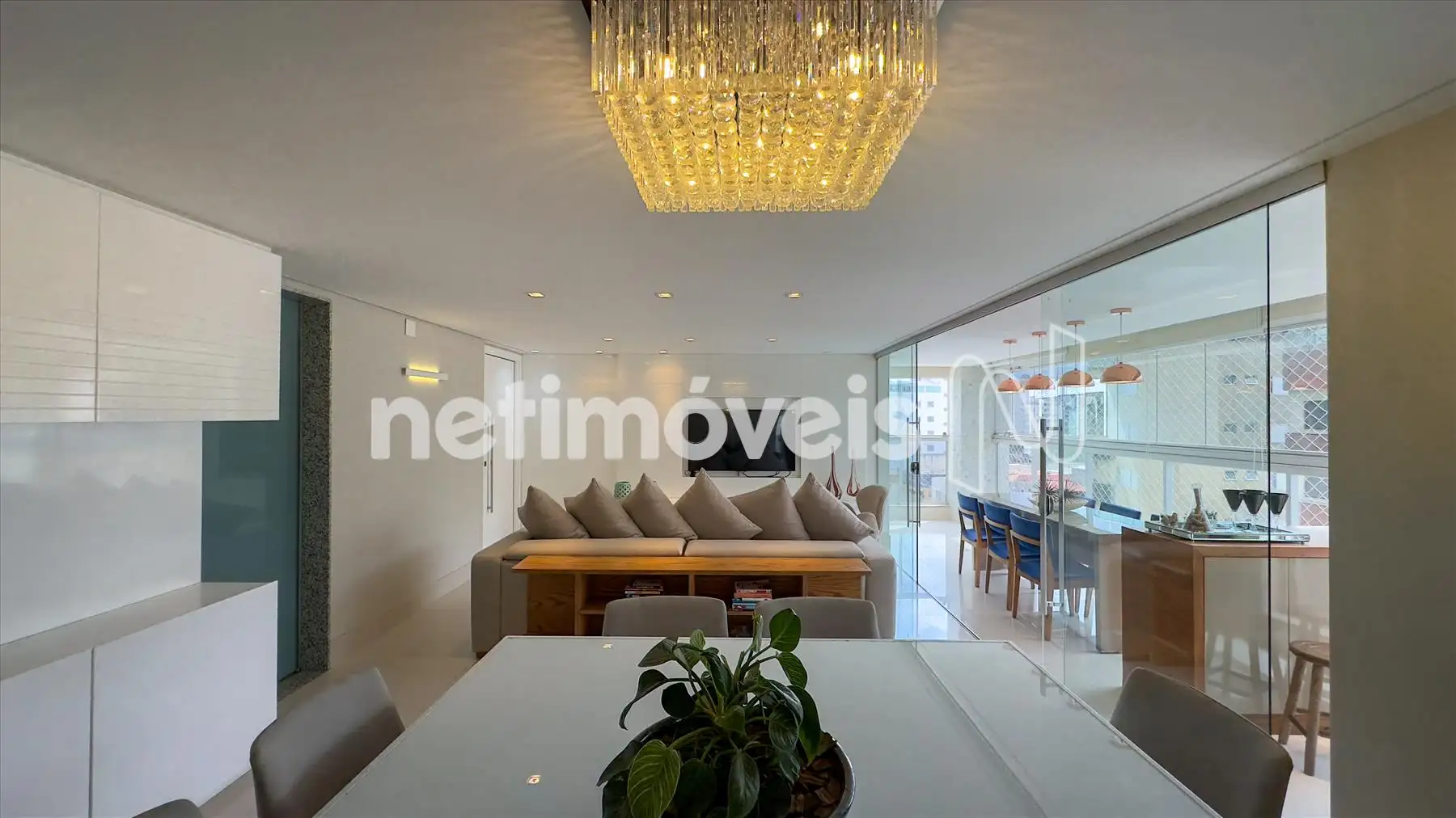 DESCREVA O APARTAMENTO: Pense em um apartamento de revista! Apartamento 1 por andar com hall decorado. Varanda gourmet separada da sala com churrasqueira com saída para a fumaça, espaço para adega. Sala ampla, muito bem decorada para 2 ambientes com painel e cristaleira, tem um projeto de iluminação. Lavabo. São 4 quartos sendo uma suíte espaçosa todos os quartos com armários. Um dos quartos transformado em escritório muito bem montado. Banheiros da suíte e social com box e armários. Cozinha espaçosa com excelentes armários com uma mesa de apoio. Área de serviço montada com DCE.