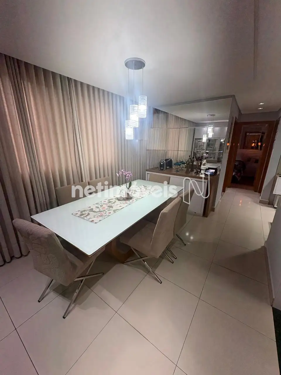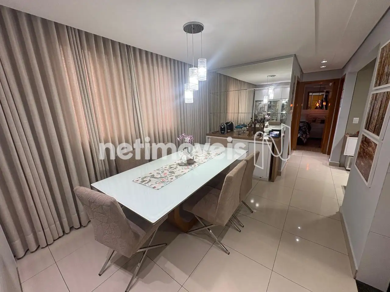 Apartamento de área privativa, montado e decorado, composto por: Sala de estar e jantar, ambas com tetos rebaixados e iluminação planejada, 03 quartos (1 transformado em sala, podendo ser revertido), 02 quartos com armários planejadoss e tetos rebaixados, sendo 01 suíte, banhos social e suíte com armários, box em vidro temperado e espelho.