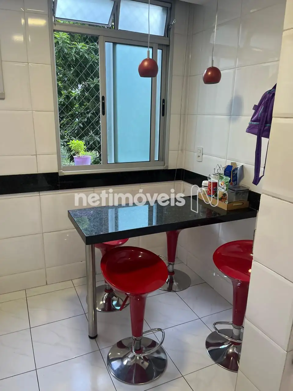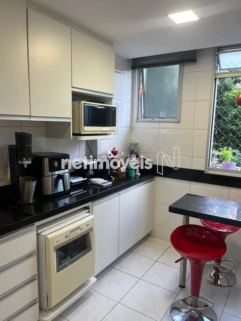 Cozinha: Piso em cerâmica, bancada em granito, armários, fogão de bancada marca Brastemp, forno embutido, mesa para lanche em granito.