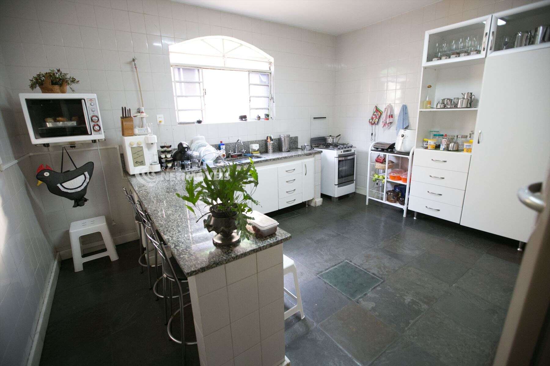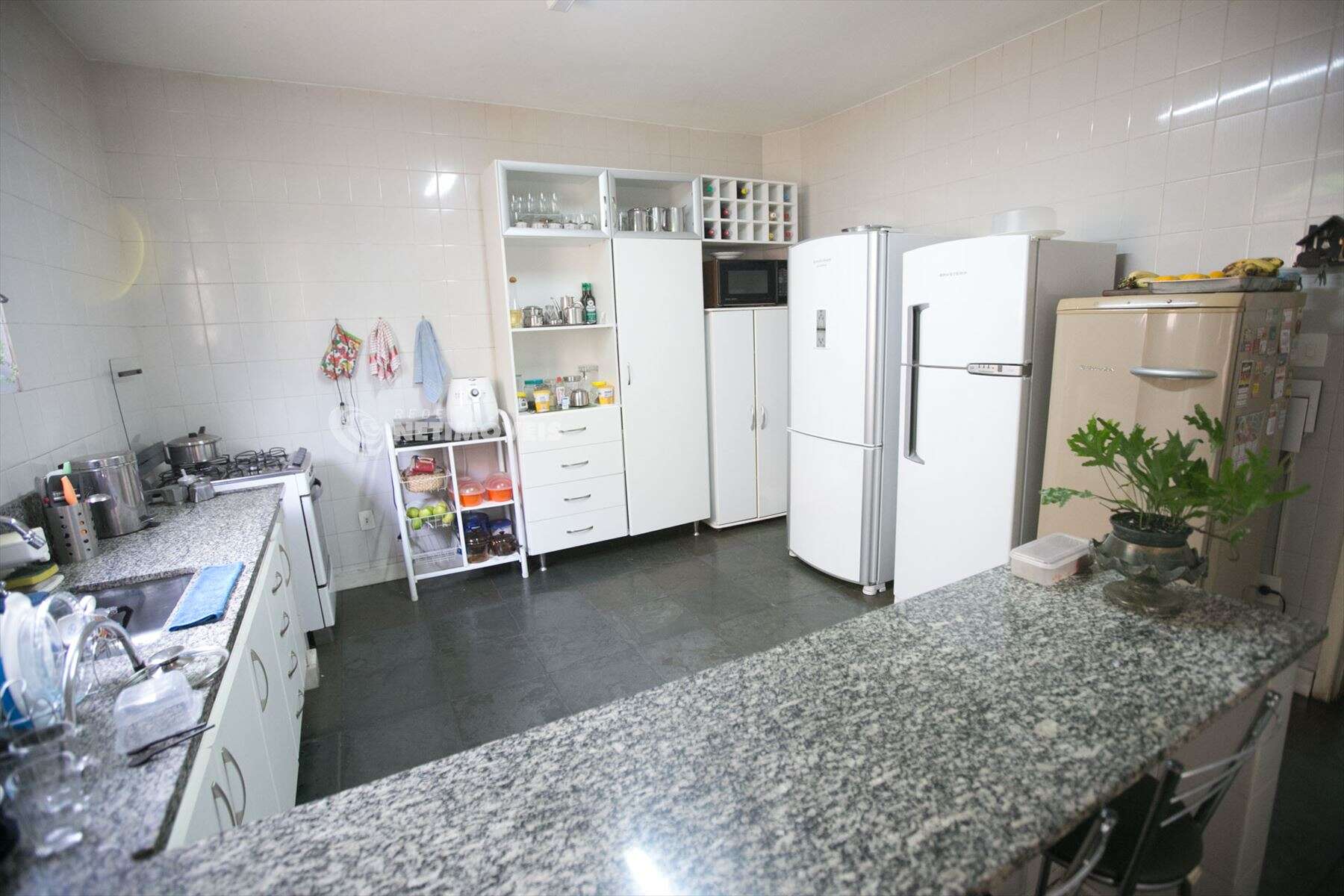 - Cozinha ampla com vários armários, piso em cerâmica.