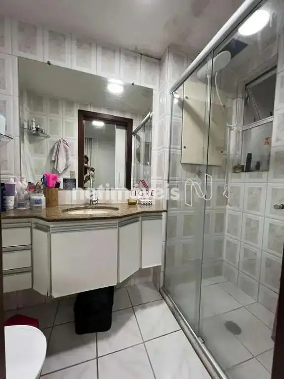 01 Banho social e suíte com piso em porcelanato e com acabamento bancada em granito e box em vidro blindex.