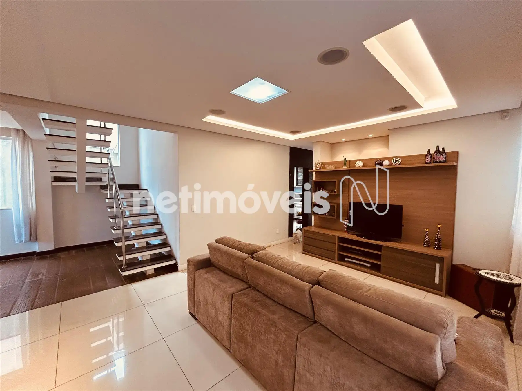 * Sala de estar em porcelanato.