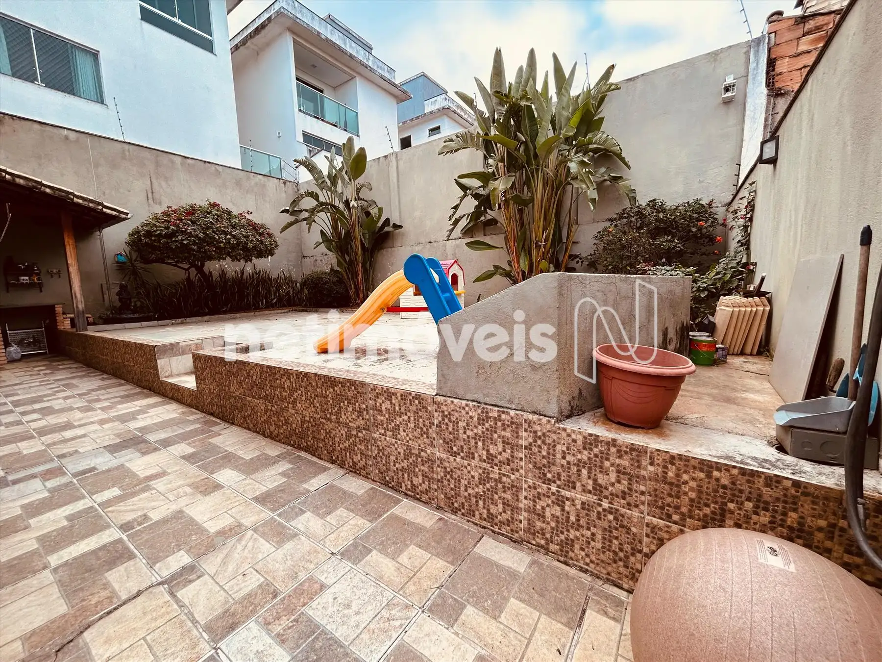 * Espaço gourmet com piso em cerâmica, pia em granito e churrasqueira.