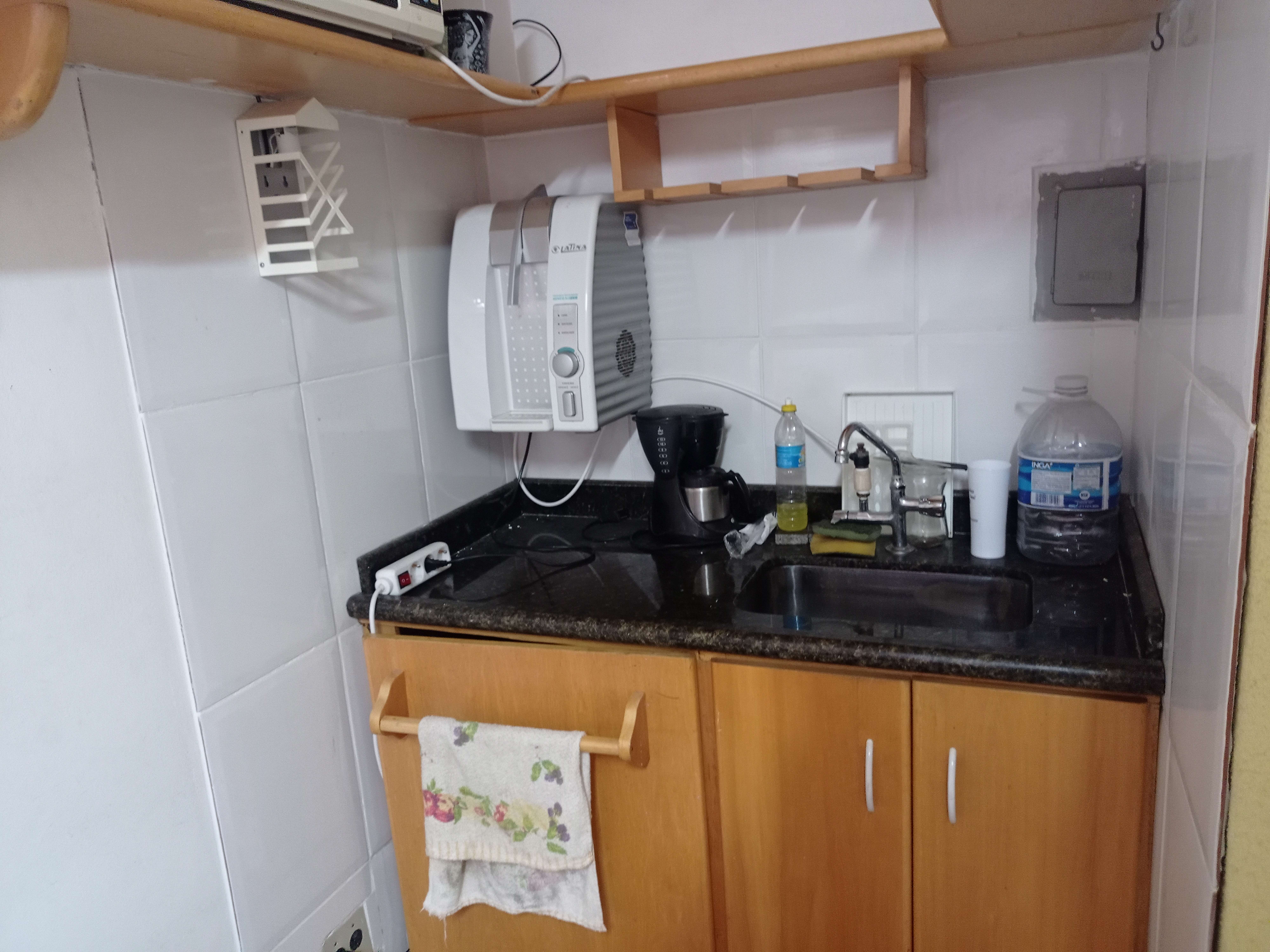- Cozinha interligada à sala, com piso em cerâmica.