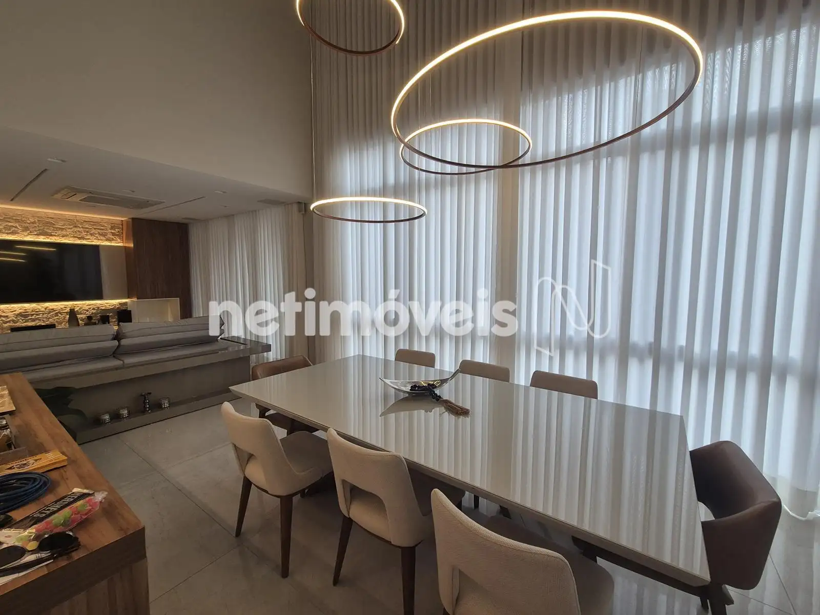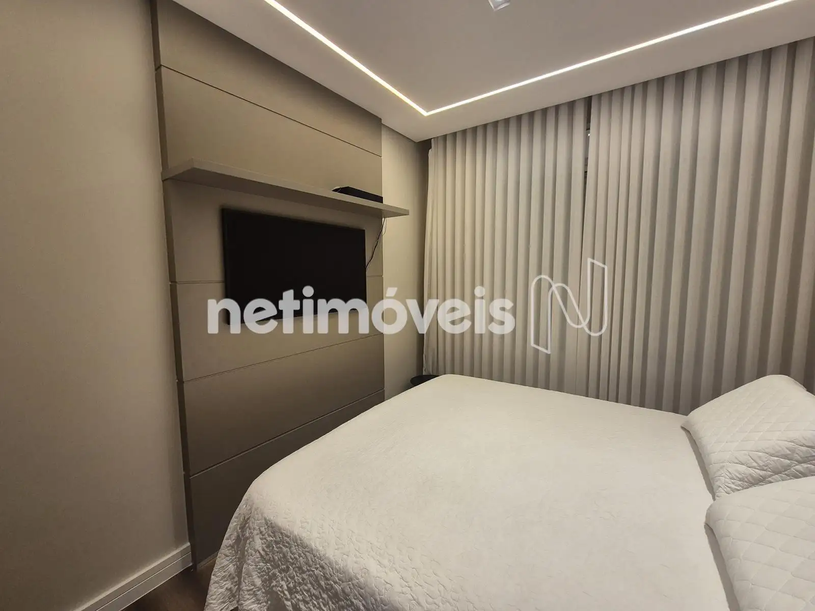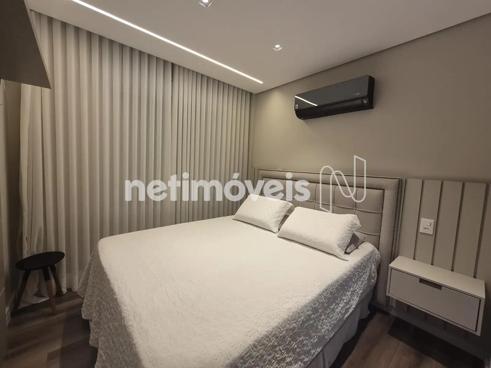 - 04 Quartos com suíte, sendo 01 suíte máster com closet e varanda, piso em Paviflex, venezianas automatizadas, cortinas automatizadas, ar-condicionado, iluminação especial, cortinas, armários,