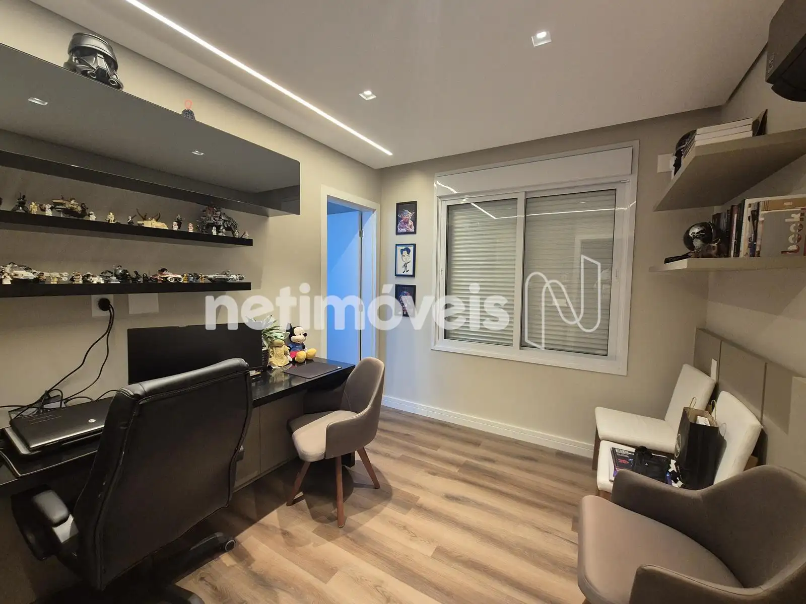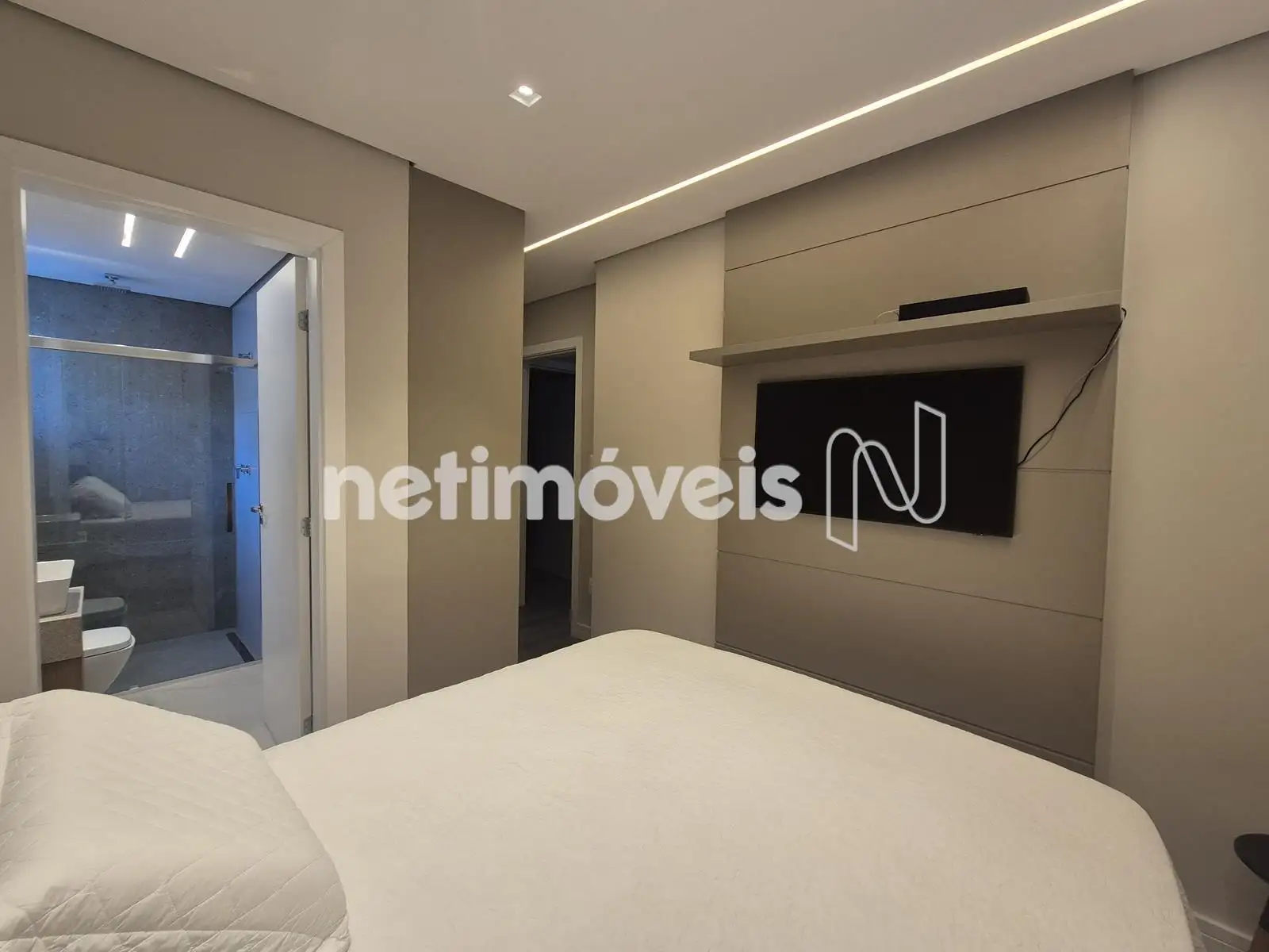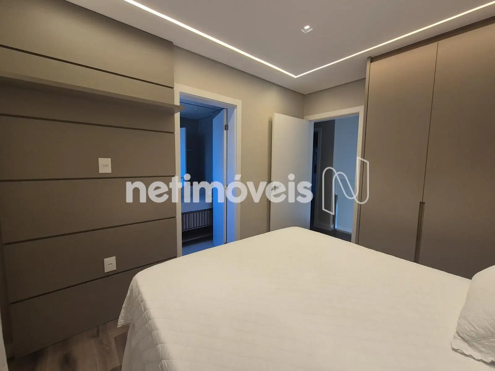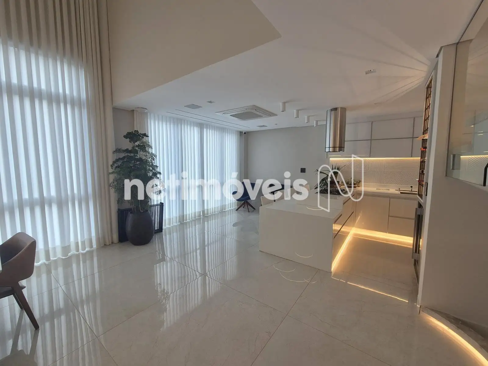 - 04 Quartos com suíte, sendo 01 suíte máster com closet e varanda, piso em Paviflex, venezianas automatizadas, cortinas automatizadas, ar-condicionado, iluminação especial, cortinas, armários,