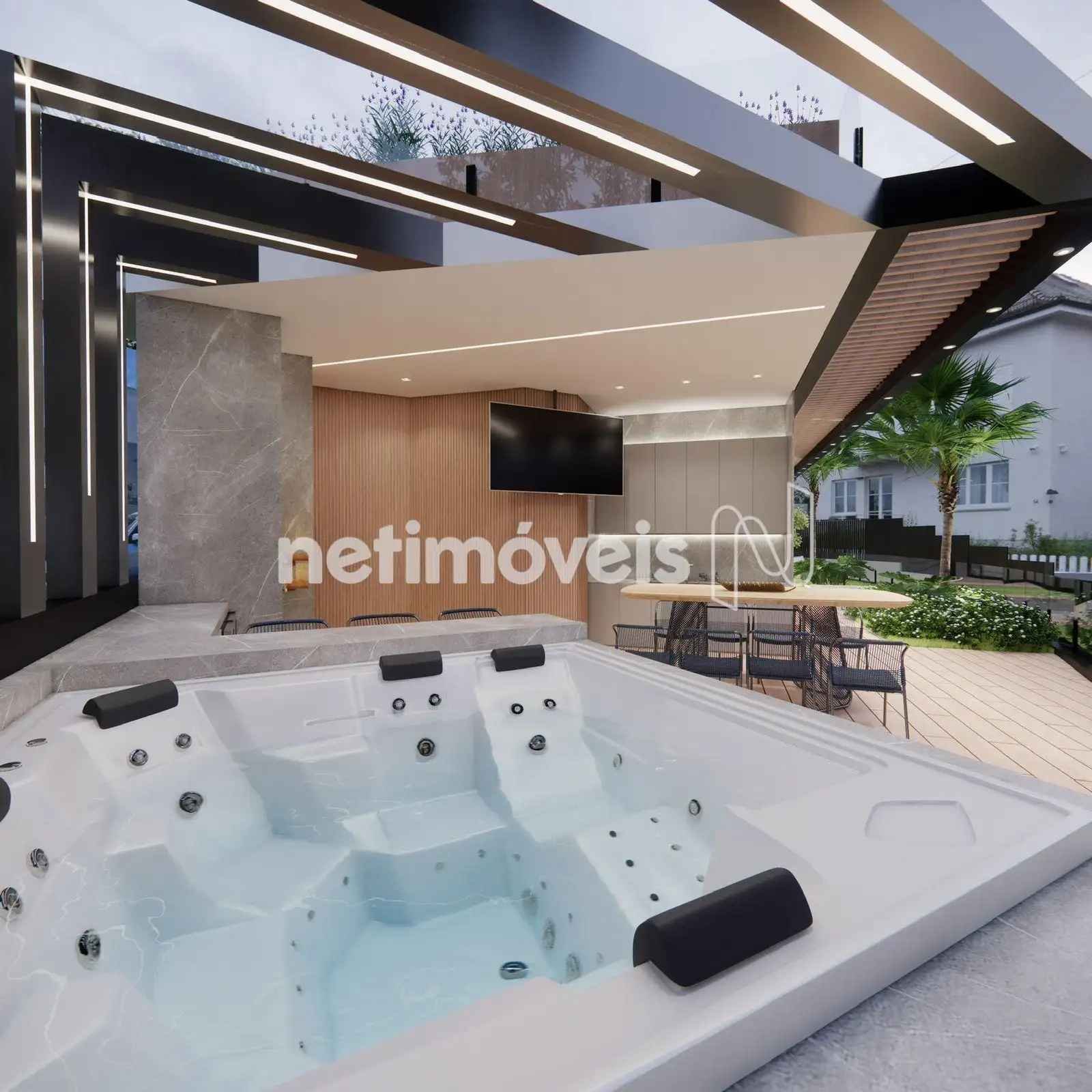 - Área Externa de +- 137m² com projeto de área gourmet, jardins, churrasqueira, jacuzzi, fireplace, adega, tudo para ficar pronto muito em breve