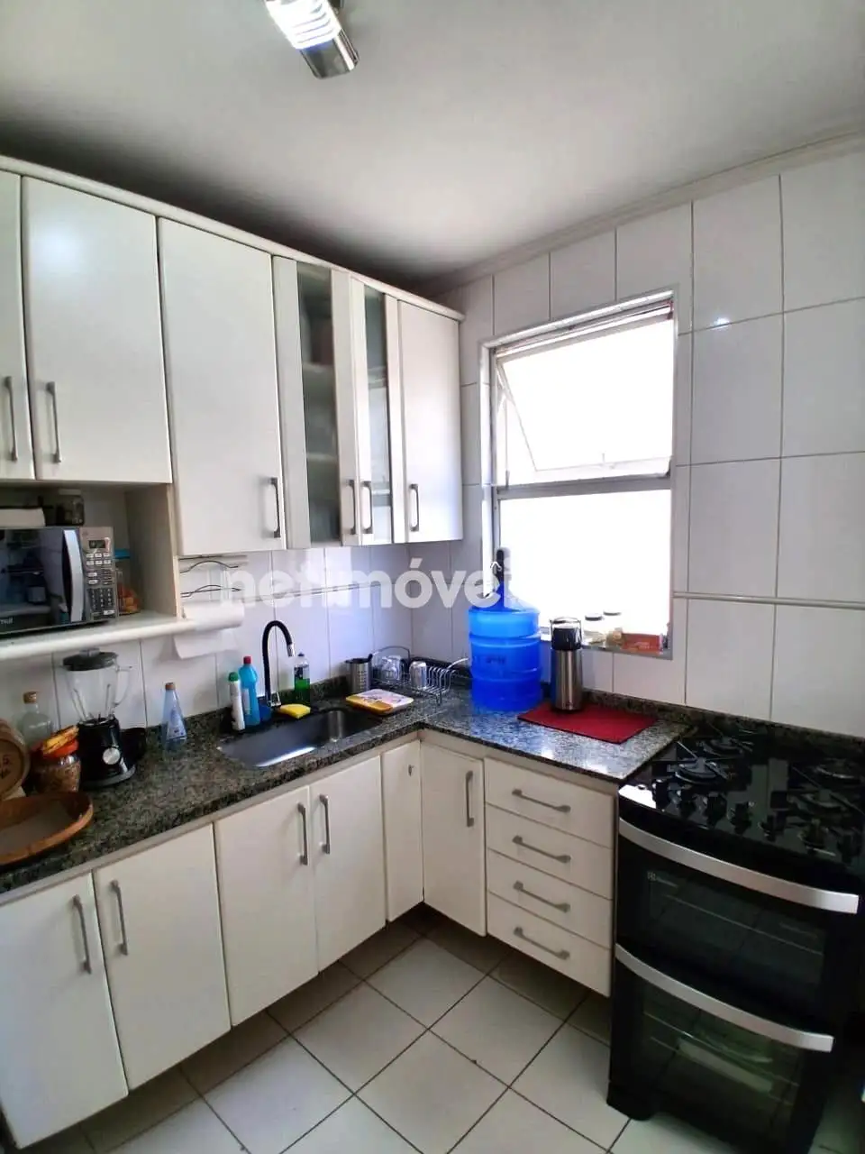 Cozinha com bancadas em granito e rica em armários.