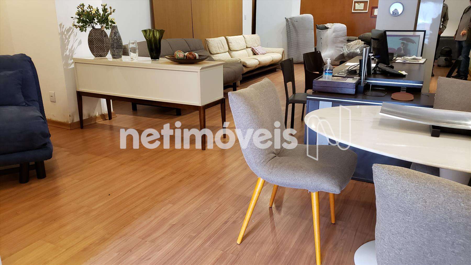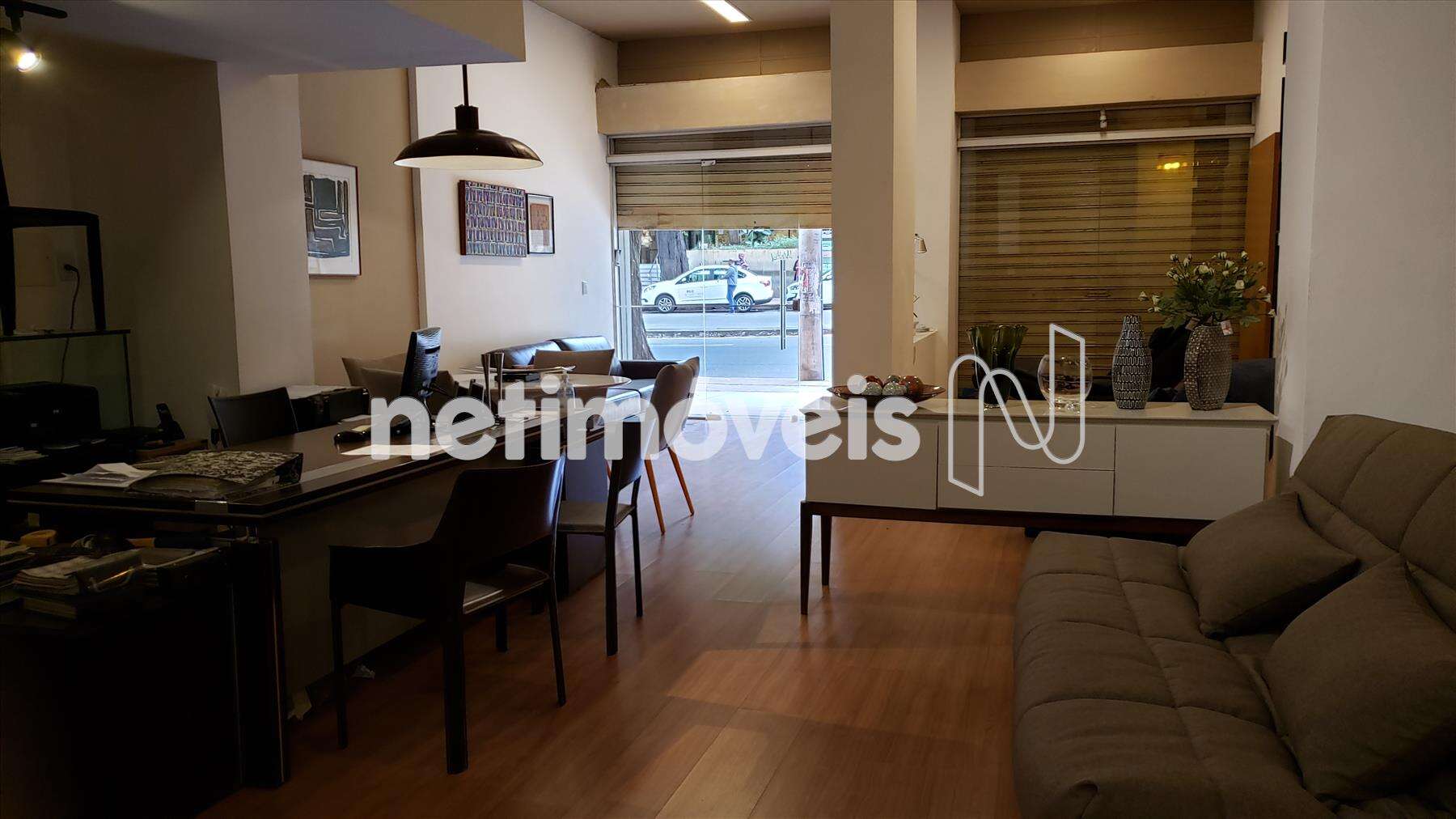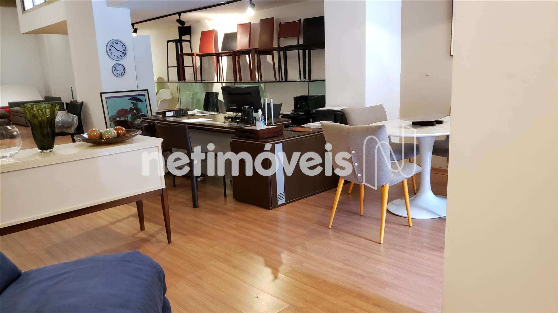 Piso da loja todo em laminado semi novo, iluminação planejada.
