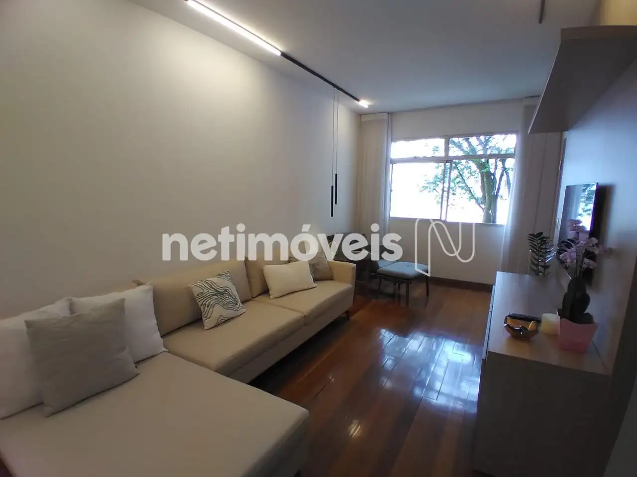 - . Sala de estar e jantar separadas piso tábua corrida, com projeto luminotécnico.