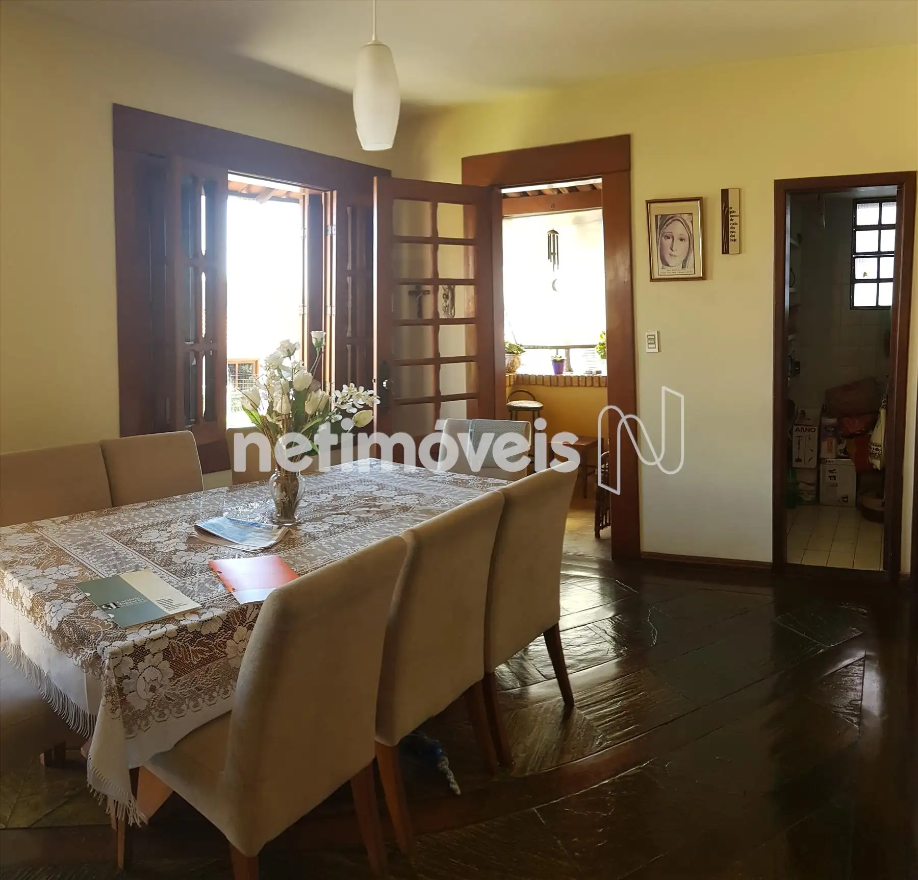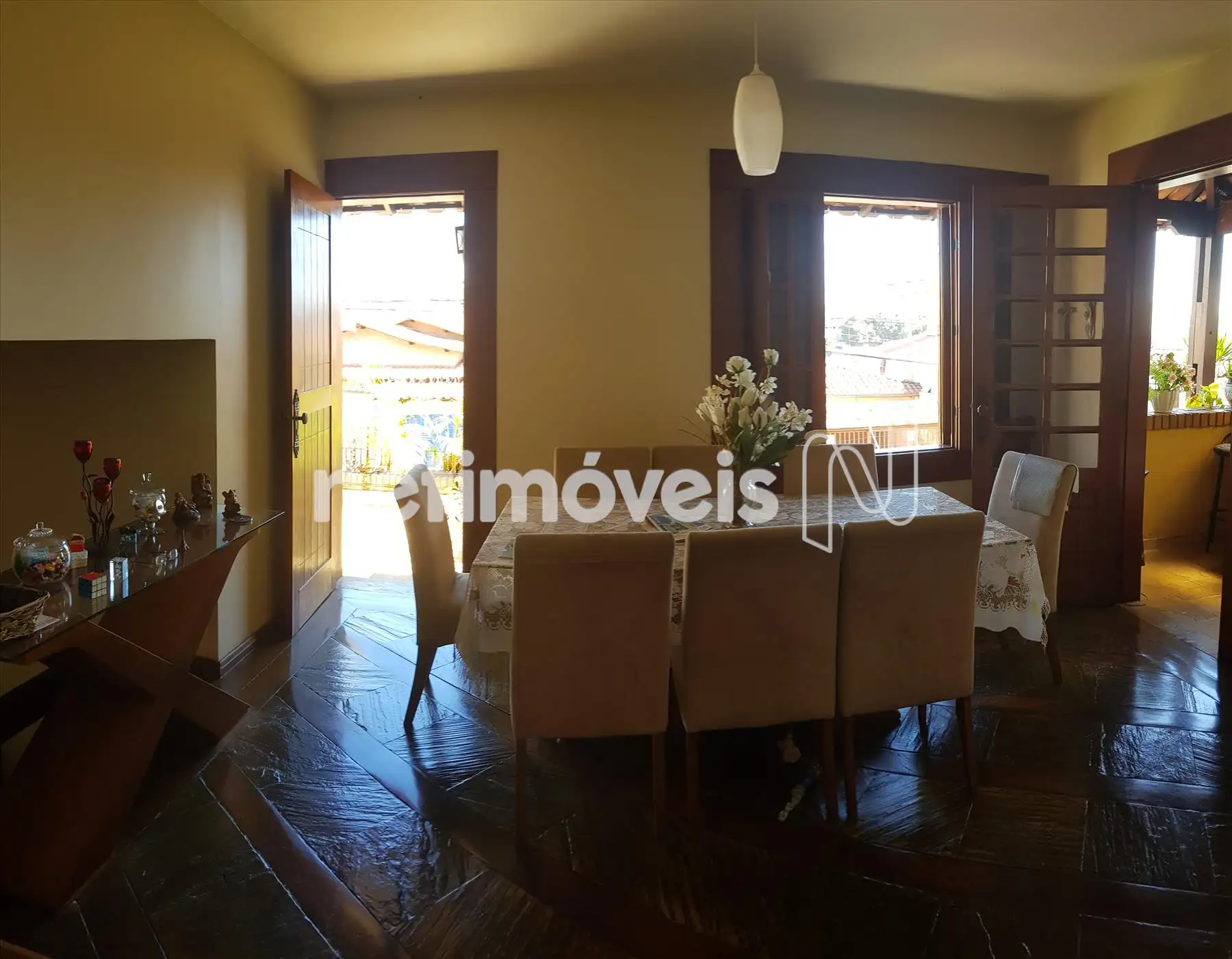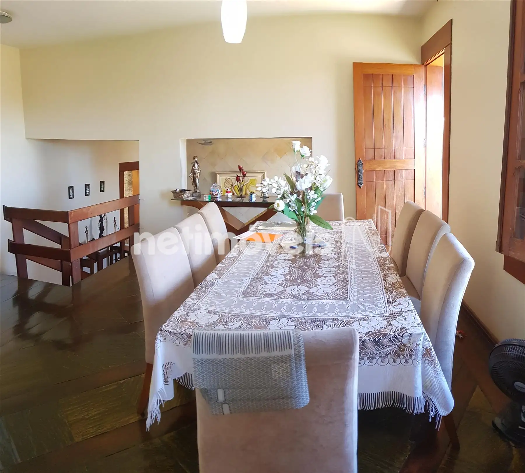 Excelente Casa, rústica, em excelente estado de conservação. Rua plana próximo á todo tipo de comércio, local de fácil acesso em ponto privilegiado do bairro. Sistema de segurança EMIVE com 2 câmeras ligadas. CASA Terreo: sala para 2 ambientes e lavabo com piso em pedra São Tomé. 1° piso: sala de TV com piso em madeira e pedra São Tomé. 2° piso: sala ampla, varanda aberta com área de 20 metros e 1 varanda fechada e coberta com vista definitiva. 4 quartos amplos com bons armários sendo o piso em tábua corrida. Suíte com hidromassagem, piso em cerâmica, box blindex e armários sob e pia. Banho social com piso em cerâmica, box blindex e armário sob a pia. • Aquecedor solar nos banheiros e cozinha. Cozinha ampla com piso e bancada em granito e DCE. Fundo com quintal, área de 60 metros, canil, churrasqueira toda coberta, quarto de despejo, ducha e ávores frutíferas.