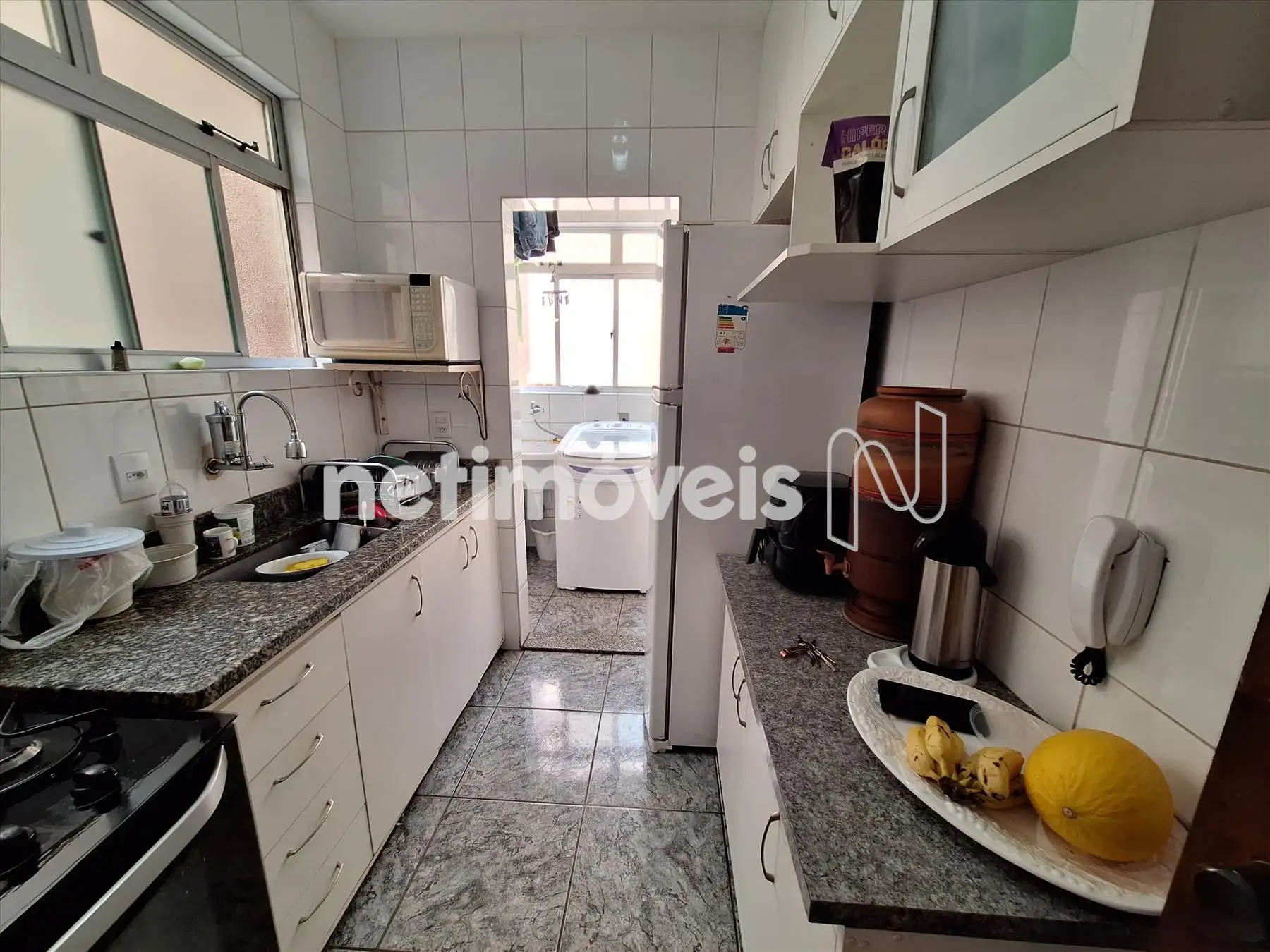 Cozinha com armários, área de serviço separada com banho de empregada transformado em despensa, mas de fácil reversão se for o caso.