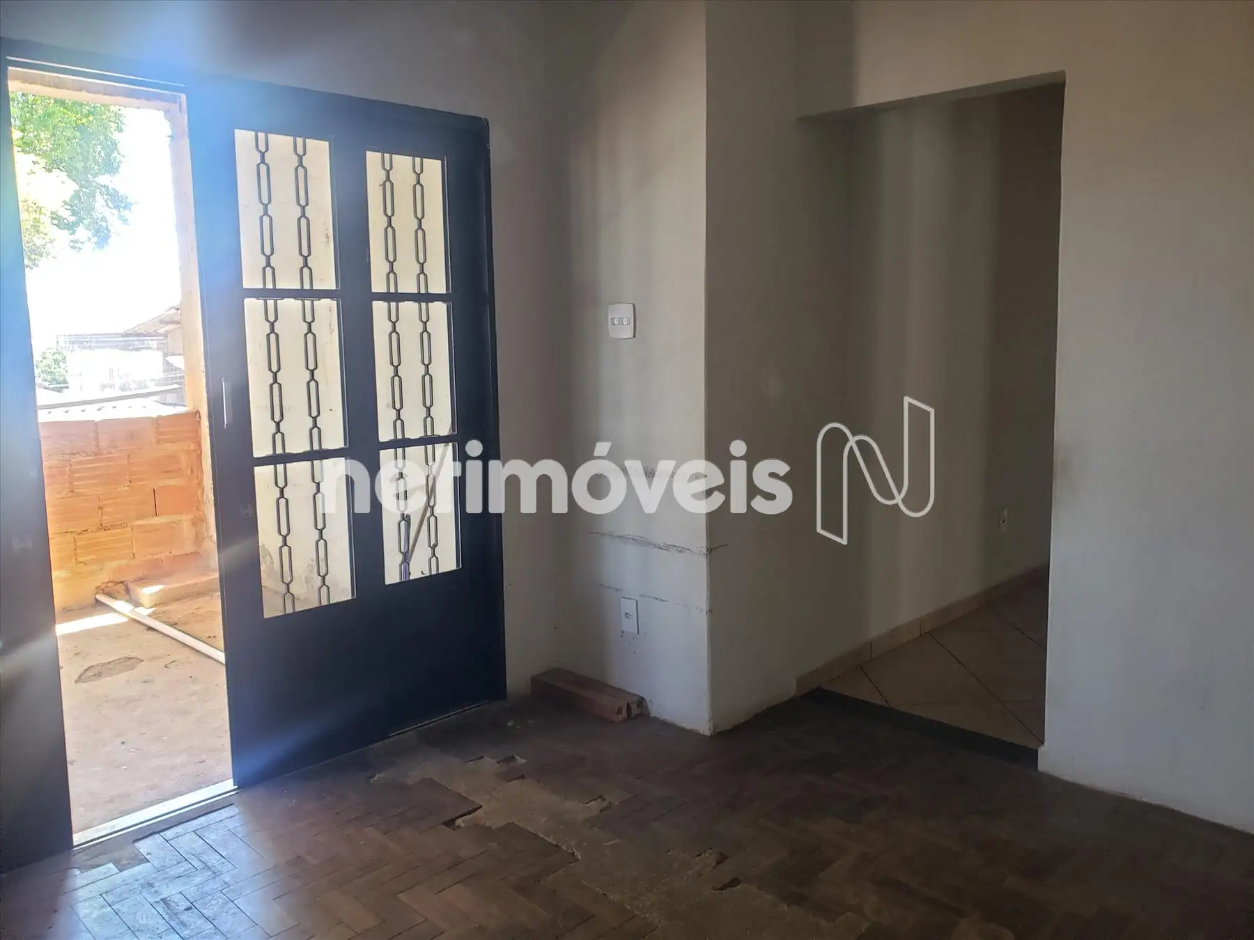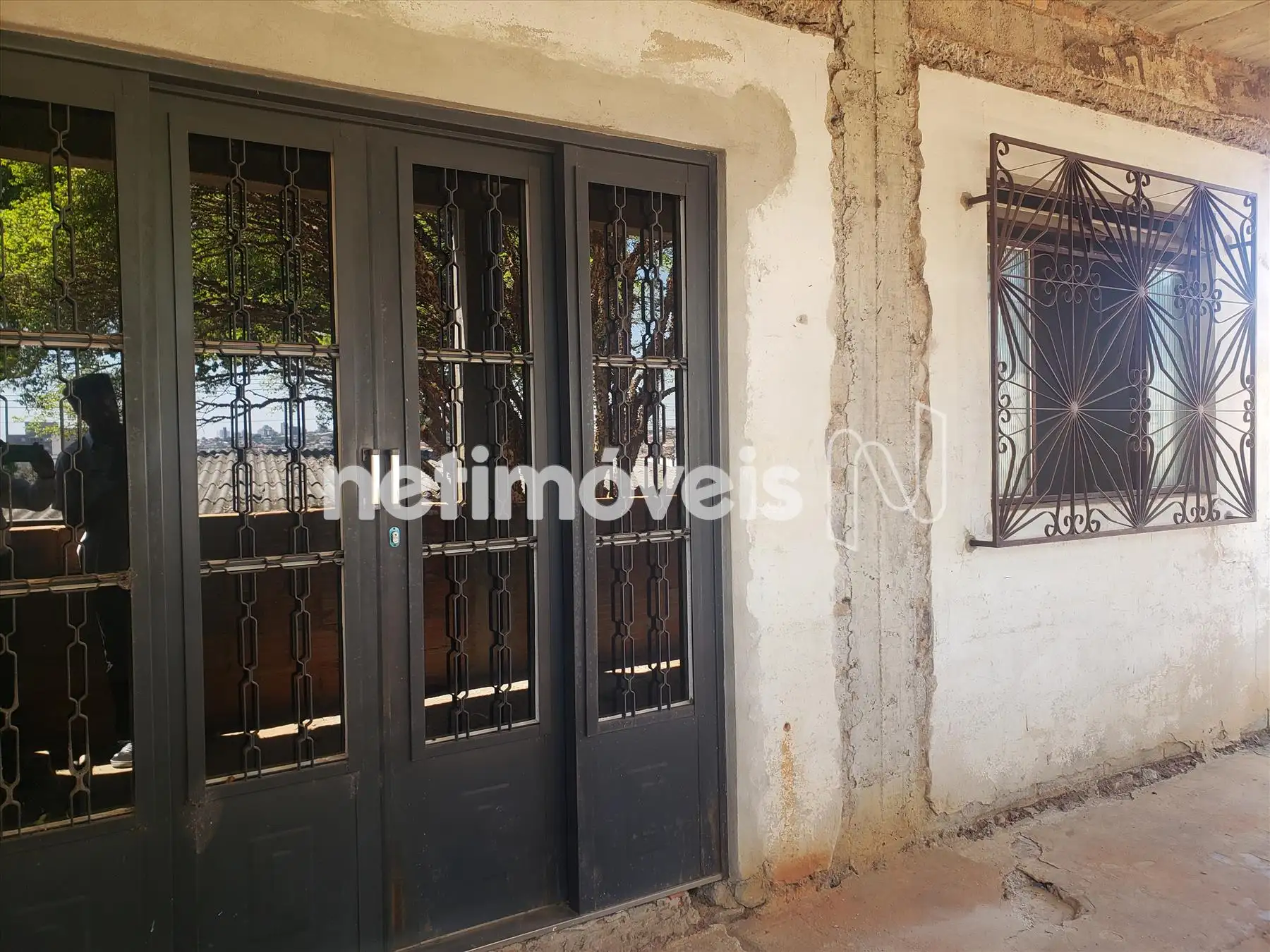 - Sala com piso em cerâmica, porta e janela com esquadria tipo sasazaki com grade;