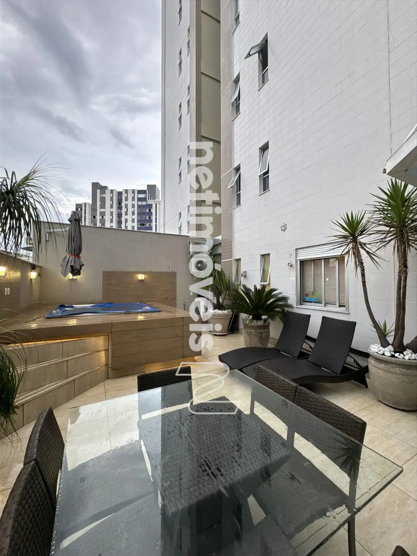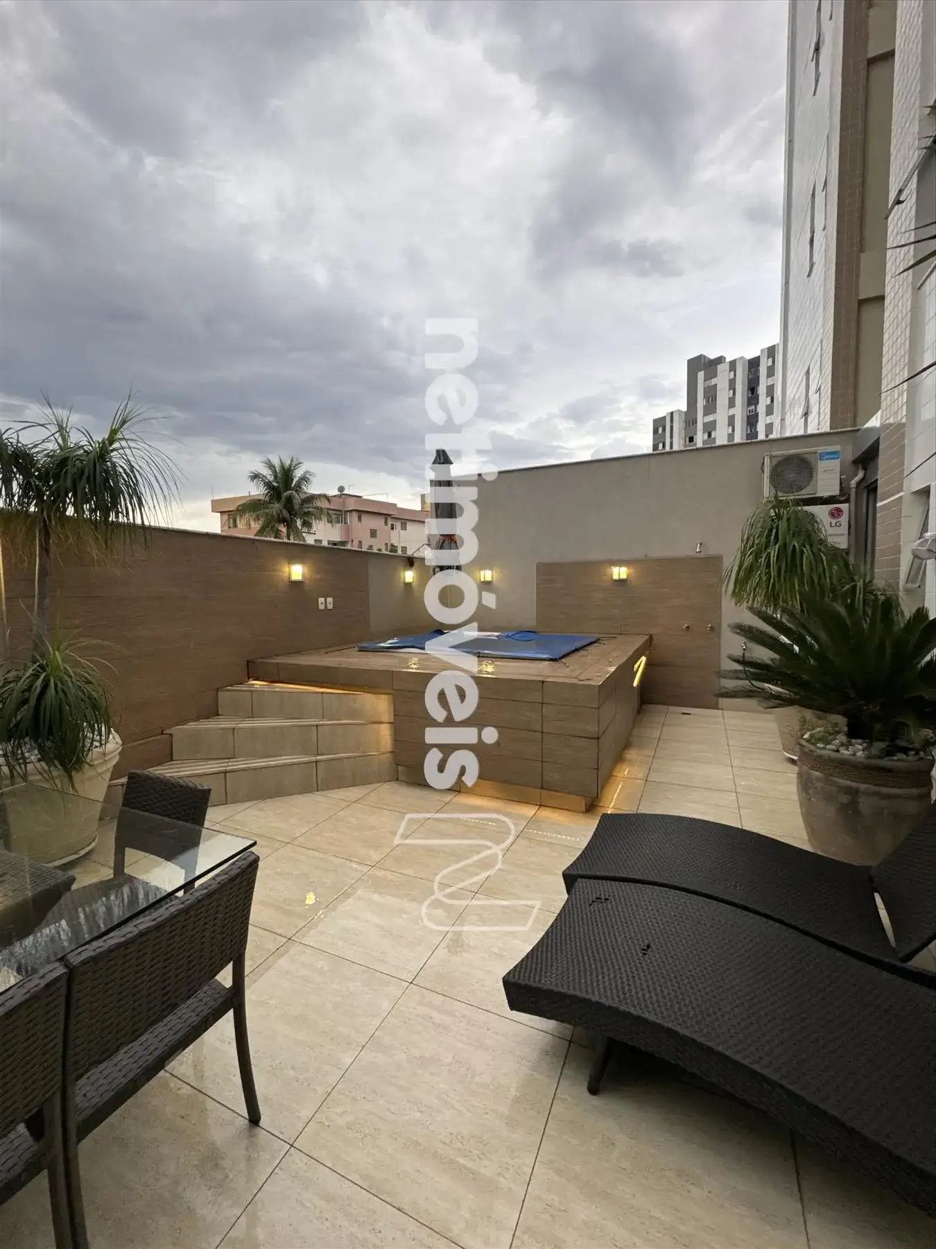 * Área privativa externa decorada: Possui cozinha gourmet com churrasqueira. SPA com aquecimento elétrico. Sol da manhã e a tarde.