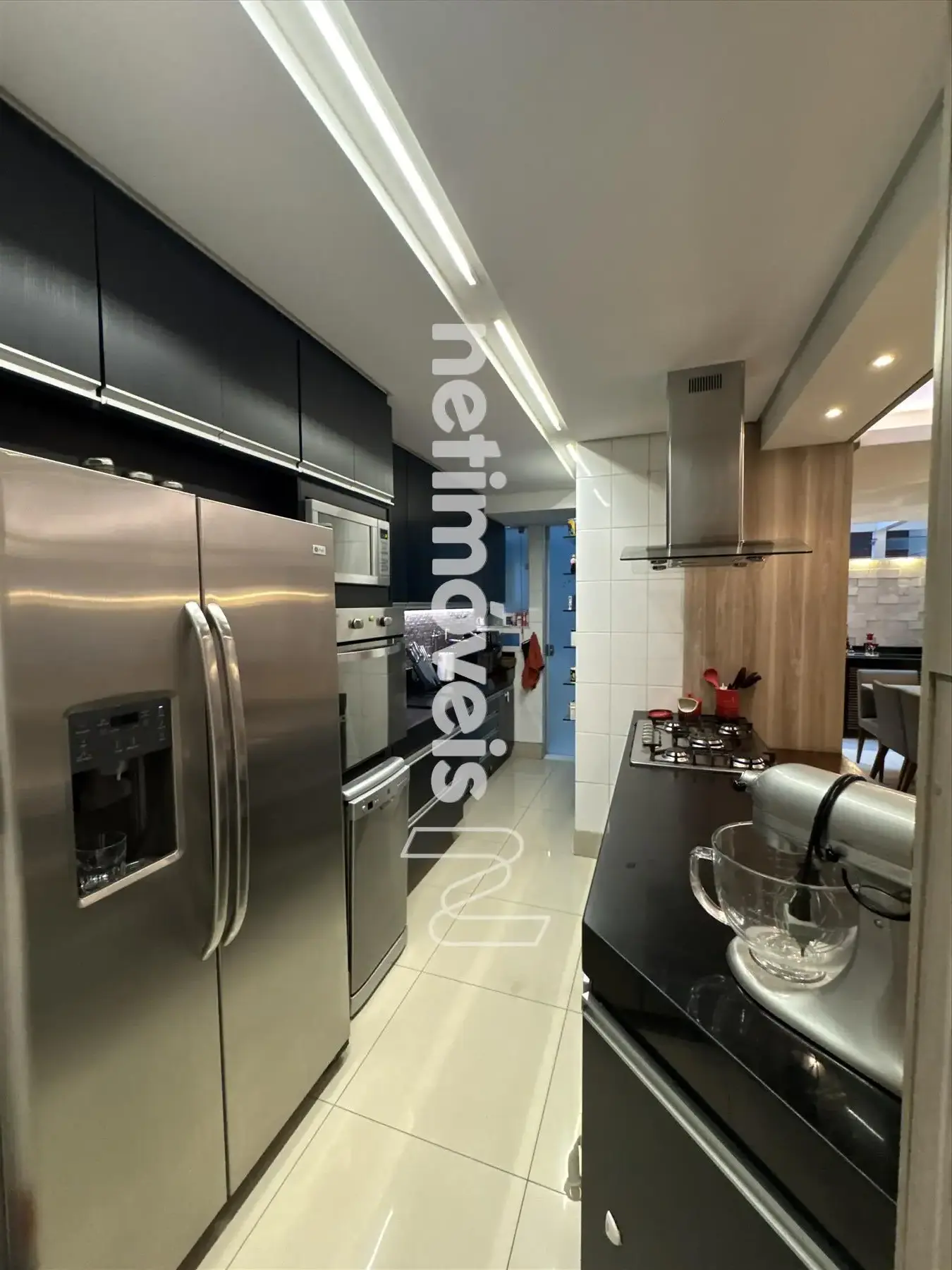 * Cozinha ampla americana iluminação com armários planejados ;