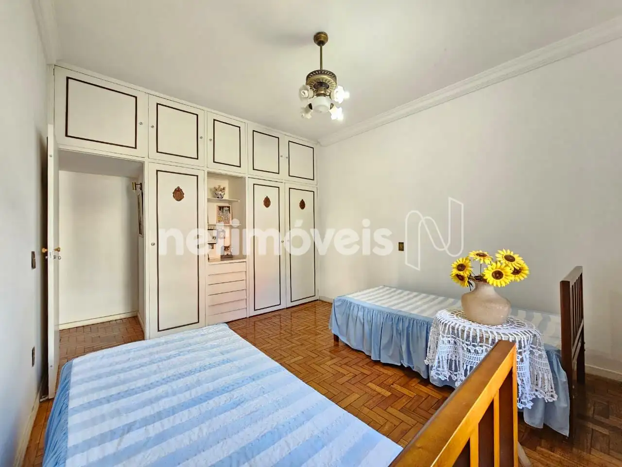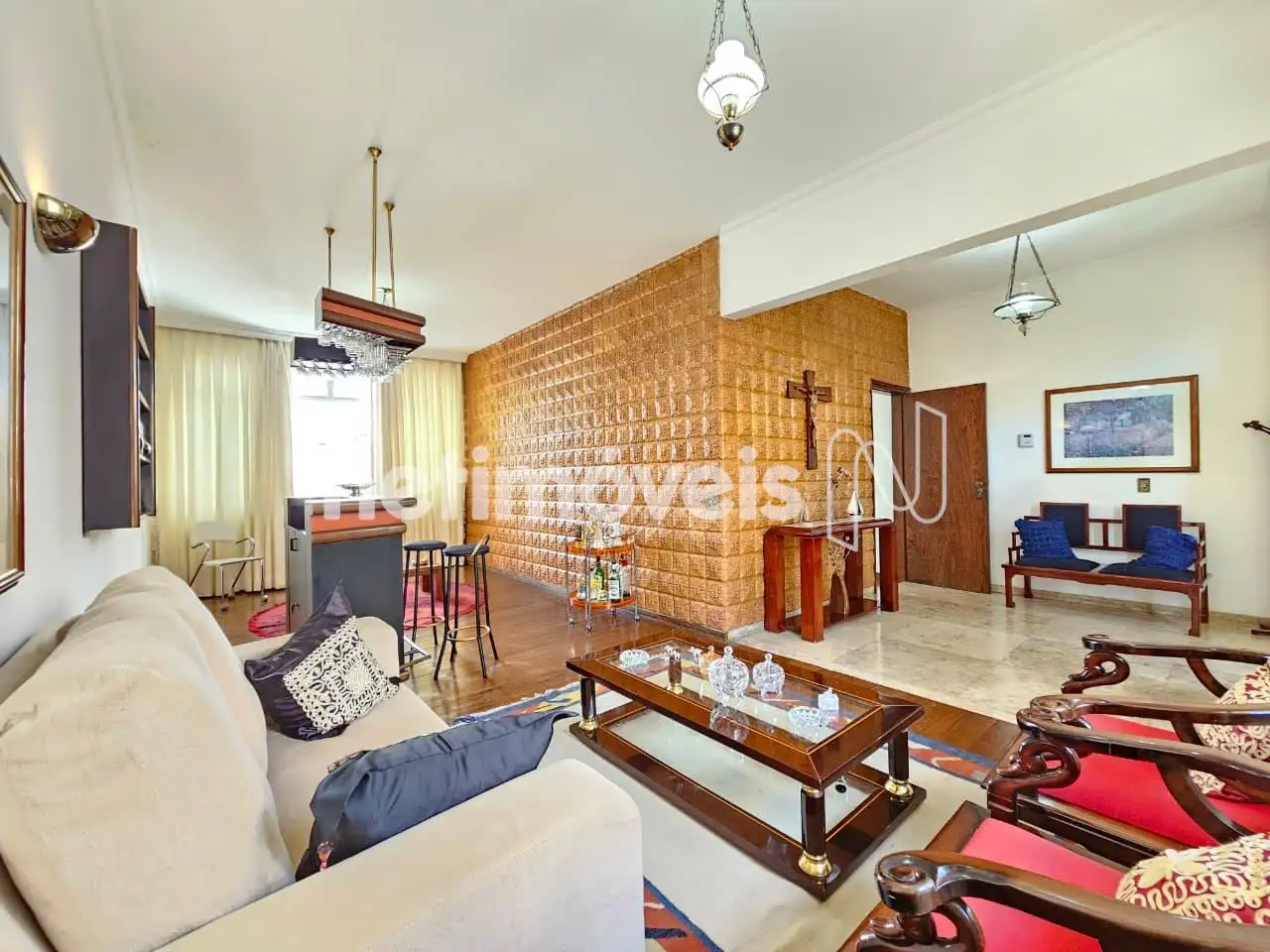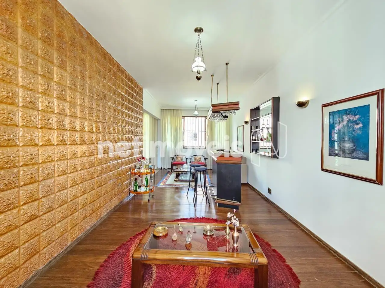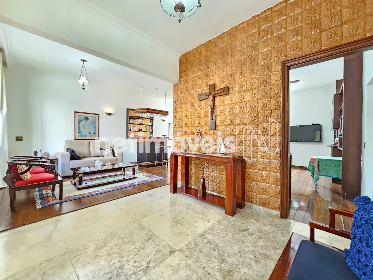 Pisos: Laminado de madeira, mármore e madeira.