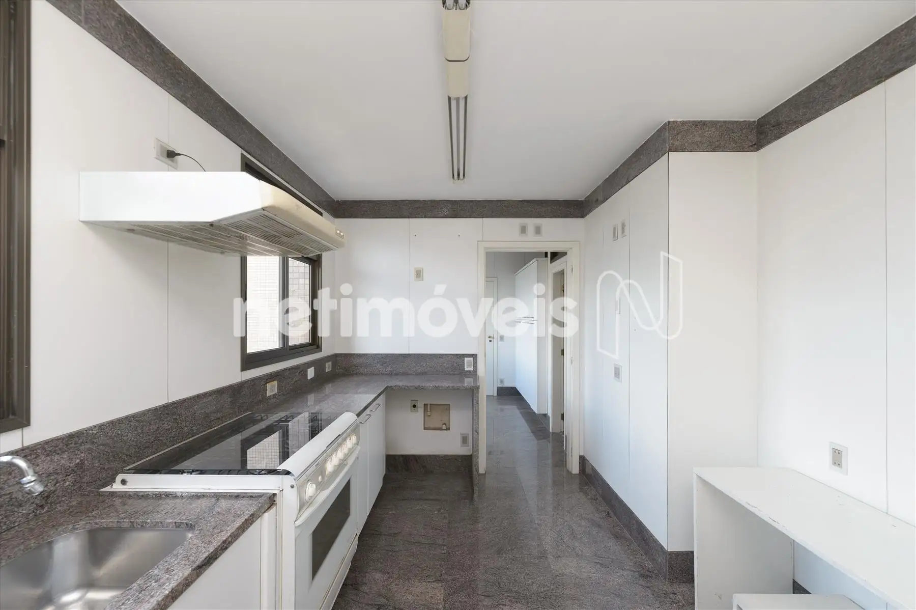 A cozinha, espaçosa e funcional, possui piso em granito e é equipada com armários planejados sob e sobre as bancadas, oferecendo excelente capacidade de armazenamento. Área de serviço independente, dependência completa de empregada (DCE) e circulação prática completam o andar.