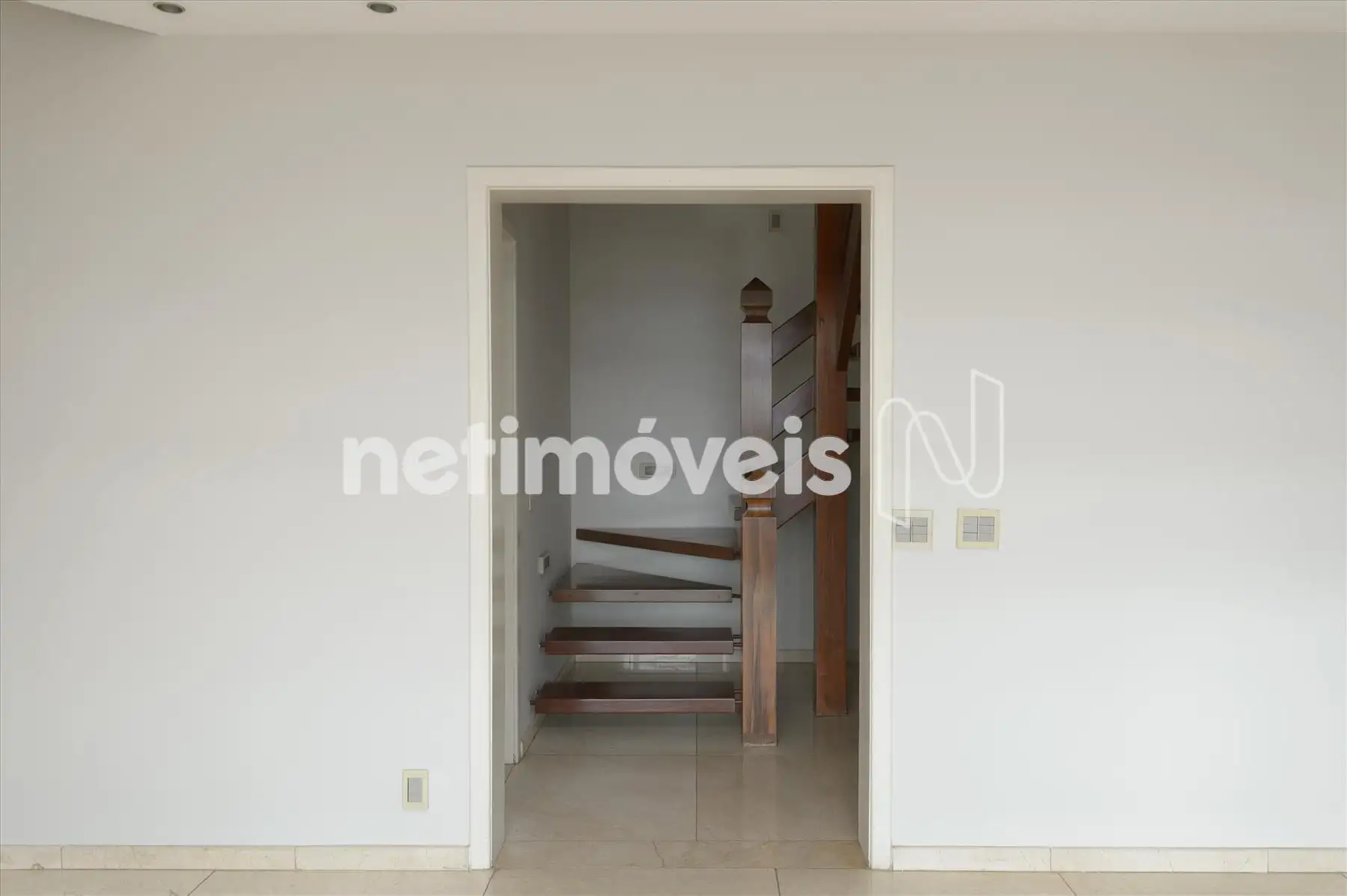 No segundo piso, há uma sala ampla com estante e piso em granito, além de um quarto com armário planejado e um banheiro social próximo. Conta também com uma suíte adicional, com armários e piso em tábua corrida; o banheiro mantém o acabamento em granito nas bancadas e piso.