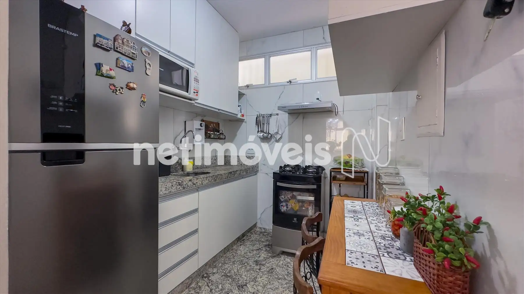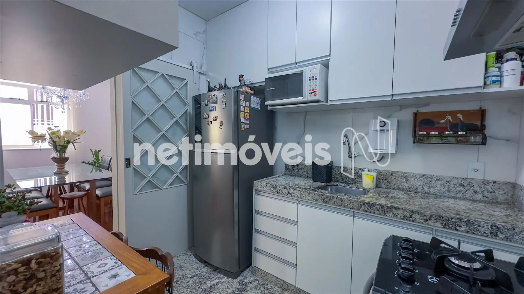 - Cozinha linda e reformada com armários novos, piso em porcelanato, bancada em granito, área de serviço separada da cozinha, clara e toda reformada.