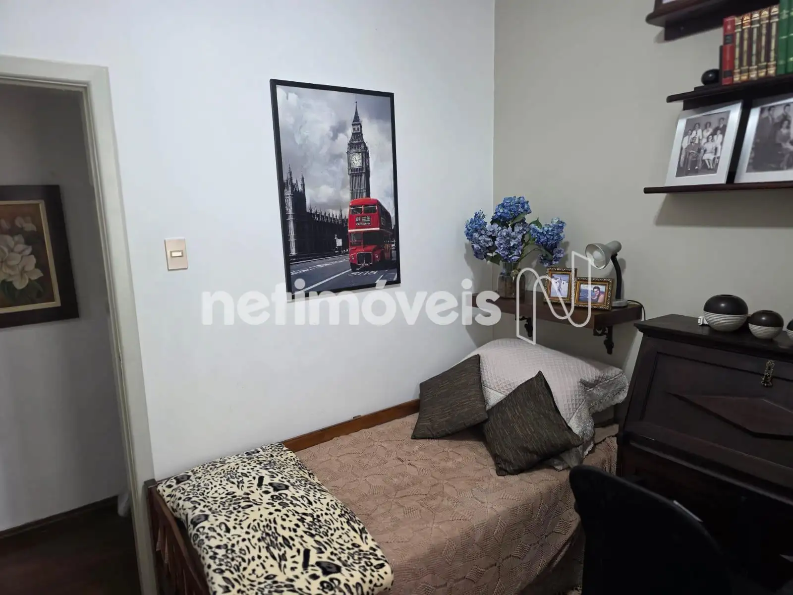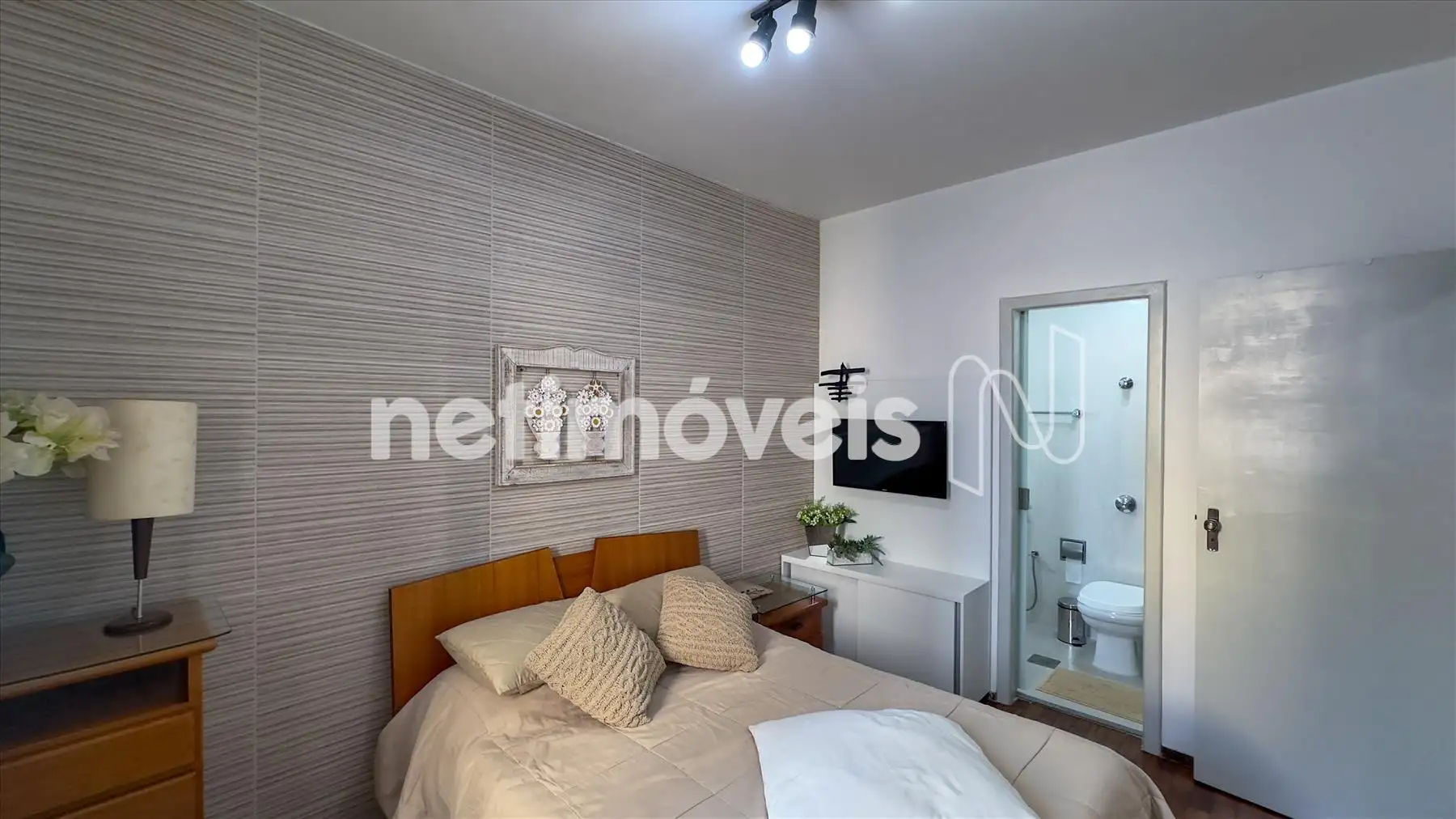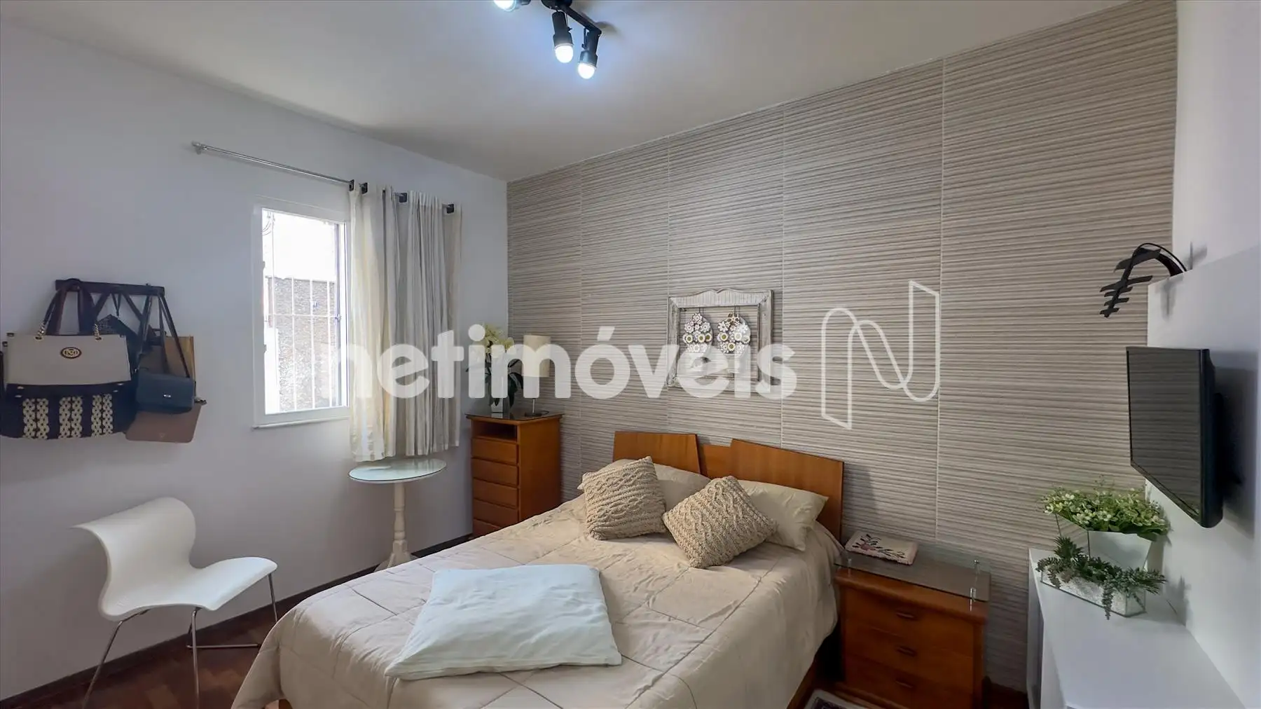 - 3 quartos amplos, sendo uma suíte com parede revestida, banheiro da suíte decorada, armários novos e piso em tacos envernizados em ótimo estado.