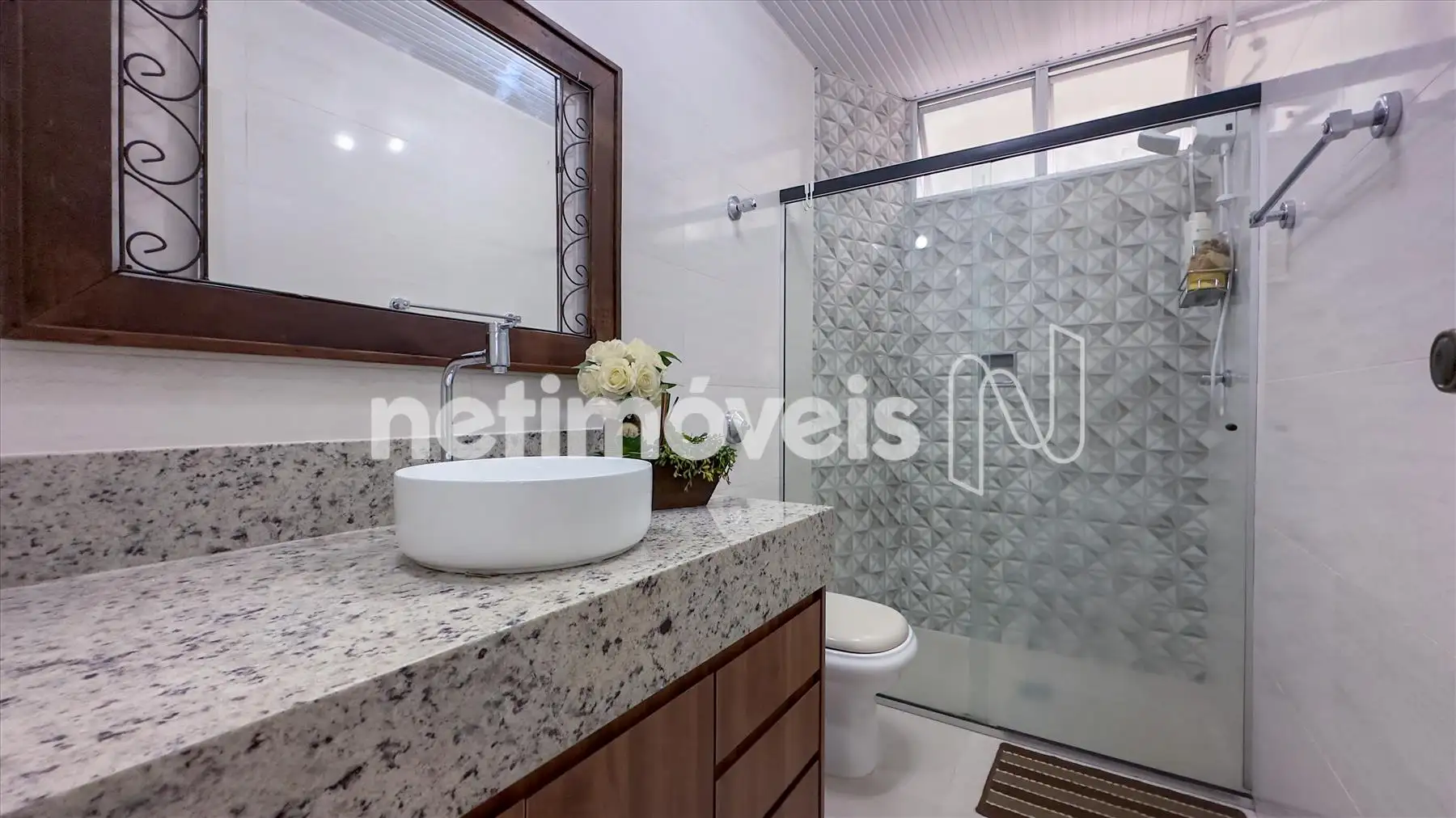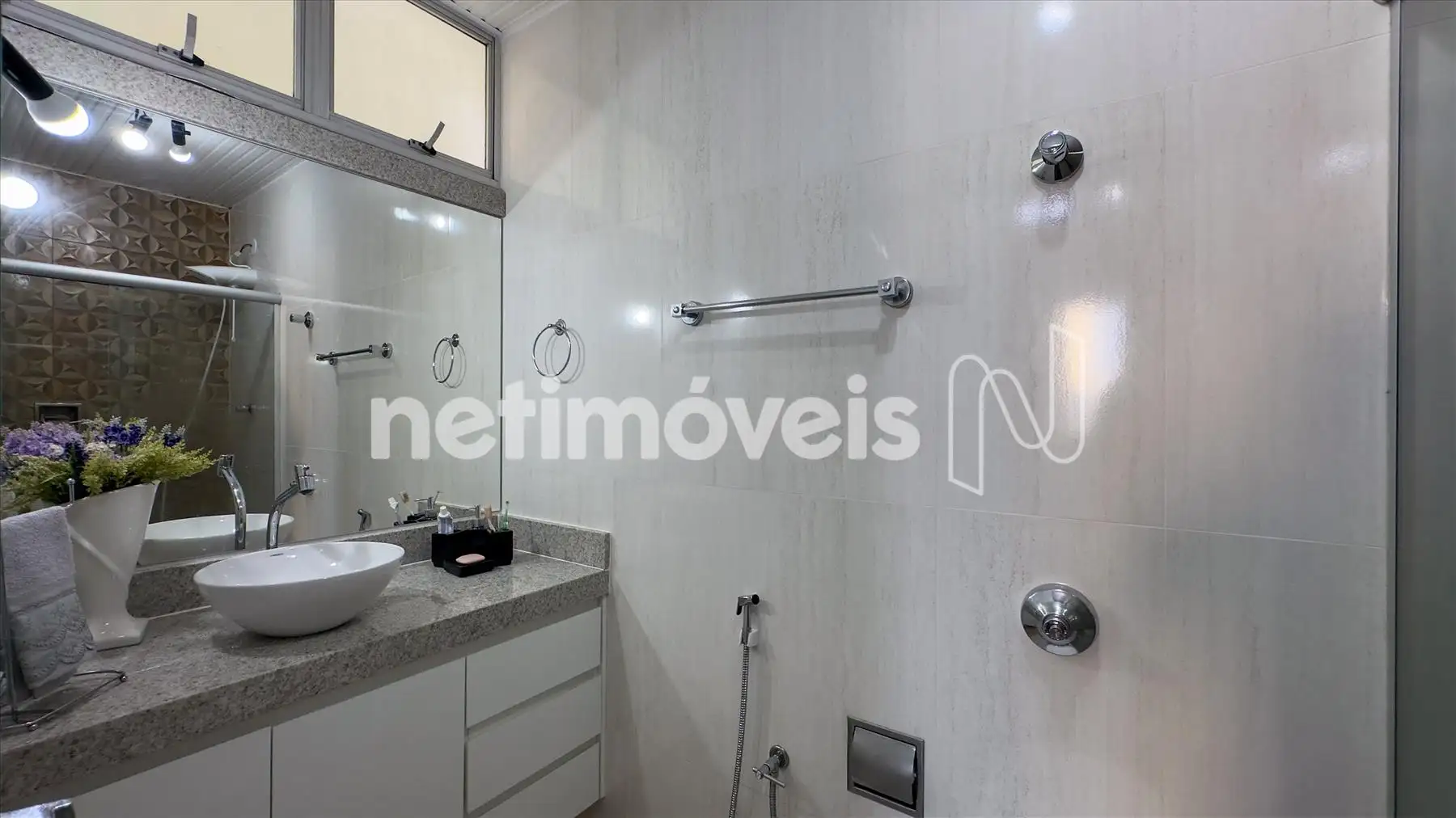 - Banheiros finamente decorados, com box em blindex, cuba suspensa, piso porcelanato e bancada em granito