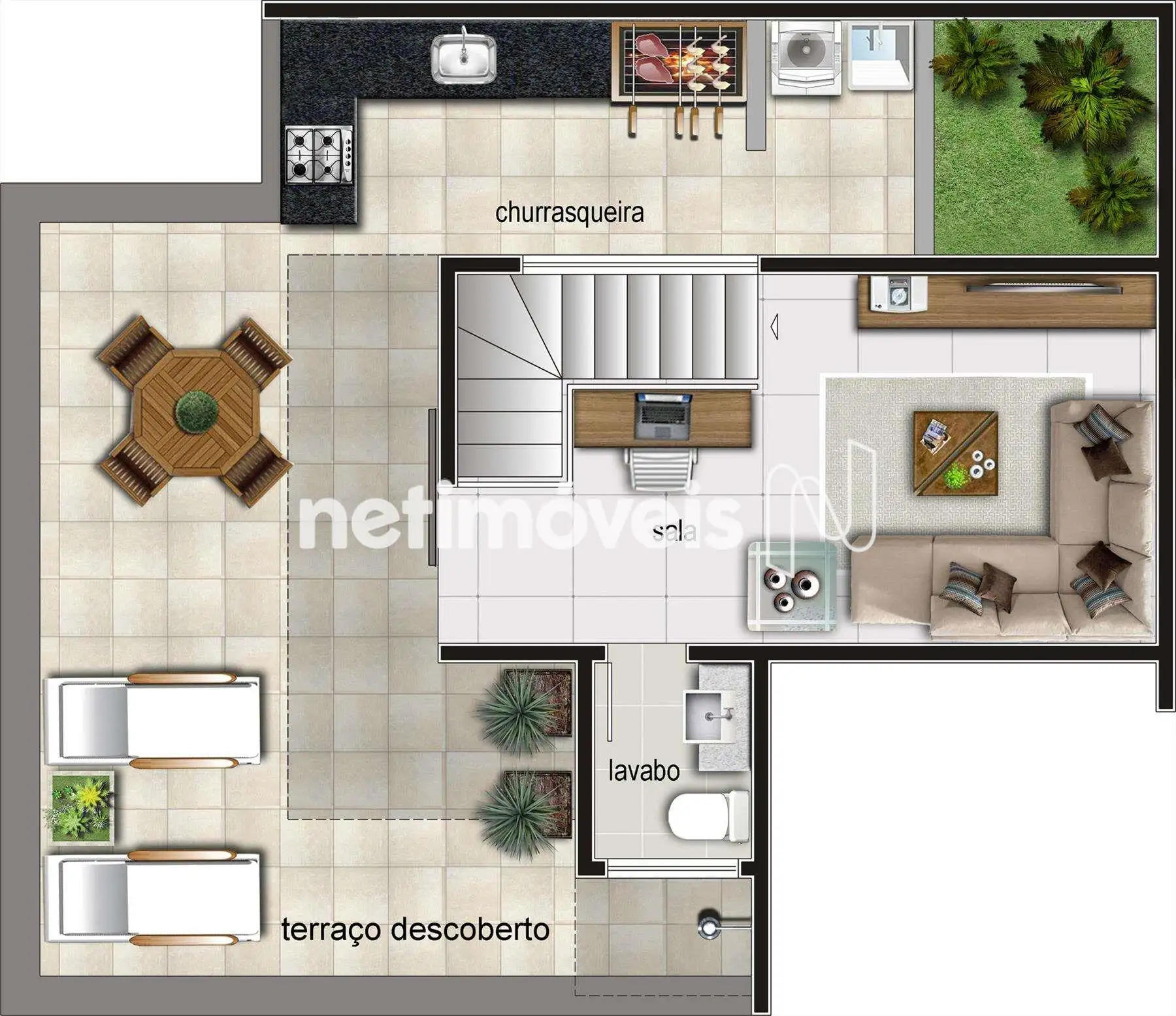Terraço coberto parcialmente;