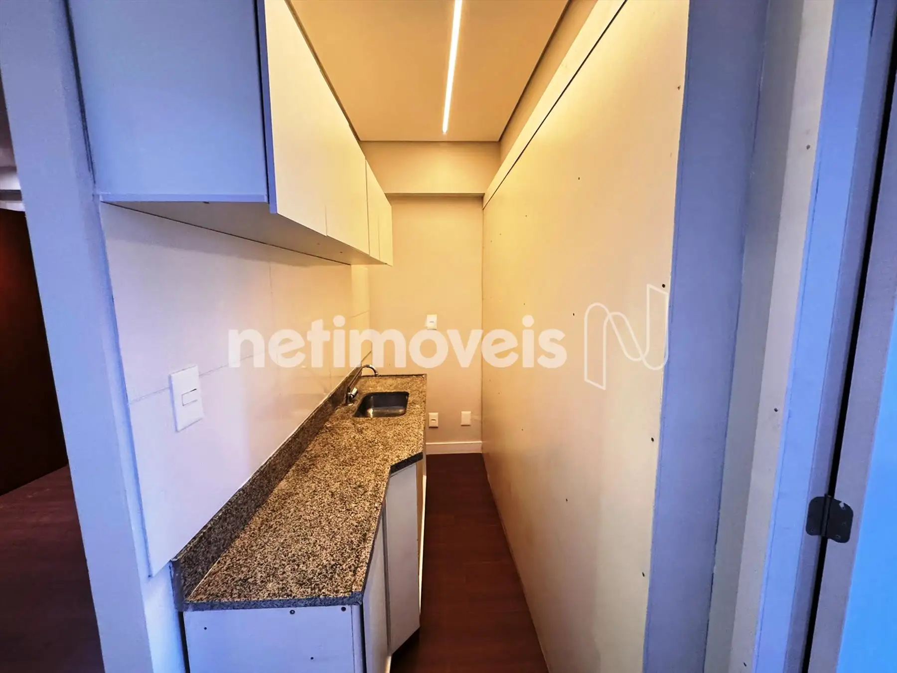 Área de apoio com bancada e armários planejados (cozinha)