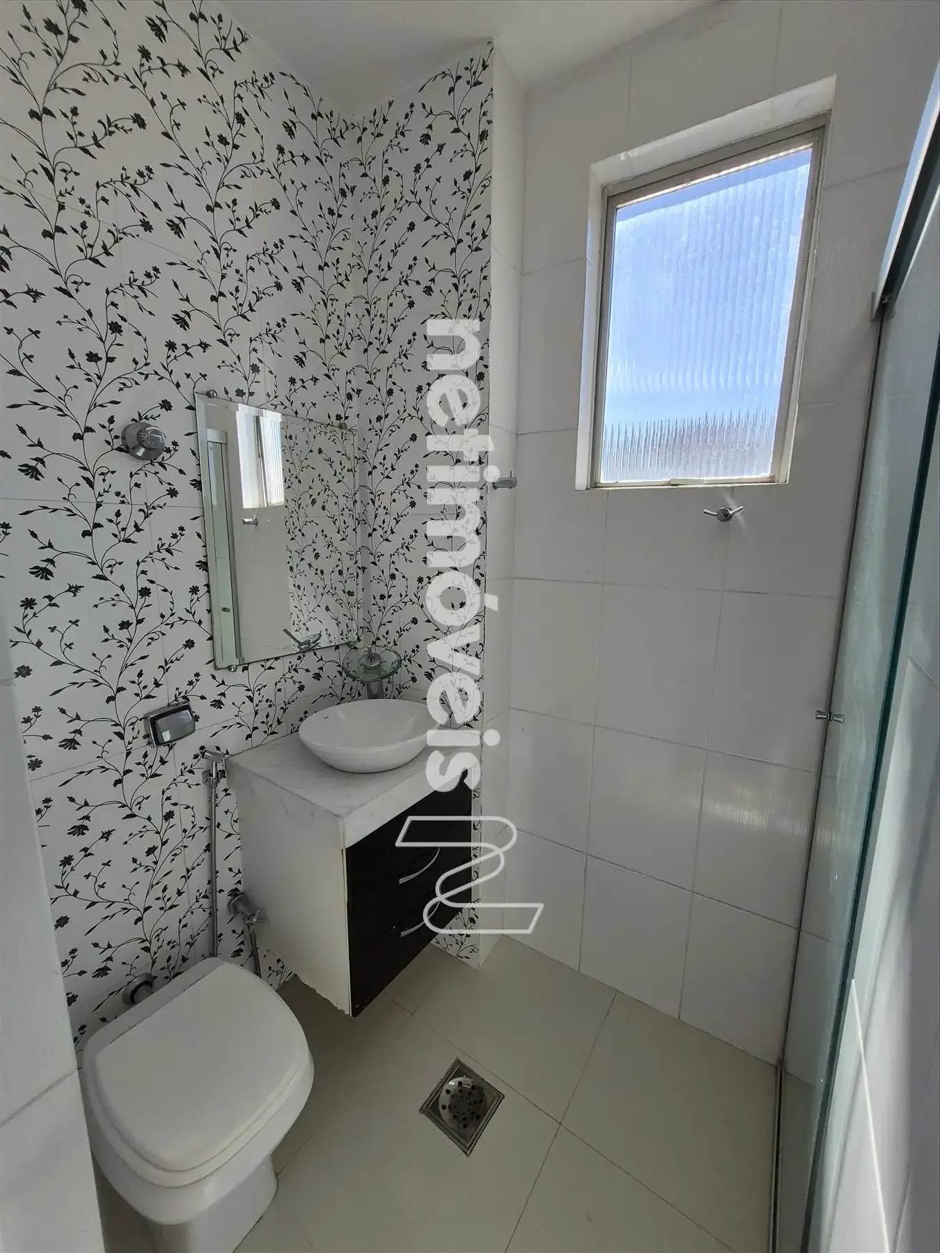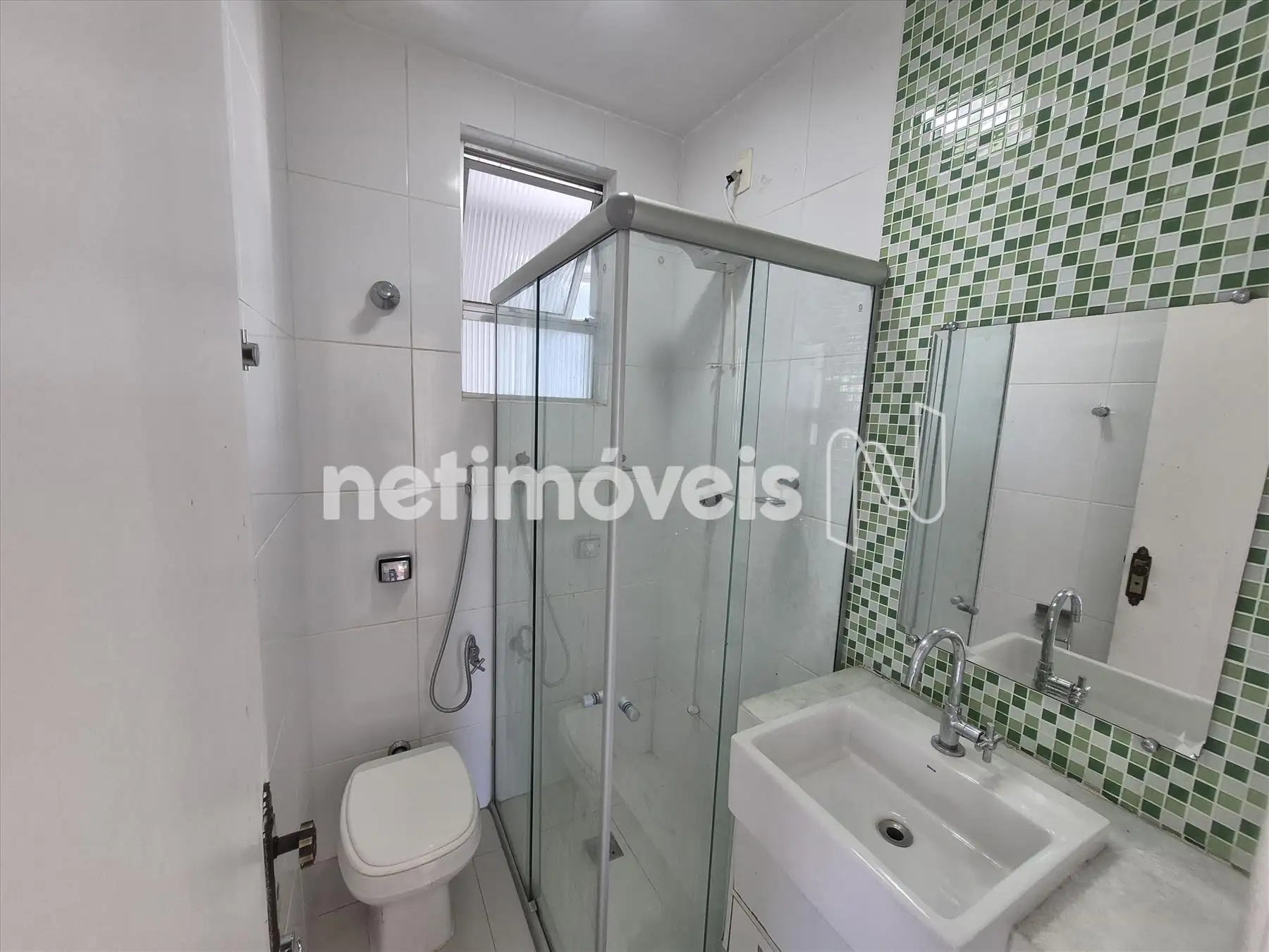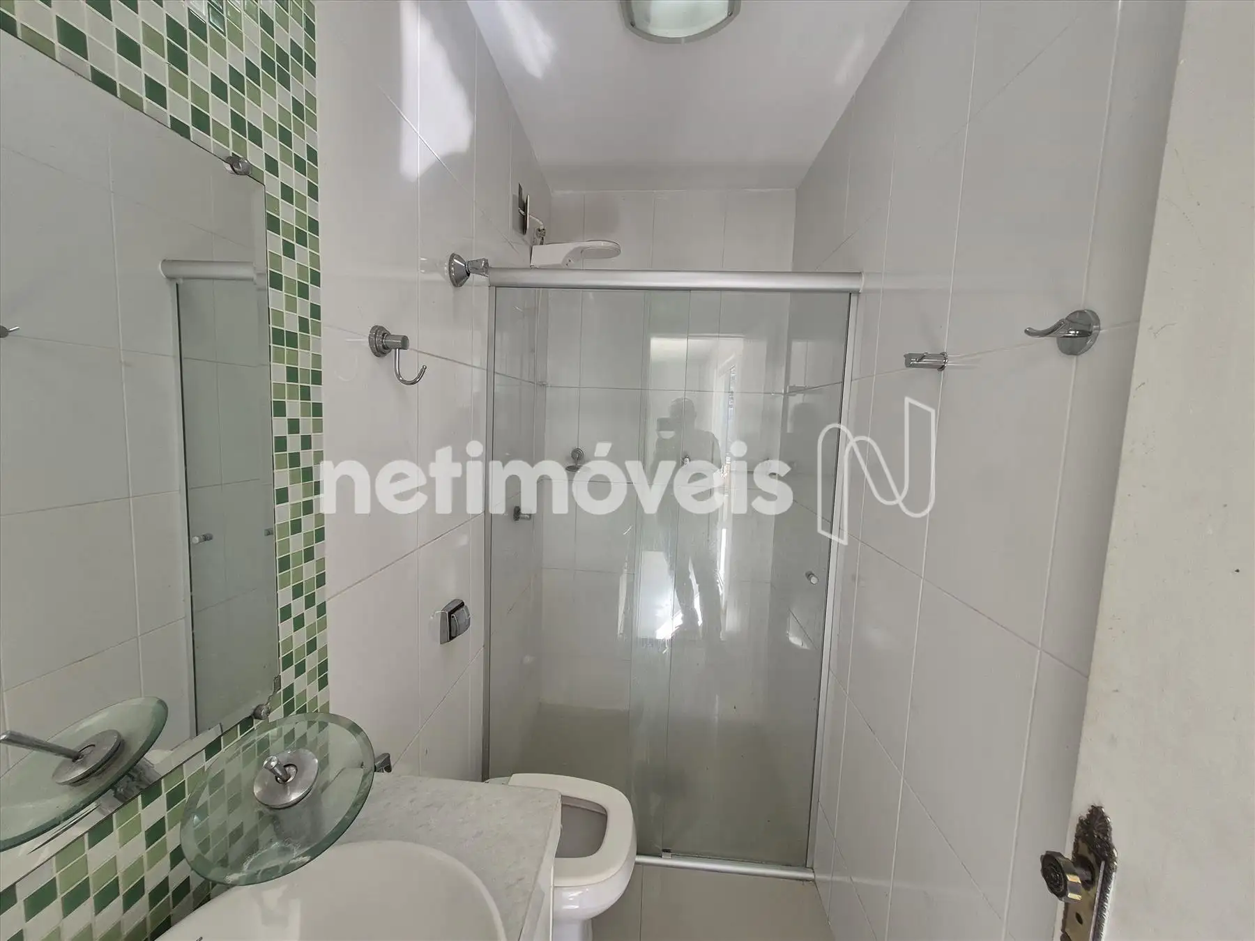 - banho sociai com box, armário e espelho;