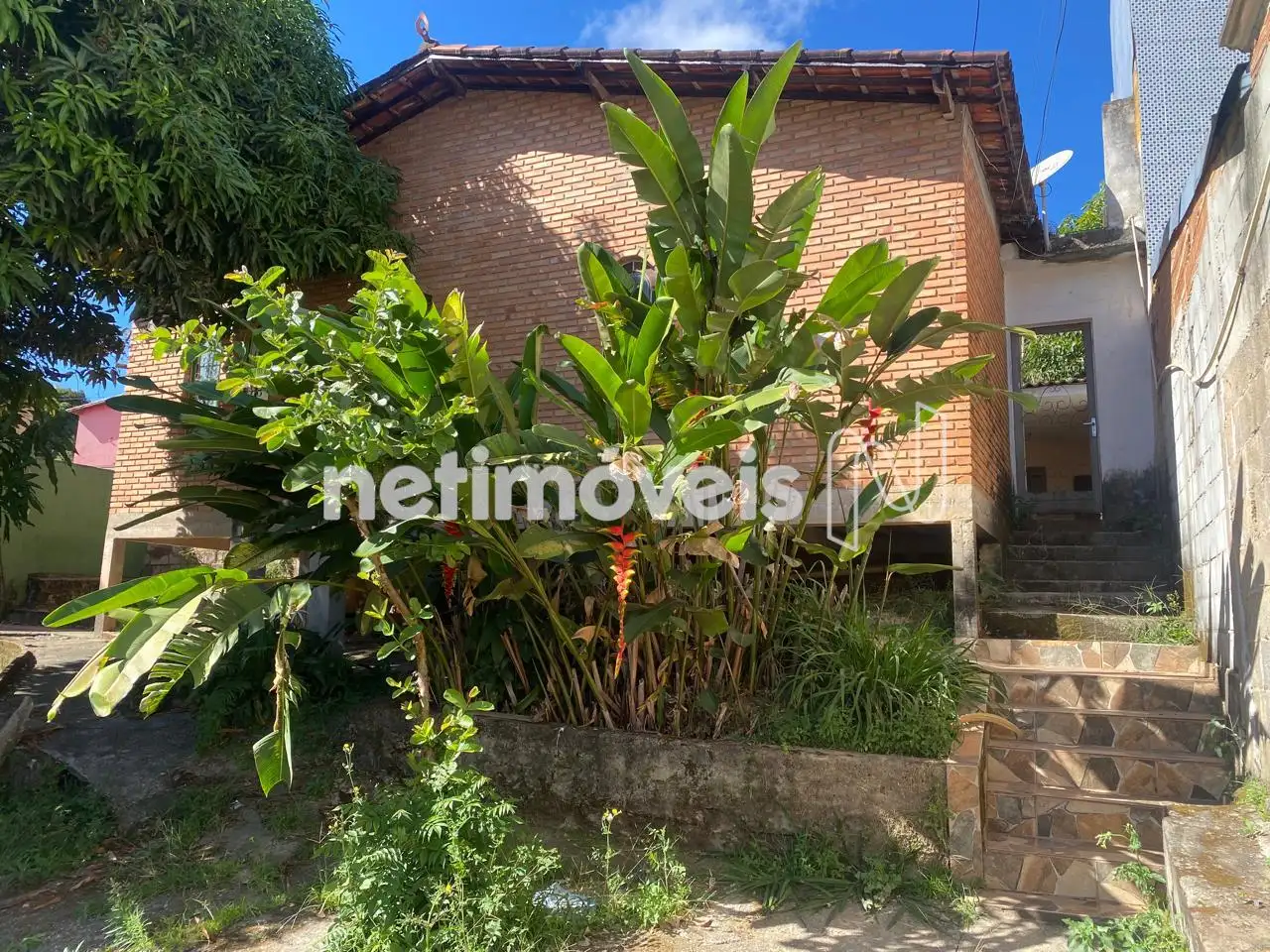 Casa em estilo colonial com revestimento frontal e lateral em tijolinho,