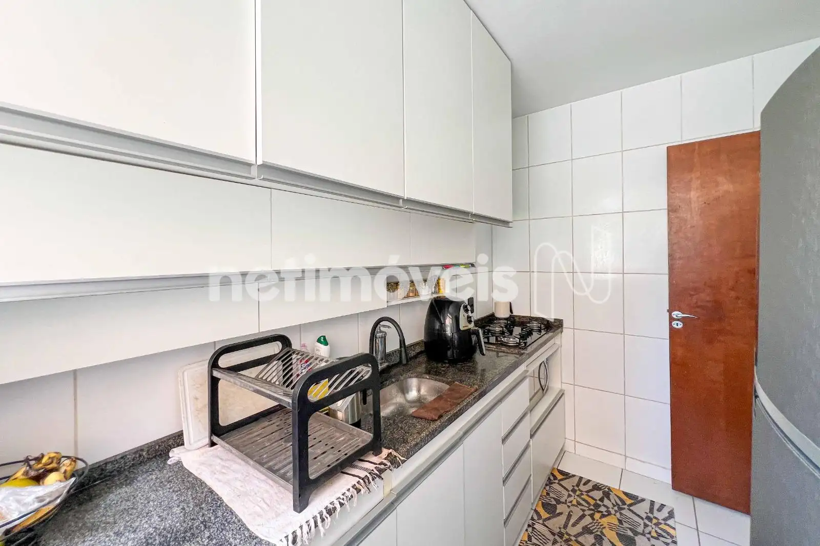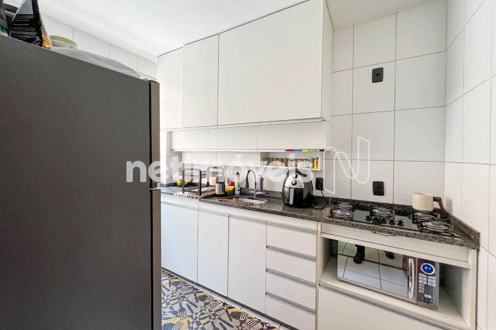 · Cozinha clara e arejada, toda revestida, com armários planejados, pia em granito e cooktop