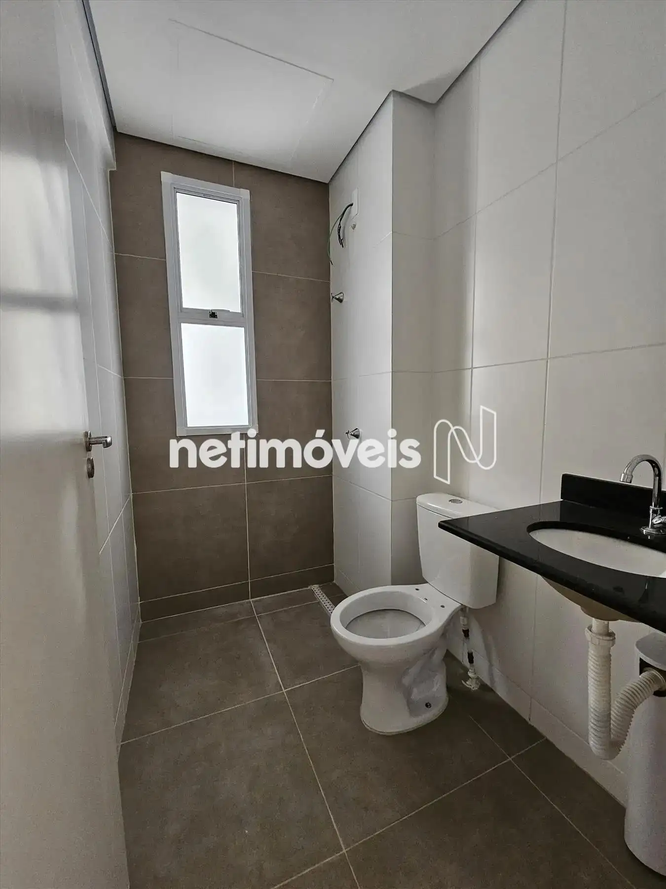 01 Banho com piso em porcelanato e bancada em granito.